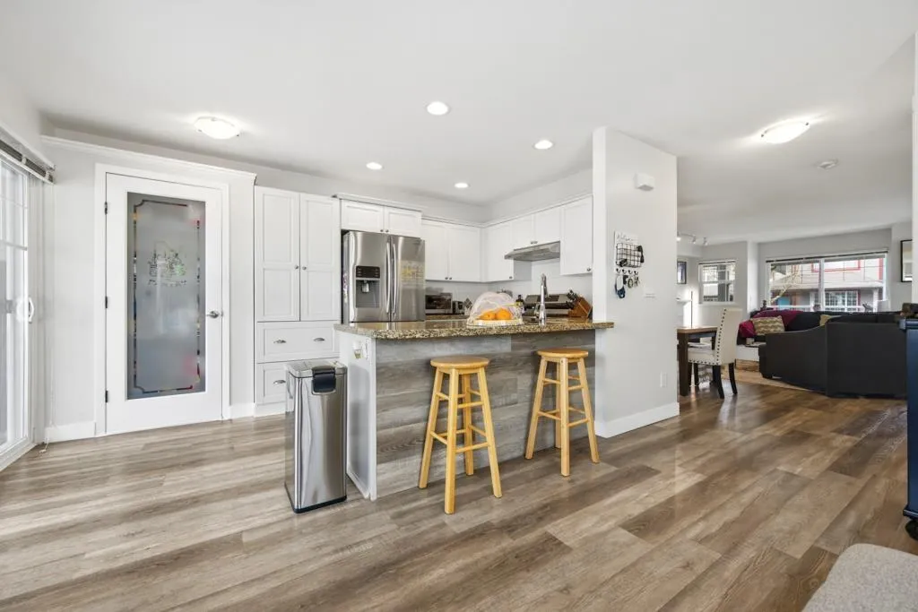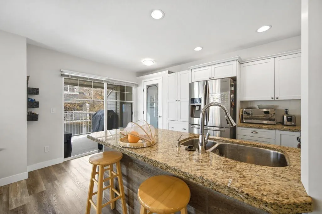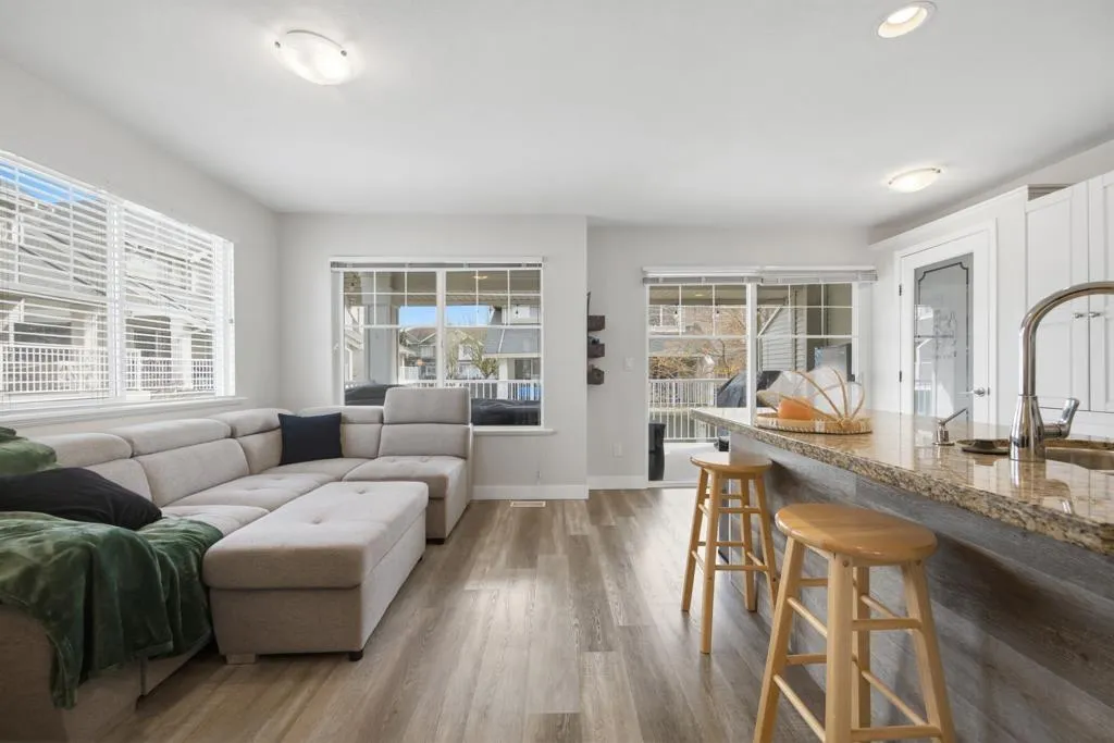 Beautifully maintained 3-bedroom + den, 2.5 bath townhouse , corner unit in the heart of Clayton Heights. This bright, spacious home features an open-concept main floor with large windows, updated lighting, and a generous kitchen with ample storage. The versatile Room on the lower level is perfect for a home office or guest space. Enjoy a private balcony, DOUBLE garage with extra storage, and a quiet, family-friendly complex. Walking distance to schools, parks, transit, shopping and all amenities. Easy to show with notice. (id:27476)