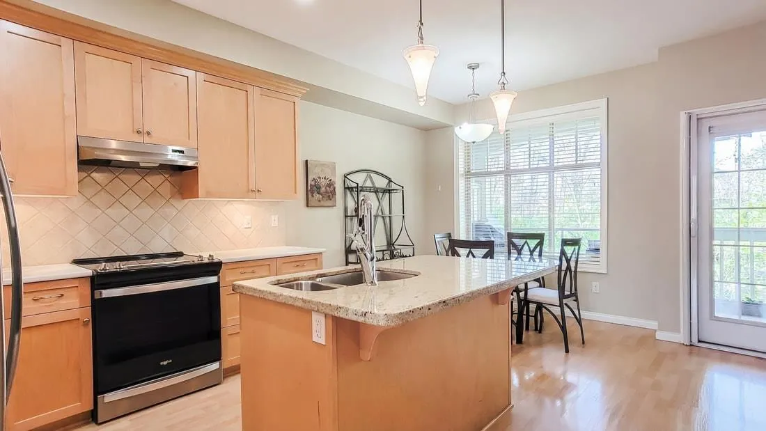 WELCOME TO KUMAKEN! This beautiful family townhome overlooks tranquil Semiahmoo and offers 2,511 sq. ft. of spacious living with 3 bedrooms plus a large den and 4 bathrooms. The kitchen and eating area open to the family room and back deck, while the bright living room features wall-to-wall windows. Upstairs includes a generous primary bedroom with a 5-piece ensuite, two additional bedrooms, and laundry. The lower level offers a versatile rec room, full bath, and access to a second patio and yard. Hardwood flooring on the main and upper floors. Well-maintained complex with a new roof and gutters (2024) and exterior paint (2023) . Walk to schools, shopping, transit, and recreation. Don't miss it! (id:27476)