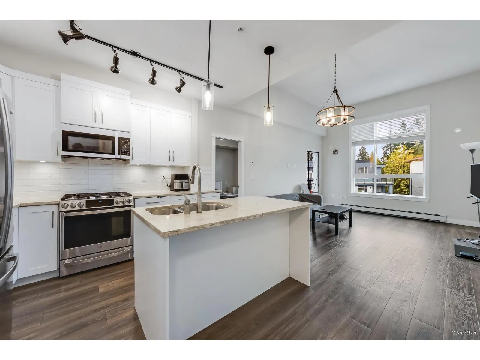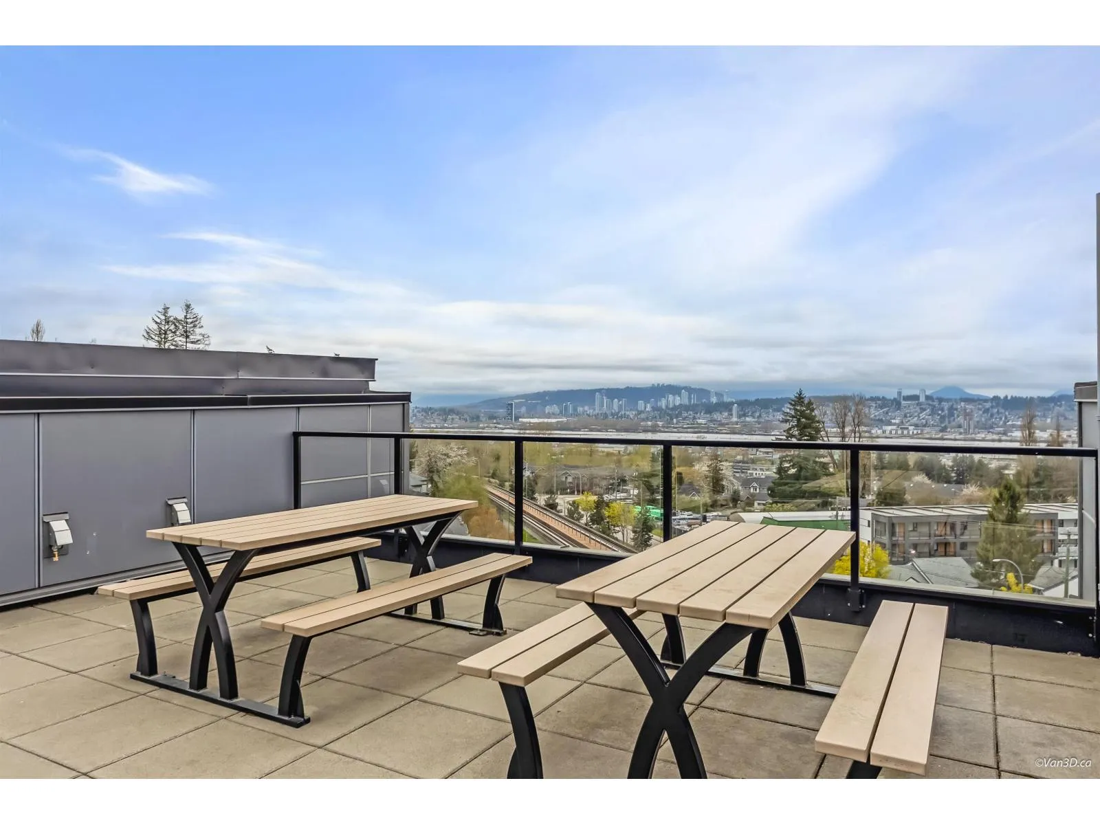 Welcome to Ledgeview by Quadra Homes! This PENTHOUSE corner, 2 bed, 2 bathroom home has it all! Top floor with mountain views, conveniently located near Gateway Sky train and SFU but on a quiet residential location. Gourmet kitchen stocked with stainless steel, high end appliances inc. a 5 burner gas cooktop, convection oven & quartz countertops. This unit been updated with elegant wainscoting throughout, crown molding and floor to ceiling wrap around tile in the bathroom. Heated floors in bathroom, 12 ft ceilings oversize windows. Located next to the rooftop lounge. High quality finishing, A/C ready, nice sized patio with gas BBQ hook up, no rental restrictions. 1 parking stall pre-wired for electric car, bike storage and a 5000 sq. ft. amenity room with huge gym! (id:27476)