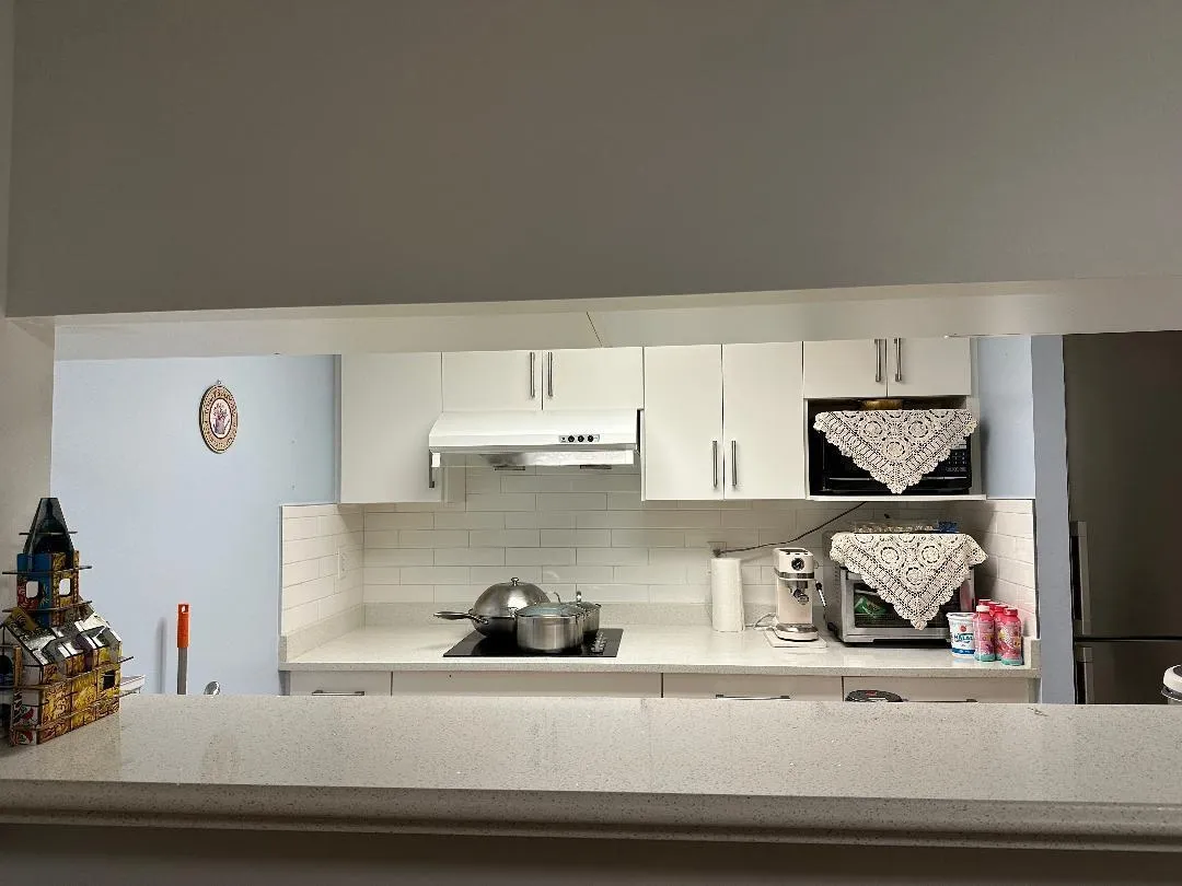 Welcome to this newly renovated beautiful North-East facing corner unit home in GRANDVIEW COURT with 1 bedroom + large den(big enough to be the 2nd bedroom). Features a year only for new open concept Kitchen, Appliances, Flooring, Bathroom and Fresh paint, Convenient location close to skytrain, public transit hub, Central city shopping center, Walmart, TNT market, recreation center, SFU, Kwantlen Polytechnic University, Holland Park & Surrey City Hall, Sports stadium, 2 underground parking spots plus storage locker& bike room on parking level . (id:27476)