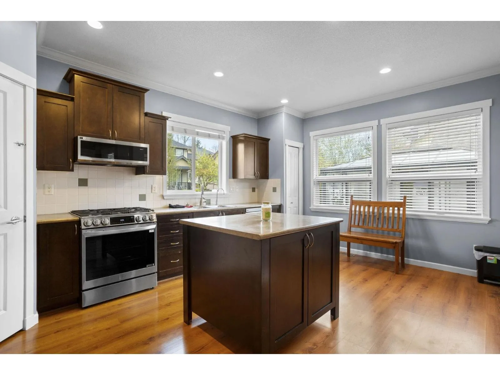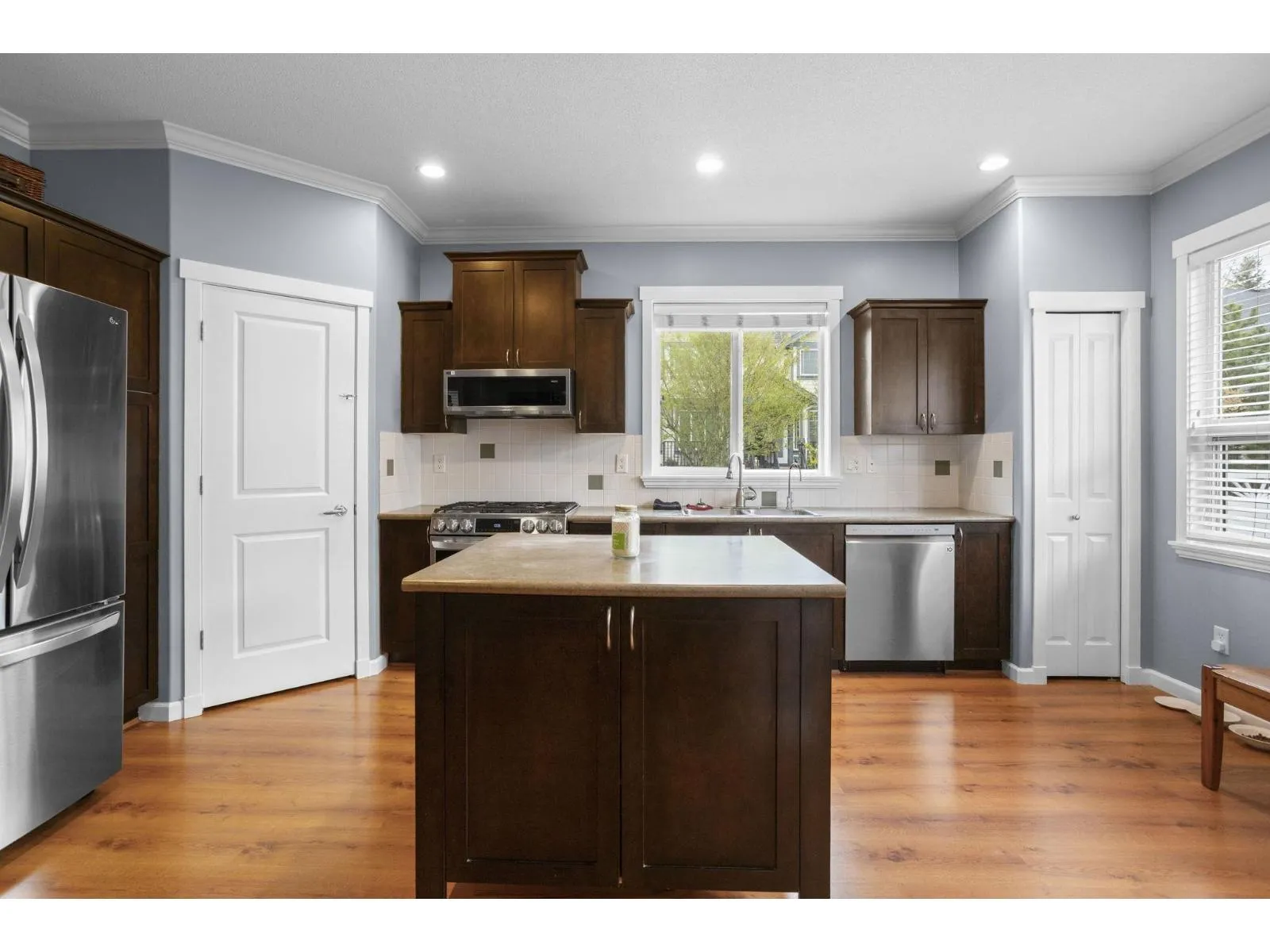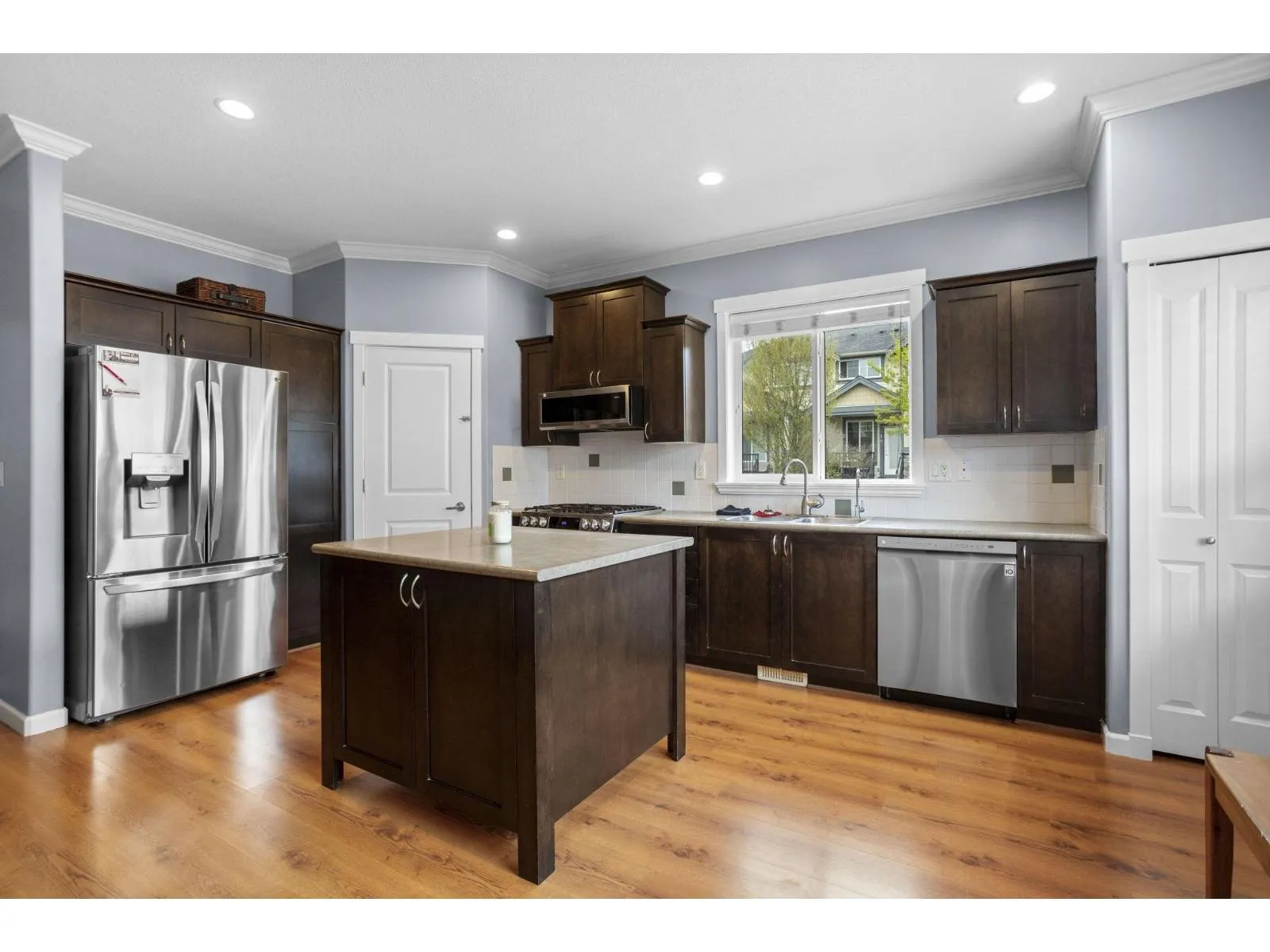 Original Clayton Village! Don't miss out on this 'Townline Homes' built 2 storey with fully finished basement on corner lot. Up stairs you'll find 3 spacious bedrooms all with window seats, updated laundry rm, updated bright ensuite with tiled floor. 9' ceilings on main, crown moldings in kitchen & family rm, stainless appliances, gas range & gas BBQ hookup. Downstairs has 2 bedroom, living rm, kitchen plus laundry. Outback is easy care yard with cedar shed, double garage plus extra pad for parking. Situated on a corner lot with plenty of windows makes this a bright and cheery home. Walk to schools, shopping etc. House is fully redone outside and in, AC added last year and new furnance! (id:27476)
