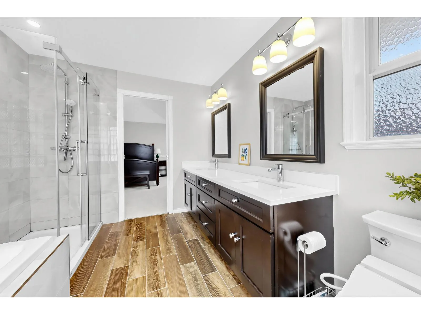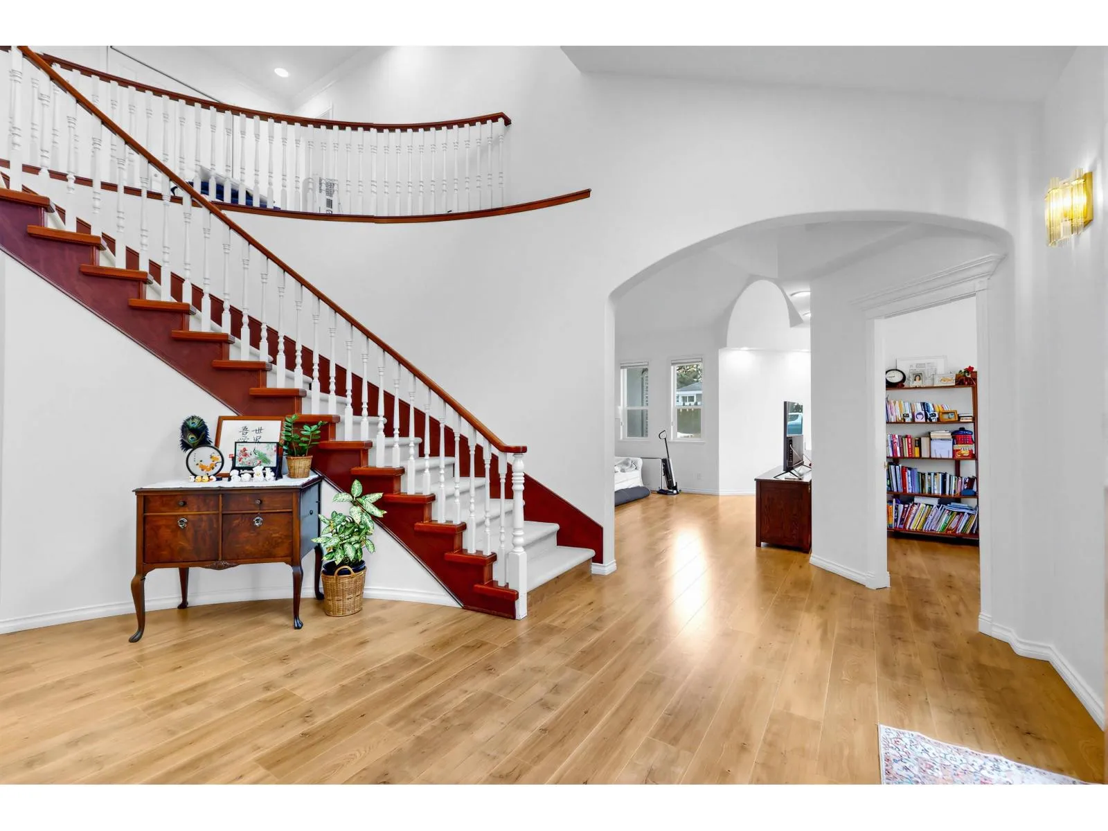 Beautiful corner house siting on a 7,000+ lot in the desirable fraser heights area. Enjoy bright, open-concept layout with a striking spiral staircase, elegant dining room with double glass doors. Main floor features a huge den, inviting living room and a sunken family room flows into the open kitchen with a breakfast nook, while double patio doors lead to the east-facing backyard. 3 spacious Bedrooms and 2 fully renovated bathrooms upstairs. Walking distance to Pacific Academy, and parks. Updates featuring: newer roof; interior and exterior paints; all flooring&carpets; new water baseboard heater throughout; kitchen; all bathrooms; windows. A wonderful move-in ready home with so much to offer. Do not miss this rare opportunity. Some photos are virtually staged. Open house : Sun 2-4pm. (id:27476)