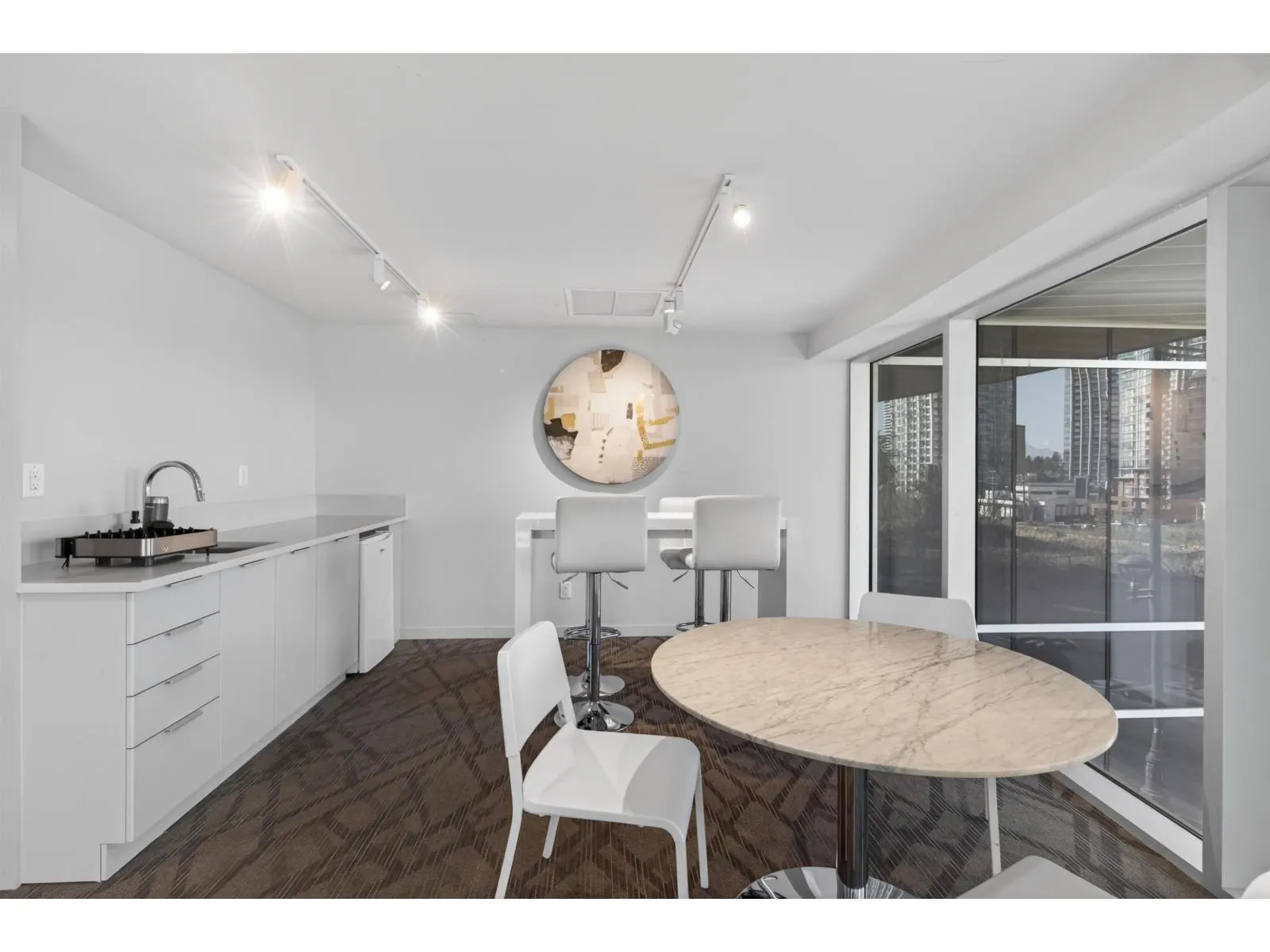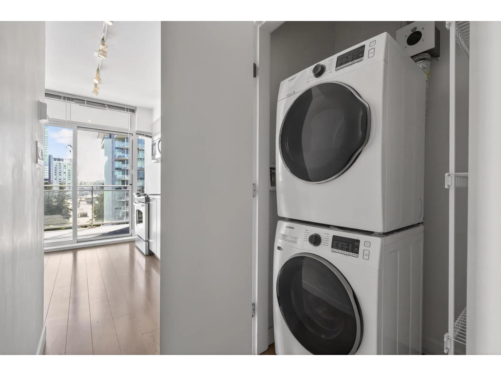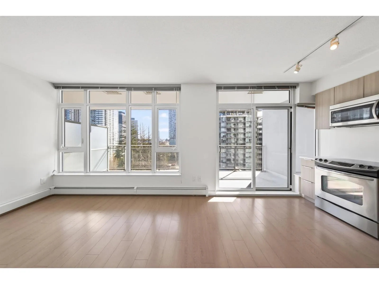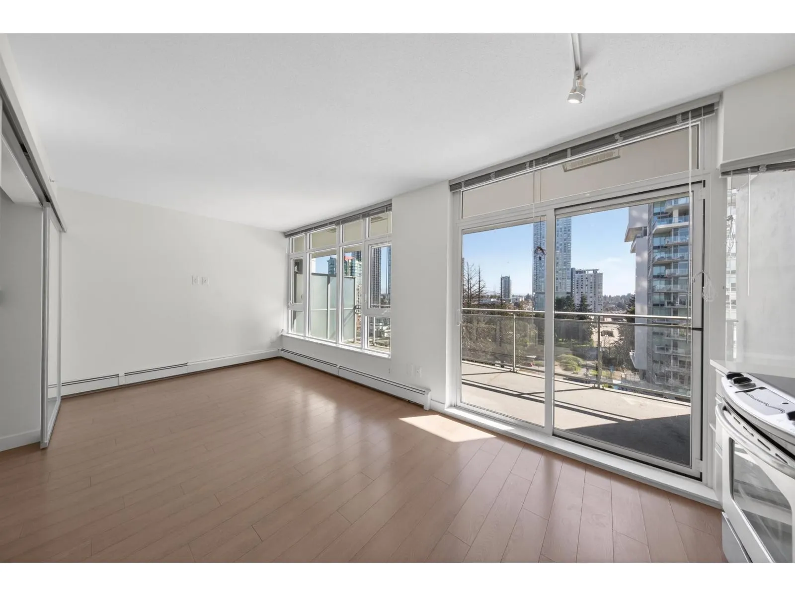 This bright and modern one-bedroom home is situated in the heart of downtown Surrey. The well-designed layout features an open-plan design with floor-to-ceiling windows that flood the interior with natural light, while a spacious covered balcony offers stunning city and mountain views. The modern kitchen boasts stainless steel appliances, quartz countertops, and stylish cabinetry. Residents enjoy upscale amenities including concierge services, a fitness center, a meeting/party room and so on. The location is exceptional - just steps from Surrey Central SkyTrain station, SFU, KPU, shopping centers, restaurants, and parks, with easy access to downtown Vancouver. This home is ideal for first-time homebuyers and investors. (id:27476)