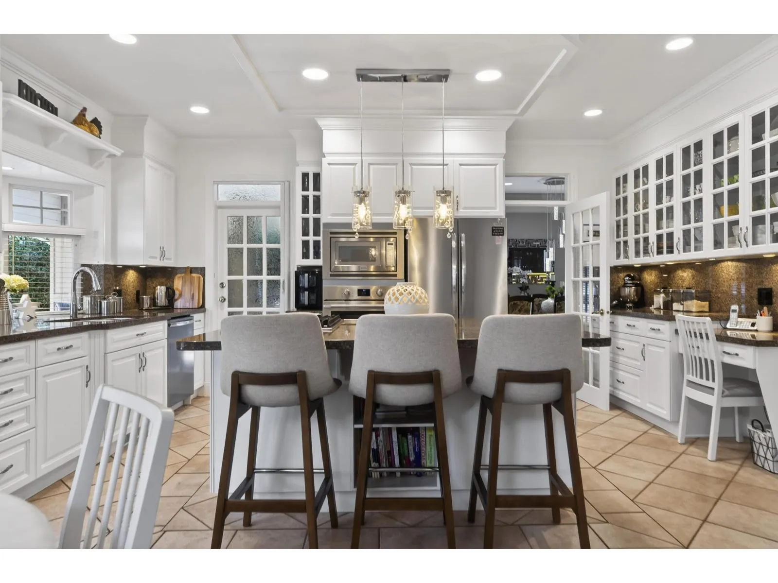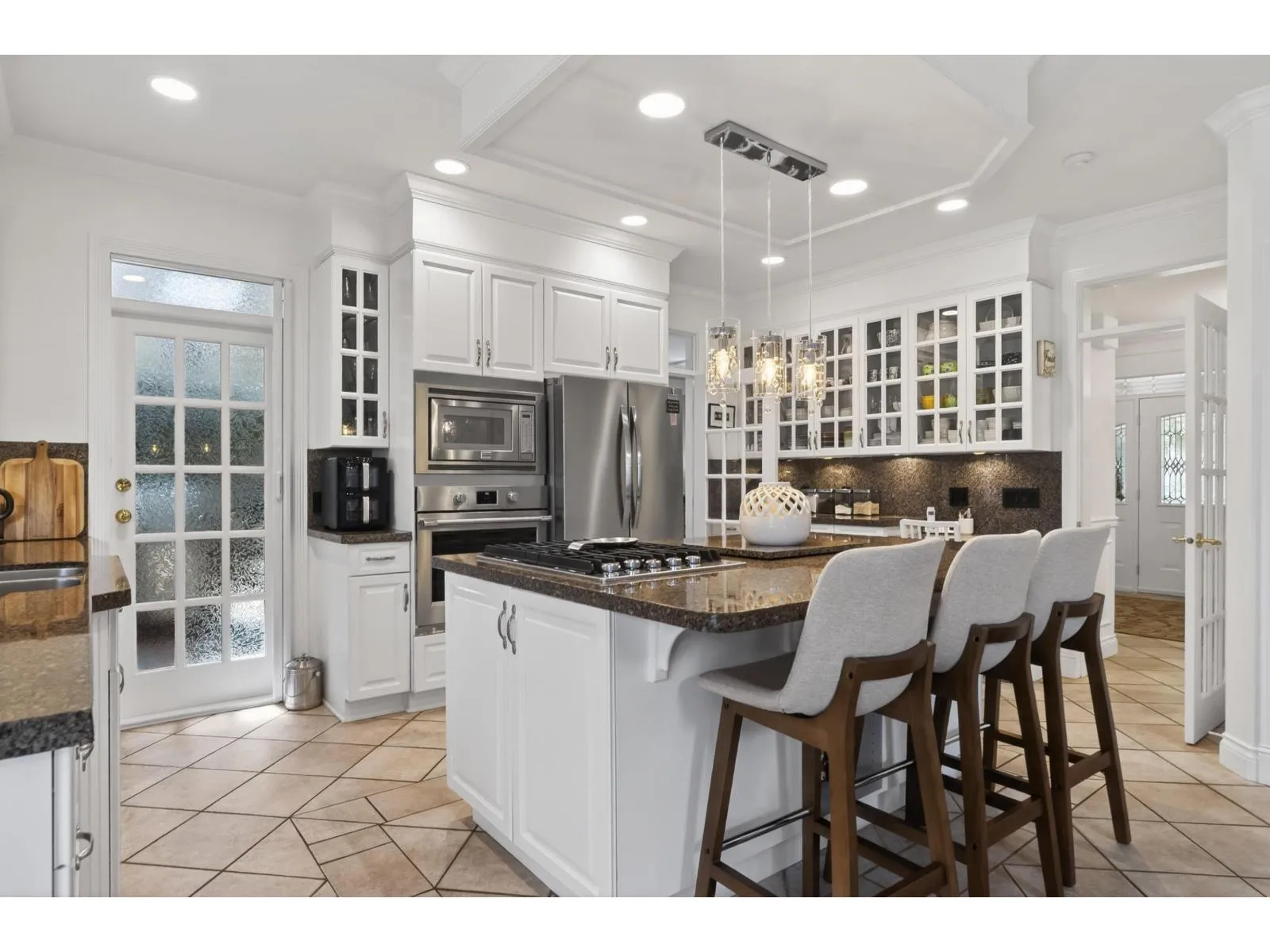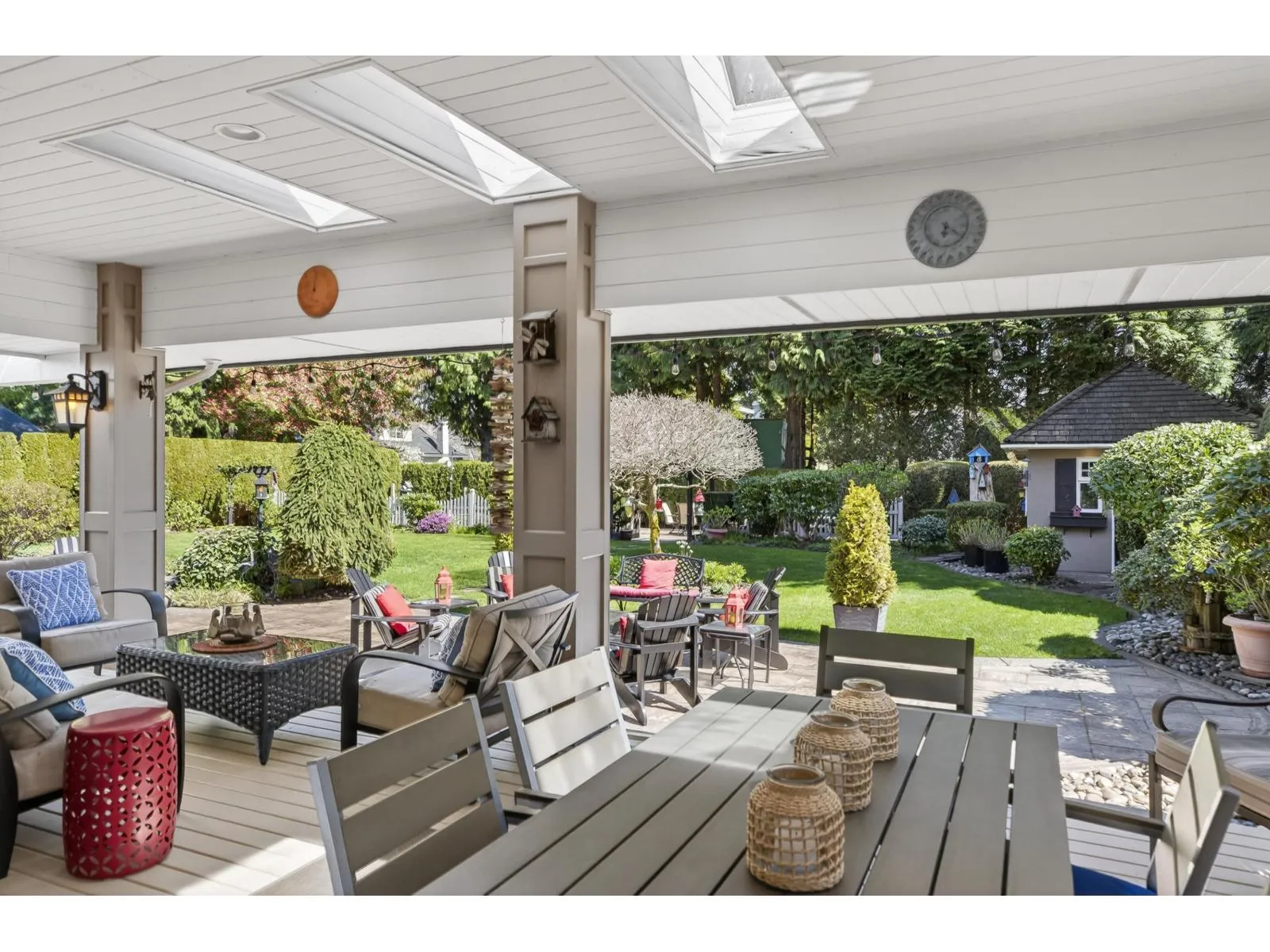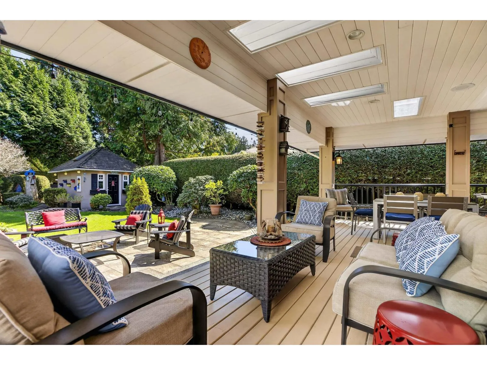 Beautifully maintained by its original owners, this brick-exterior two-storey home offers 3,340 sq ft of living space on an expansive 0.36 acre lot in one of South Surrey's most sought-after neighbourhoods. The main floor features a large primary bedroom with walk-out to the back deck, ensuite with soaker tub, dedicated office, and an open kitchen and living area. Upstairs includes 2 additional bedrooms and a den. The backyard truly shines. A massive covered deck opens to a stone patio with multiple entertaining areas. Mature hedging, a greenhouse, shed, and pergola complete the fully landscaped yard. Roof is only 5 years old. Meticulously cared for from day one. Every detail reflects the care of its original owners. Book your private showing today. (id:27476)
