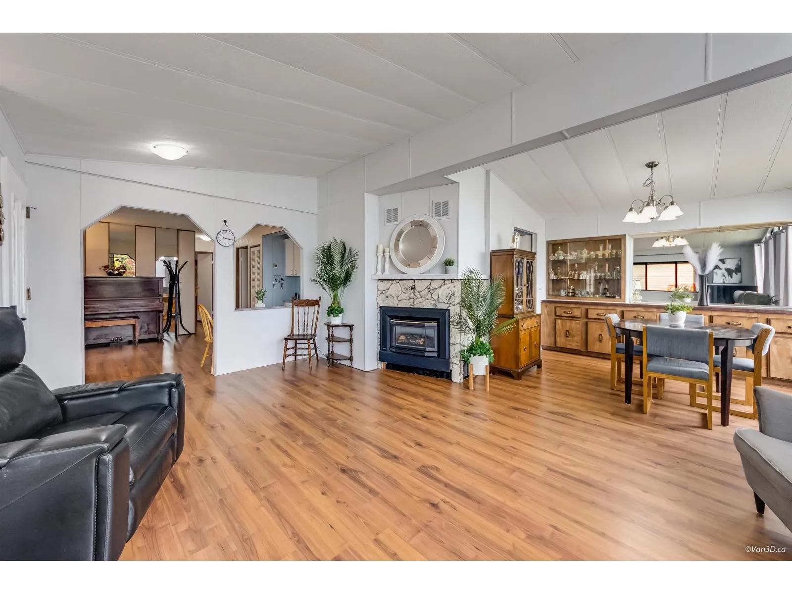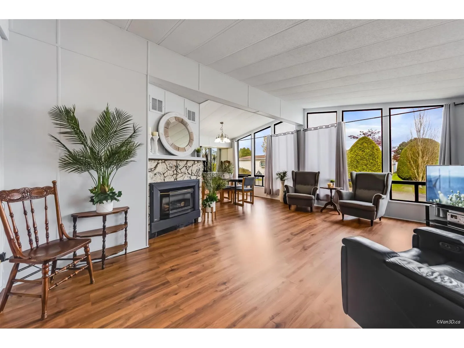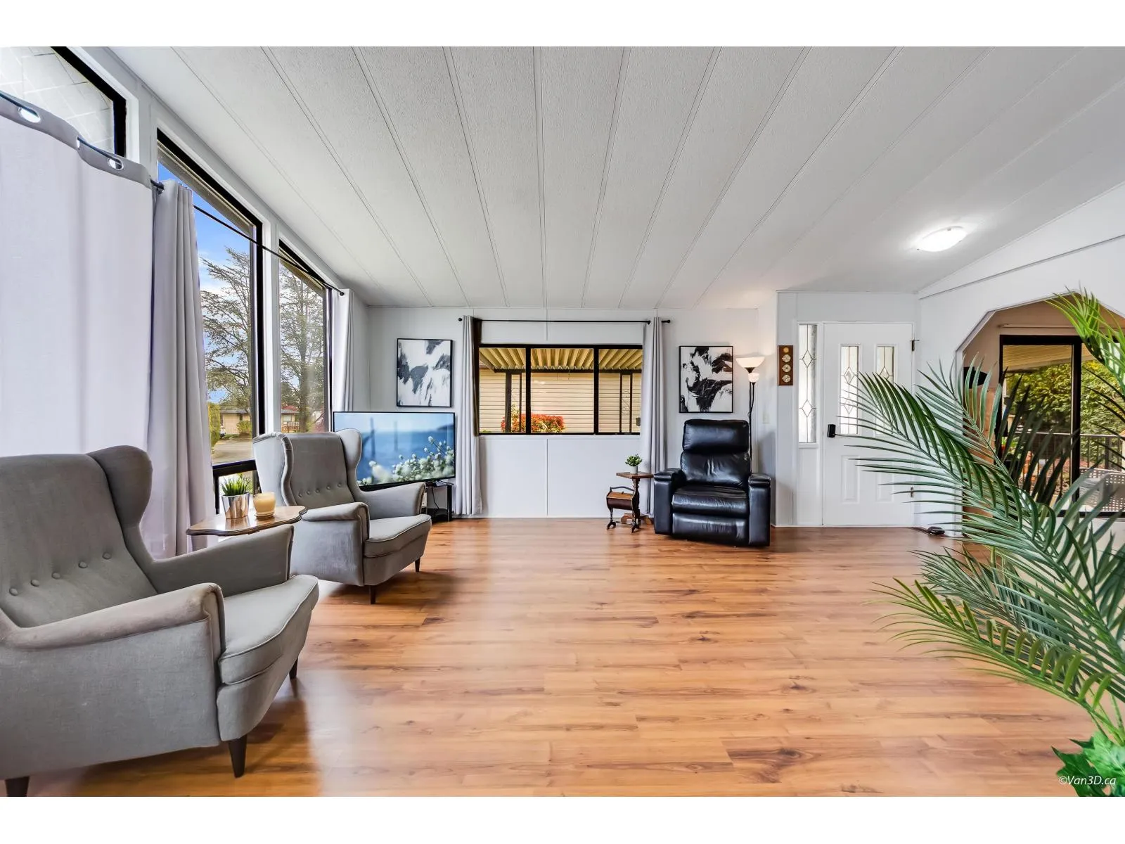 Welcome to the rarely available Five Oaks in South Surrey - a unique opportunity where you OWN the land. This bright and spacious double-wide home sits on your own 3,700 sq ft lot in a quiet, prime location. This well-maintained 1,300 sq ft home features an updated kitchen with warm wood cabinetry, newer flooring throughout, a newer high-efficiency furnace and newer roof. The open-concept layout offers great natural light and seamless flow to a spacious patio-perfect for outdoor enjoyment. Enjoy ample parking and low-maintenance living in this desirable 55+ community, with low strata fees-a rare and valuable combination. Conveniently located close to transit, grocery stores, restaurants, and shopping, with easy access to the freeway, the beach, and two border crossings. (id:27476)