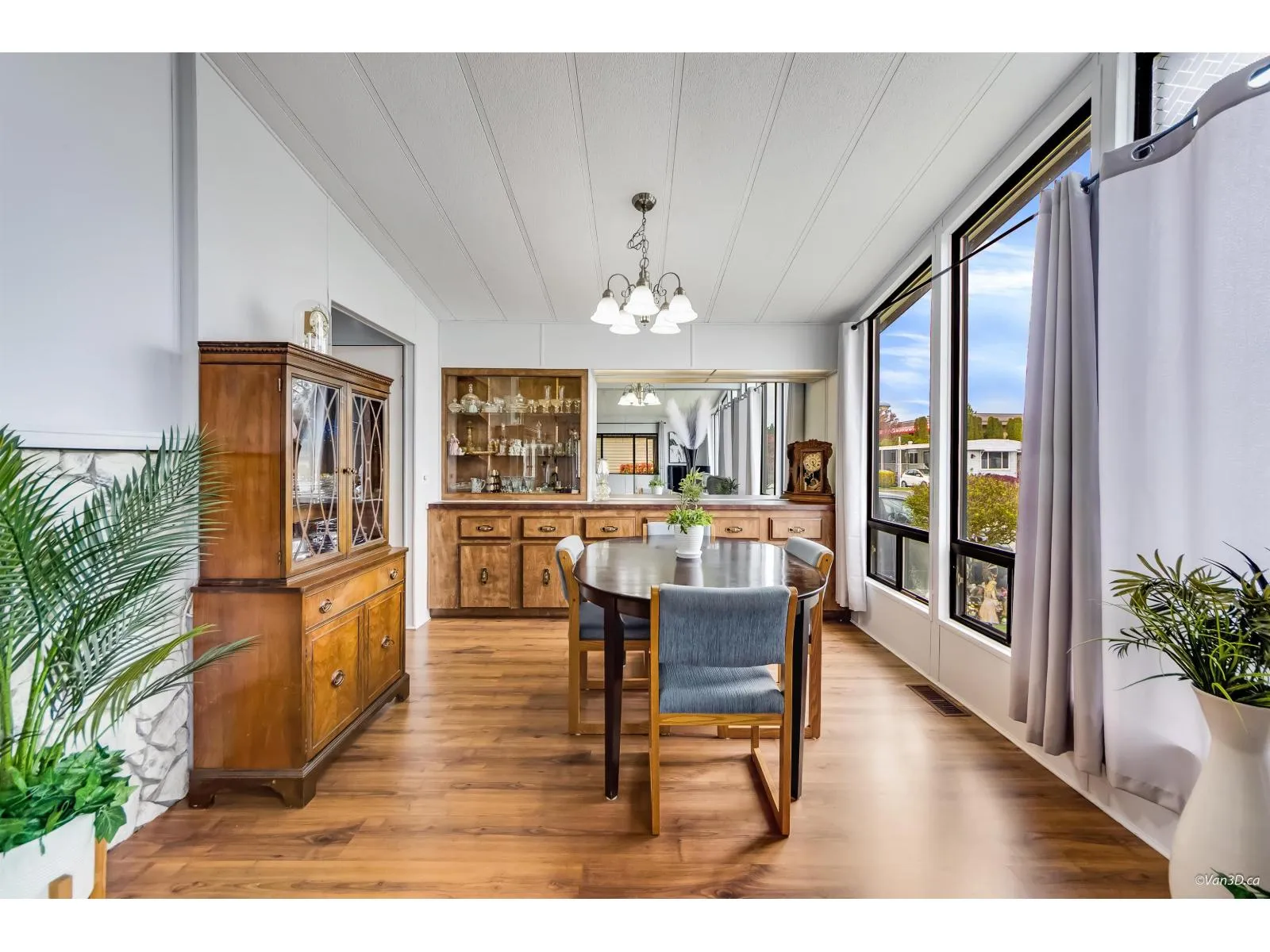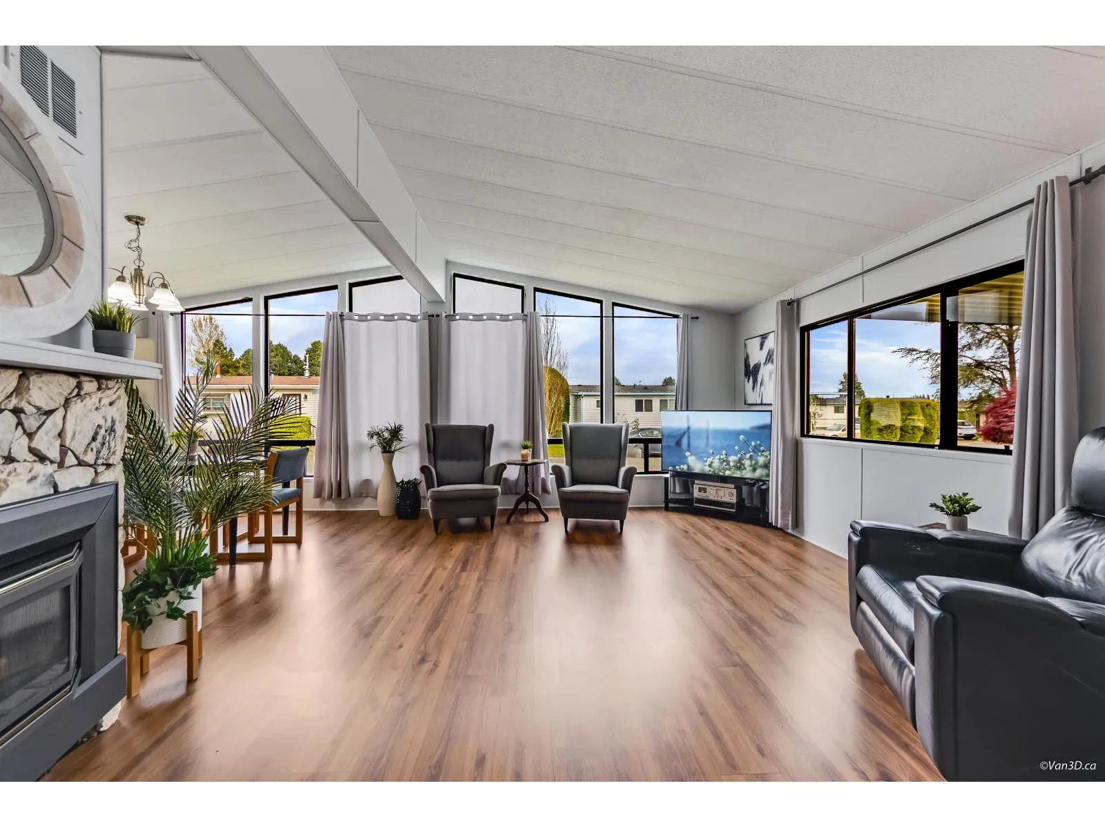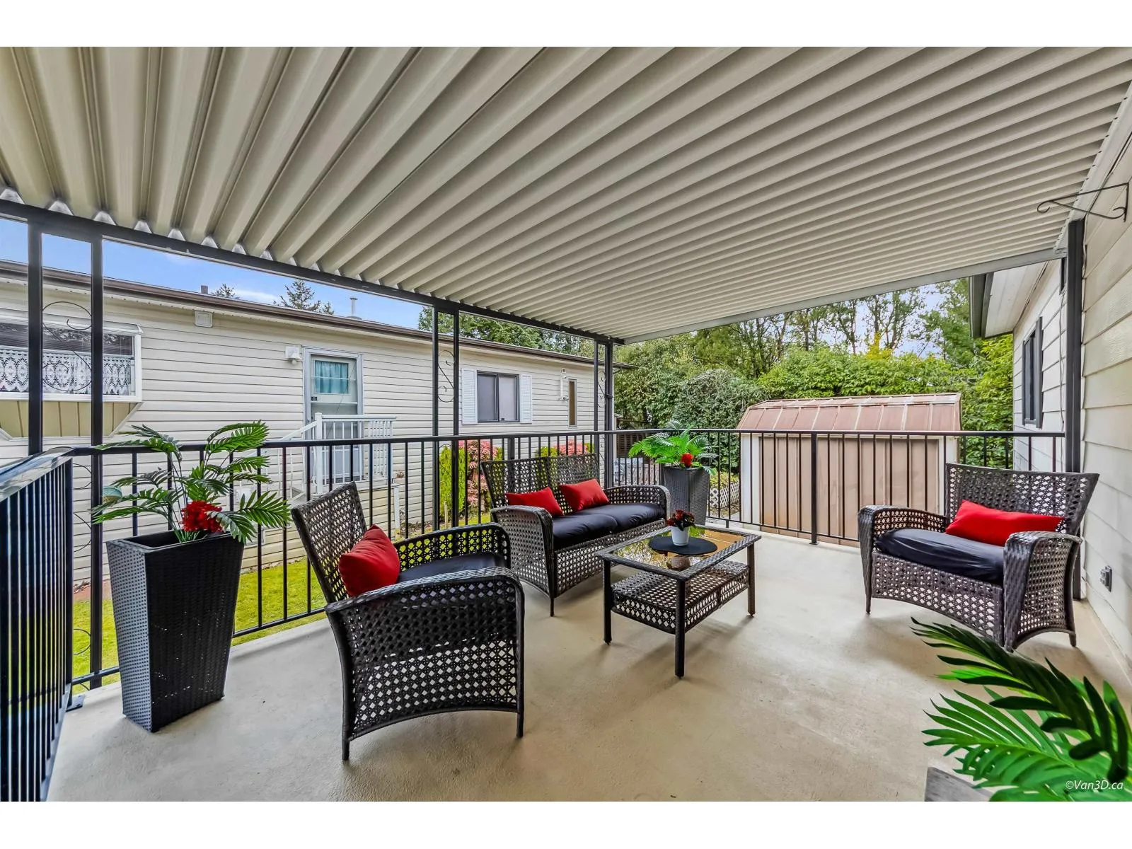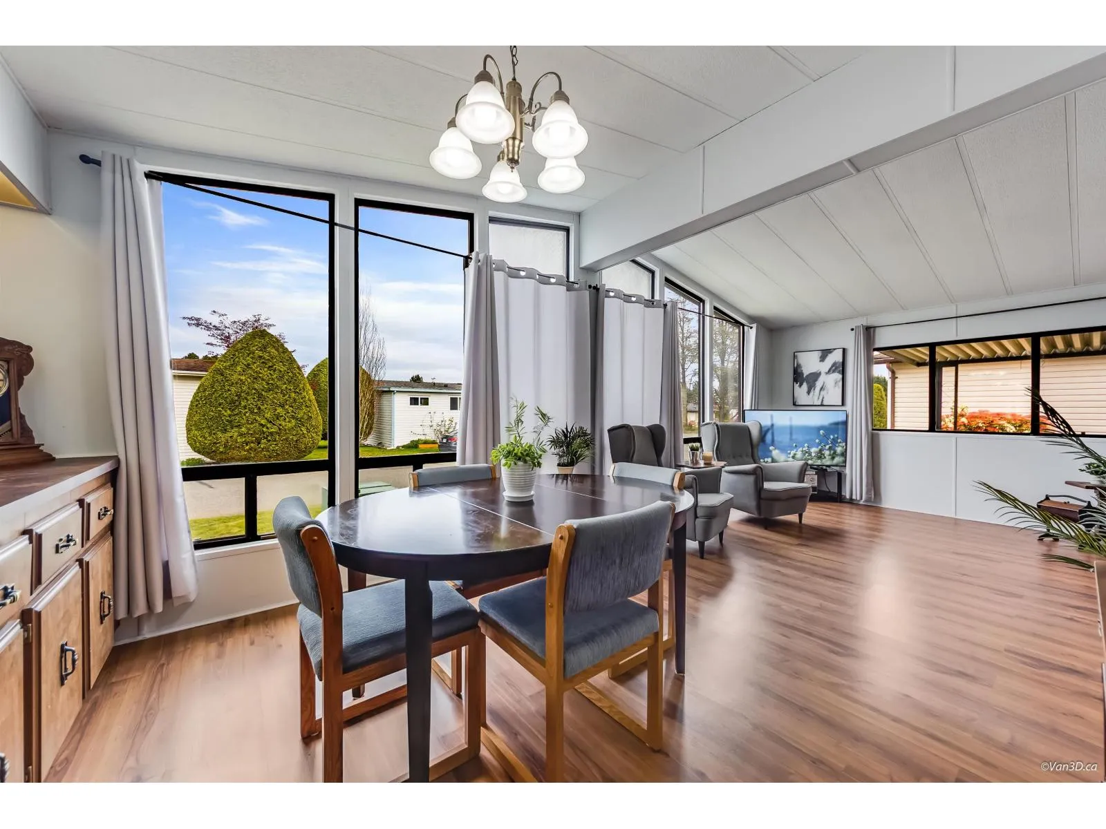 Welcome to the rarely available Five Oaks in South Surrey - a unique opportunity where you OWN the land. This bright and spacious double-wide home sits on your own 3,700 sq ft lot in a quiet, prime location. This well-maintained 1,300 sq ft home features an updated kitchen with warm wood cabinetry, newer flooring throughout, a newer high-efficiency furnace and newer roof. The open-concept layout offers great natural light and seamless flow to a spacious patio-perfect for outdoor enjoyment. Enjoy ample parking and low-maintenance living in this desirable 55+ community, with low strata fees-a rare and valuable combination. Conveniently located close to transit, grocery stores, restaurants, and shopping, with easy access to the freeway, the beach, and two border crossings. (id:27476)
