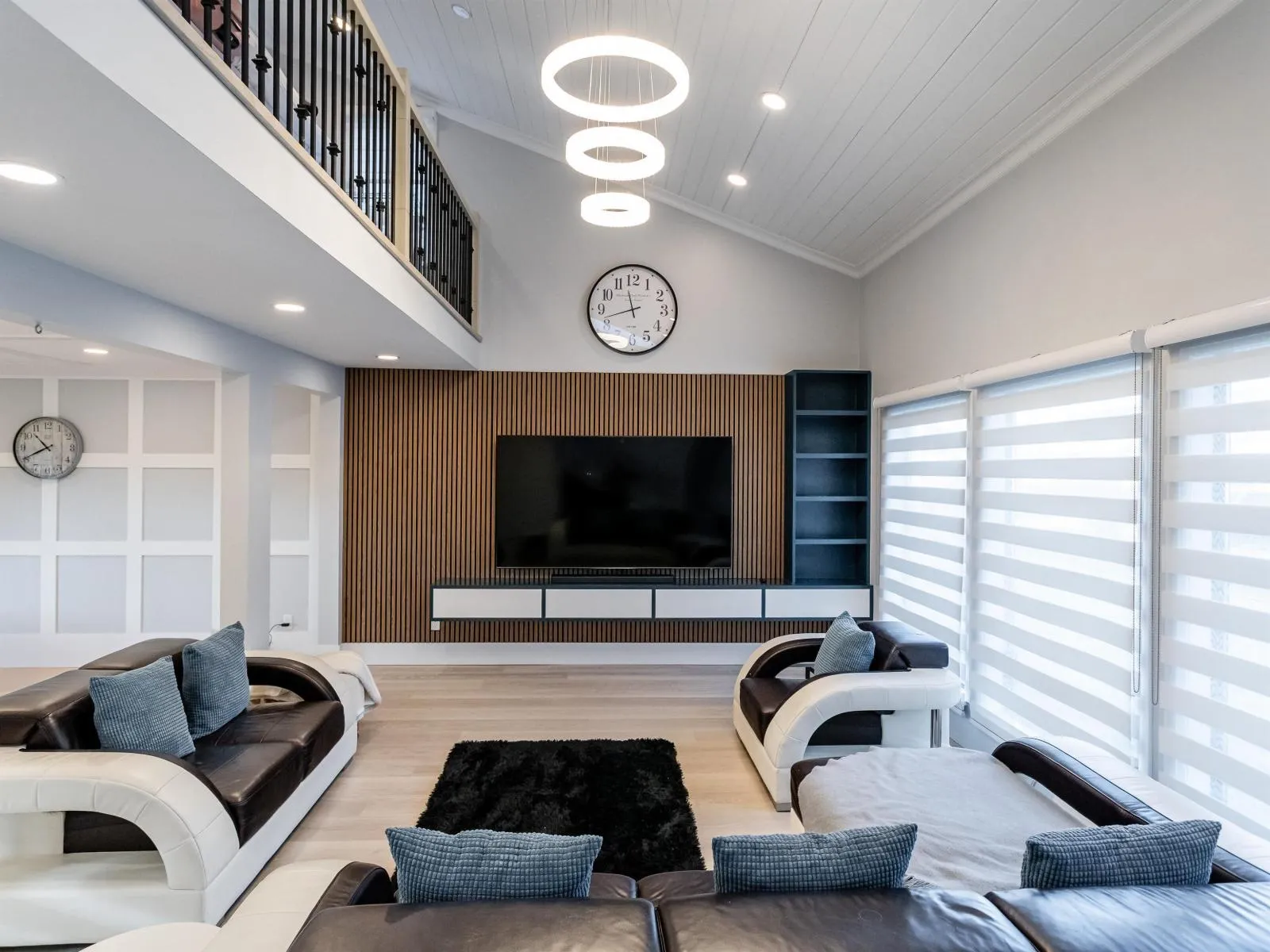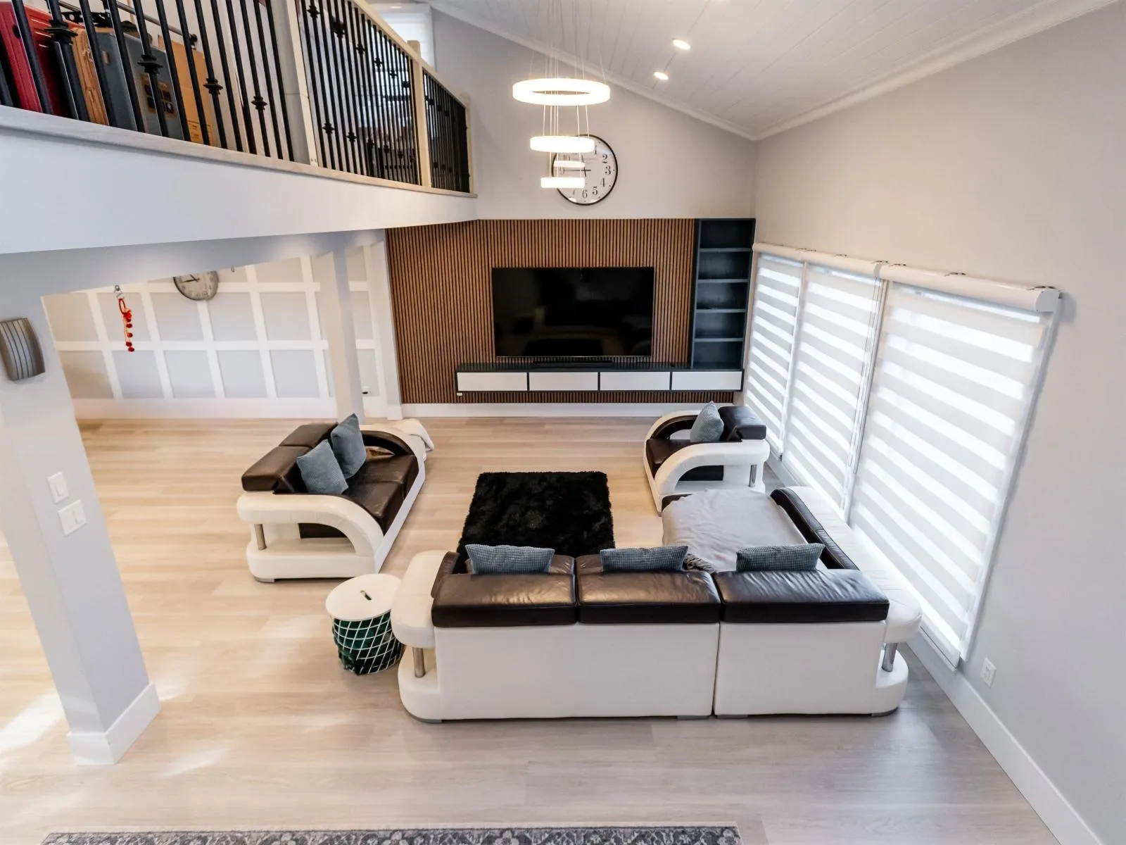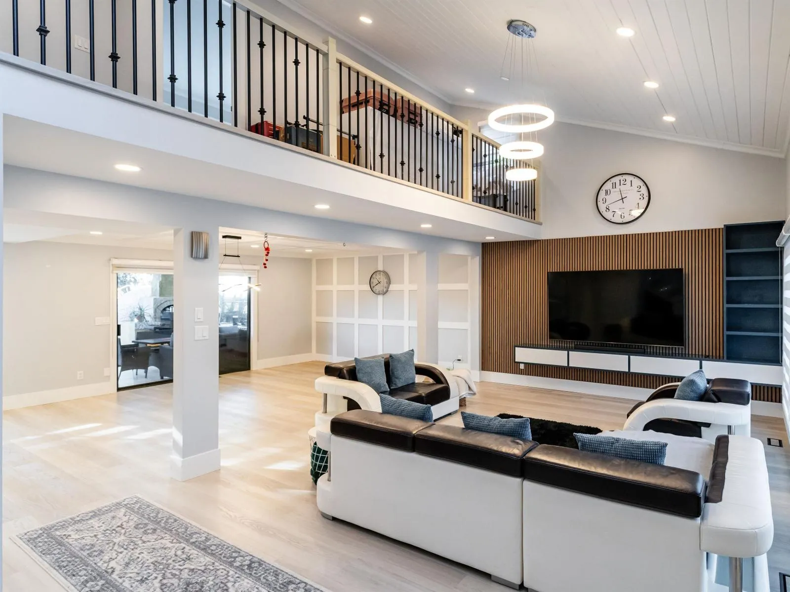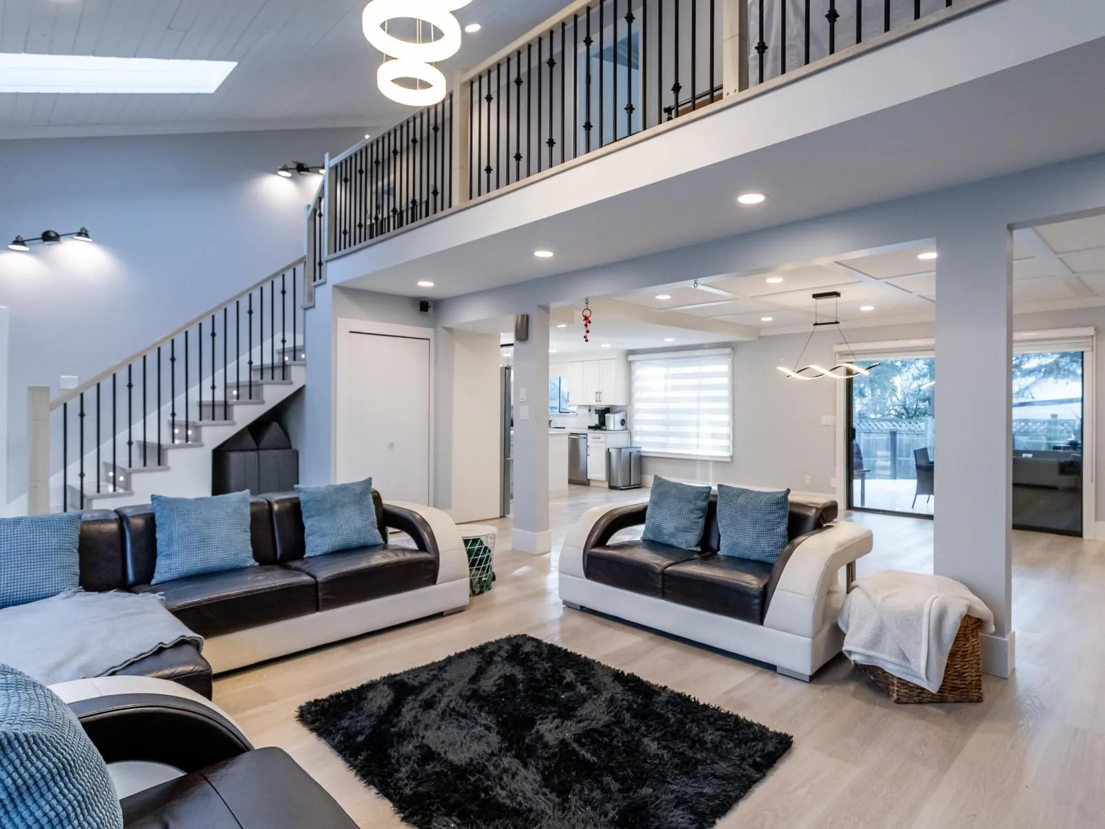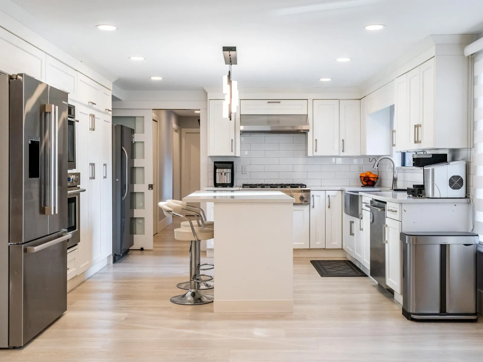 Complete reno'd home in Fleetwood! Fully reno'd kitchen w/white shaker cabinetry, quartz counters & subway tile backsplash, large island, S/S appliances, gas range, B/I wall oven & microwave, farmhouse sink, modern faucet & ample cabinetry to the ceiling. ALL bathrooms fully reno'd - quartz counters, updated cabinets, modern fixtures. Showers w/large-format tile & glass doors. ALL reno'd bedrooms too featuring stylish feature walls, modern lighting, custom built in closet storage & contemporary window coverings. Recessed lighting & updated luxury vinyl plank flooring throughout the home. Open concept living/dining room w/extensive mill work & modern wall detailing. Large lot & close to schools/parks. Make it a 4, 5 or 6 bedroom house - VERY flexible floorplan w/easy side-suite potential! (id:27476)