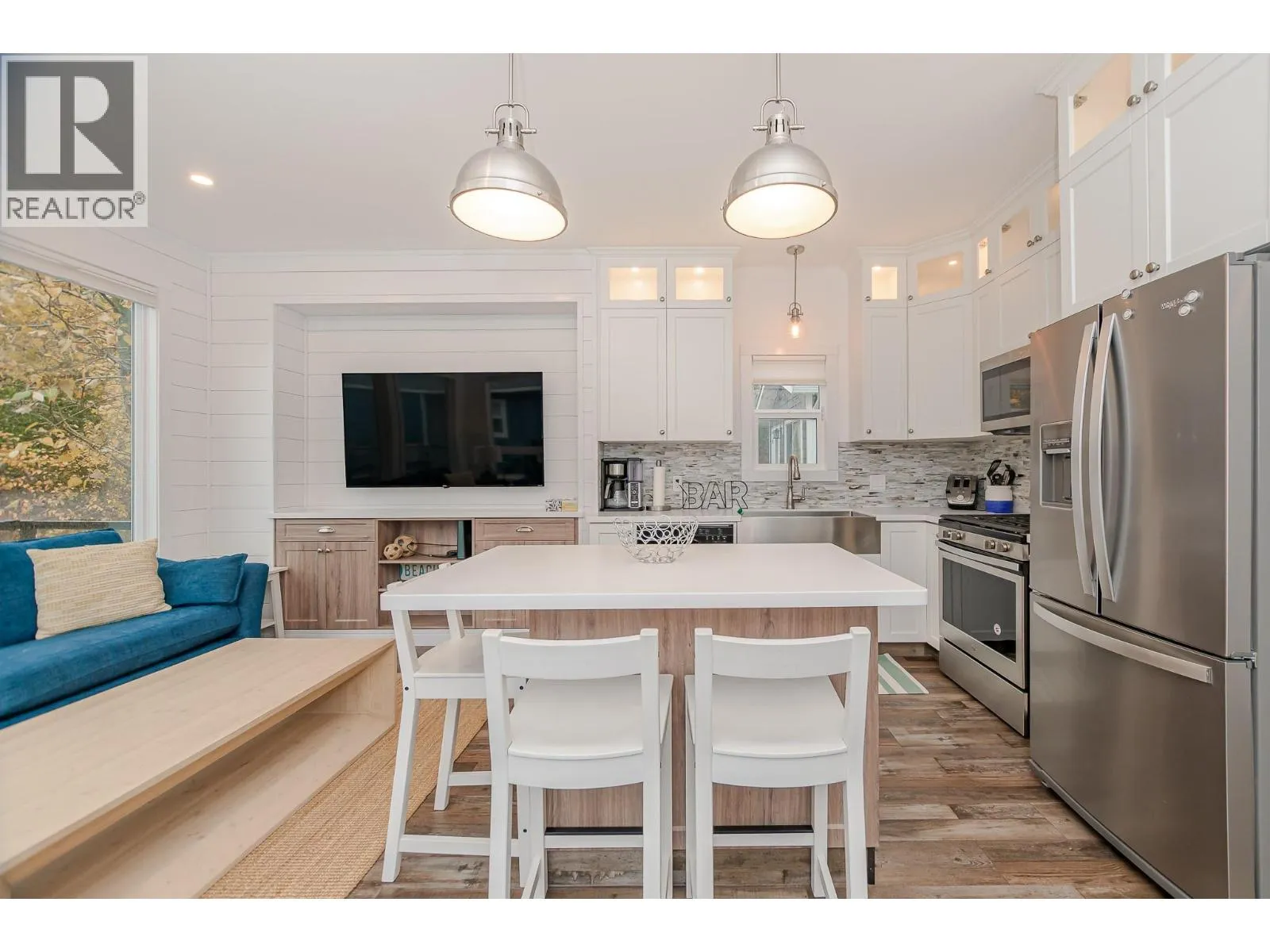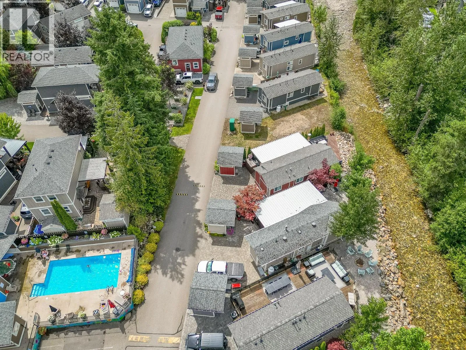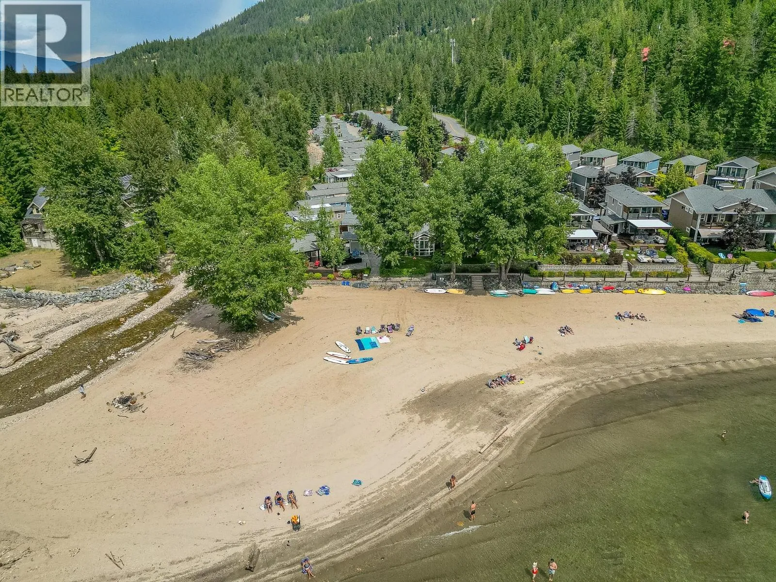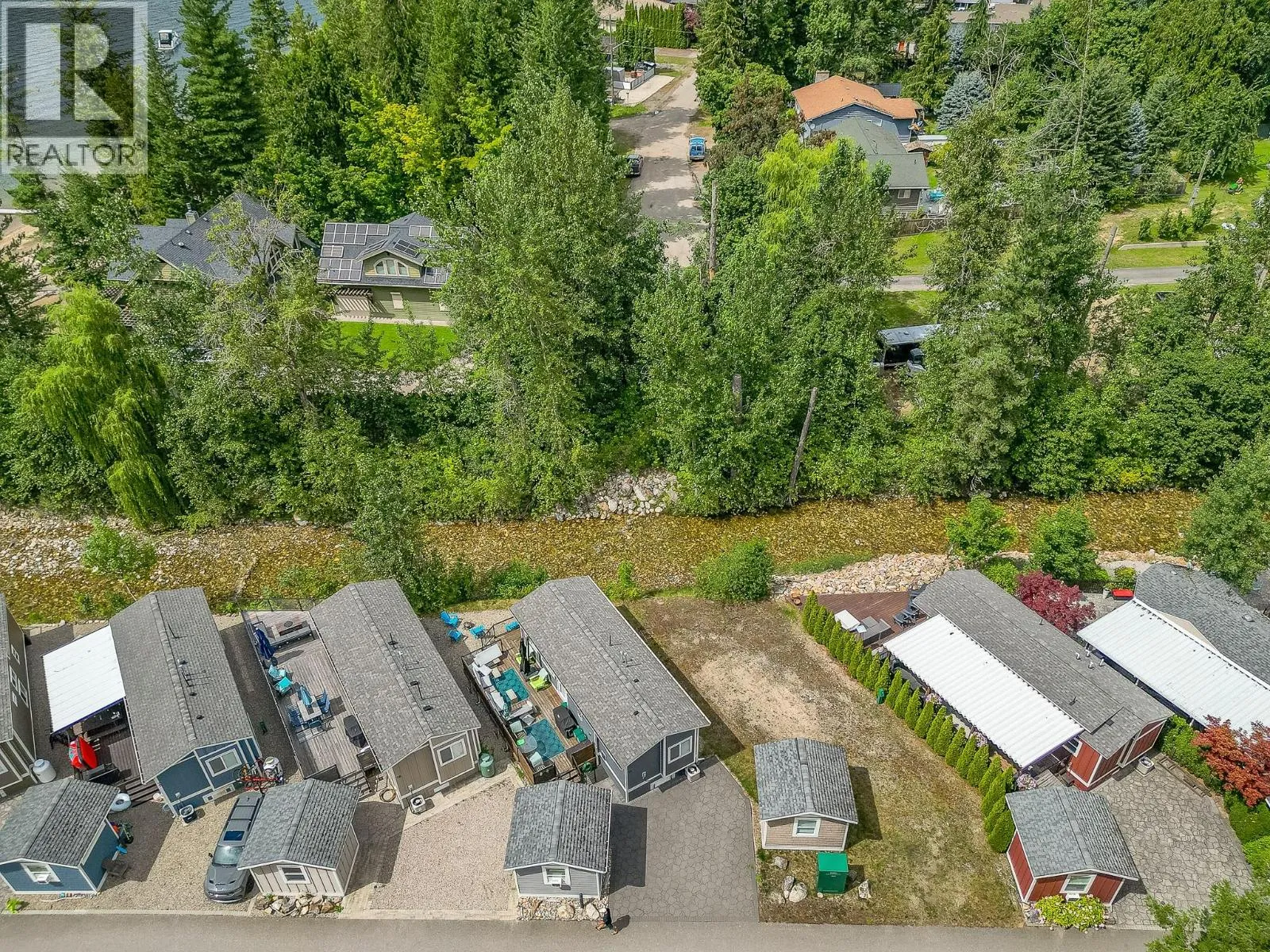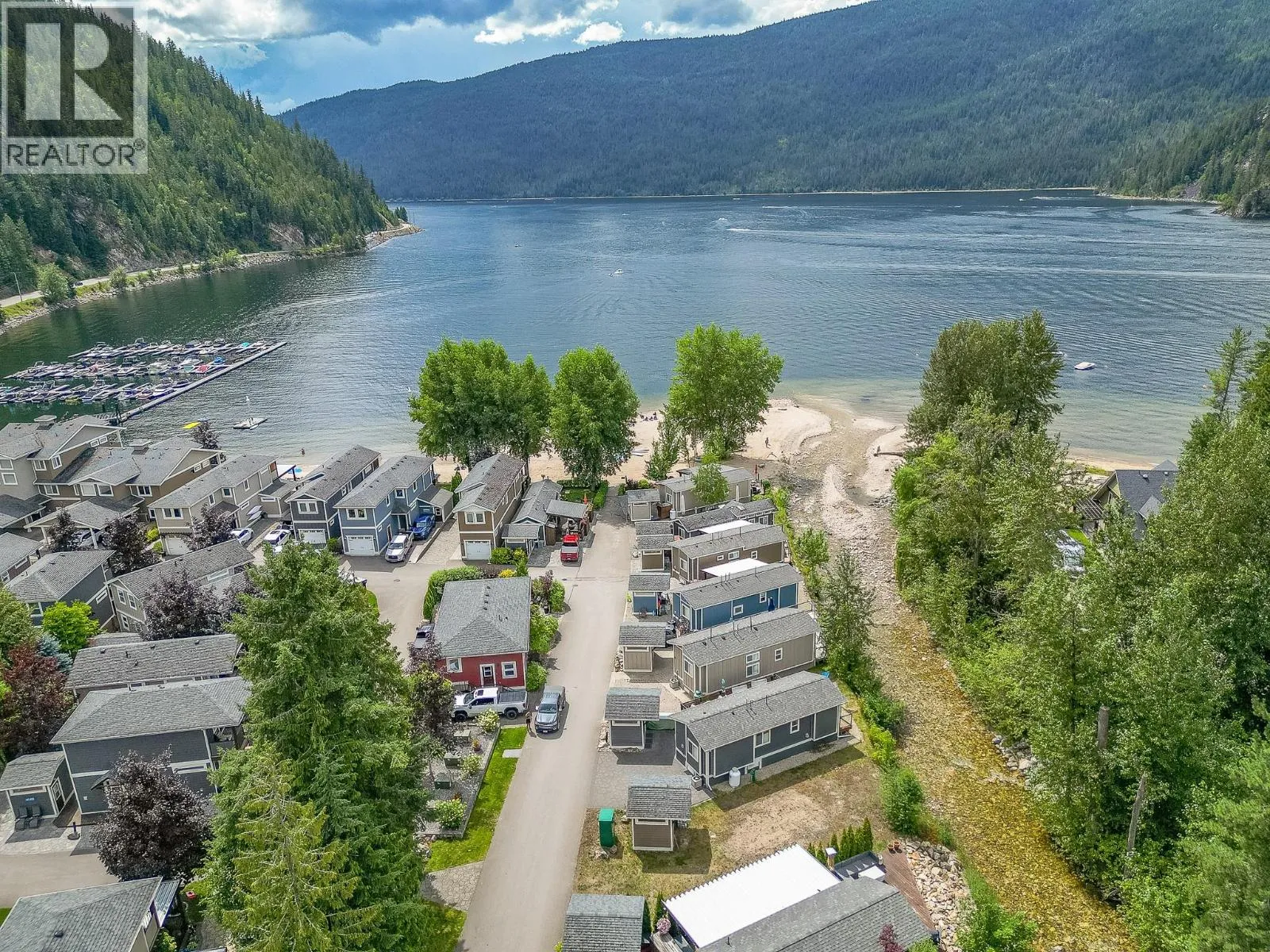 Welcome to your lakeside sanctuary at Hummingbird Beach Resort in Swansea Point, Mara Lake, BC. This beautifully appointed 2019 park model home offers 2 bedrooms and 1.5 bathrooms, thoughtfully designed for comfort, style, and effortless living. It comes fully furnished and turn-key. The interior features an open-concept layout, and a wall-mounted TV for relaxed evenings. The unfinished bunk house offers additional space for storage or future sleeping quarters. Step outside to your private deck overlooking the gentle flow of Hummingbird Creek, where starlit evenings and the sound of water create a tranquil retreat. Just a few feet will bring you to the sandy beach and your personal deep-water boat slip (#28) for endless days of boating and water recreation. This fully serviced, year-round property is located in a gated resort community offering exceptional amenities including a sparkling pool, relaxing hot tub, sandy beach, playground, and communal firepit. The home is equipped with modern conveniences such as a high-efficiency propane furnace, tankless water heater, full-size fridge, range, dishwasher, and more. Zoned for both recreational use and short-term rentals, it offers excellent flexibilityâideal as a personal getaway, income-generating investment, or both. (id:27476)