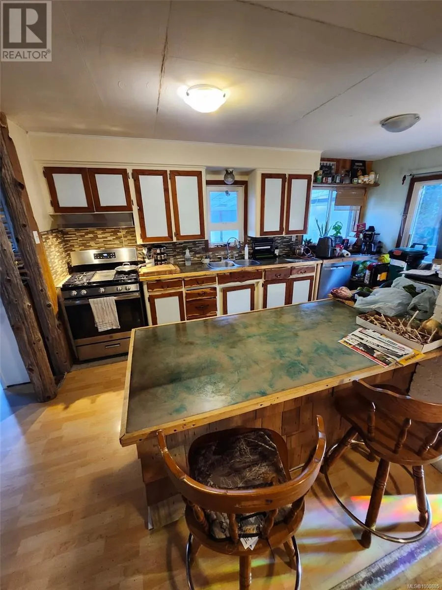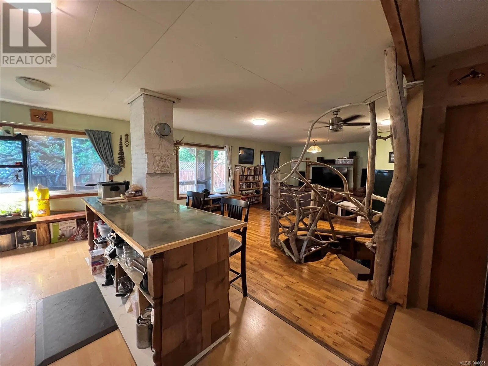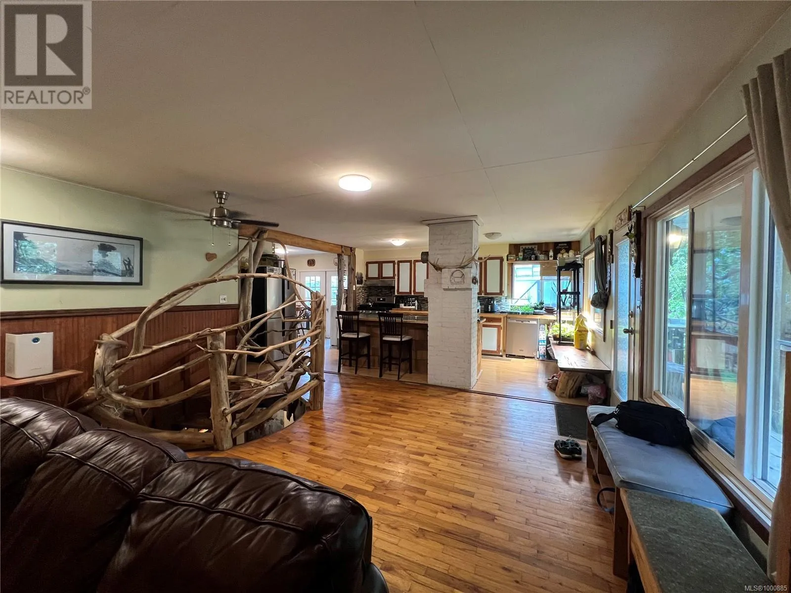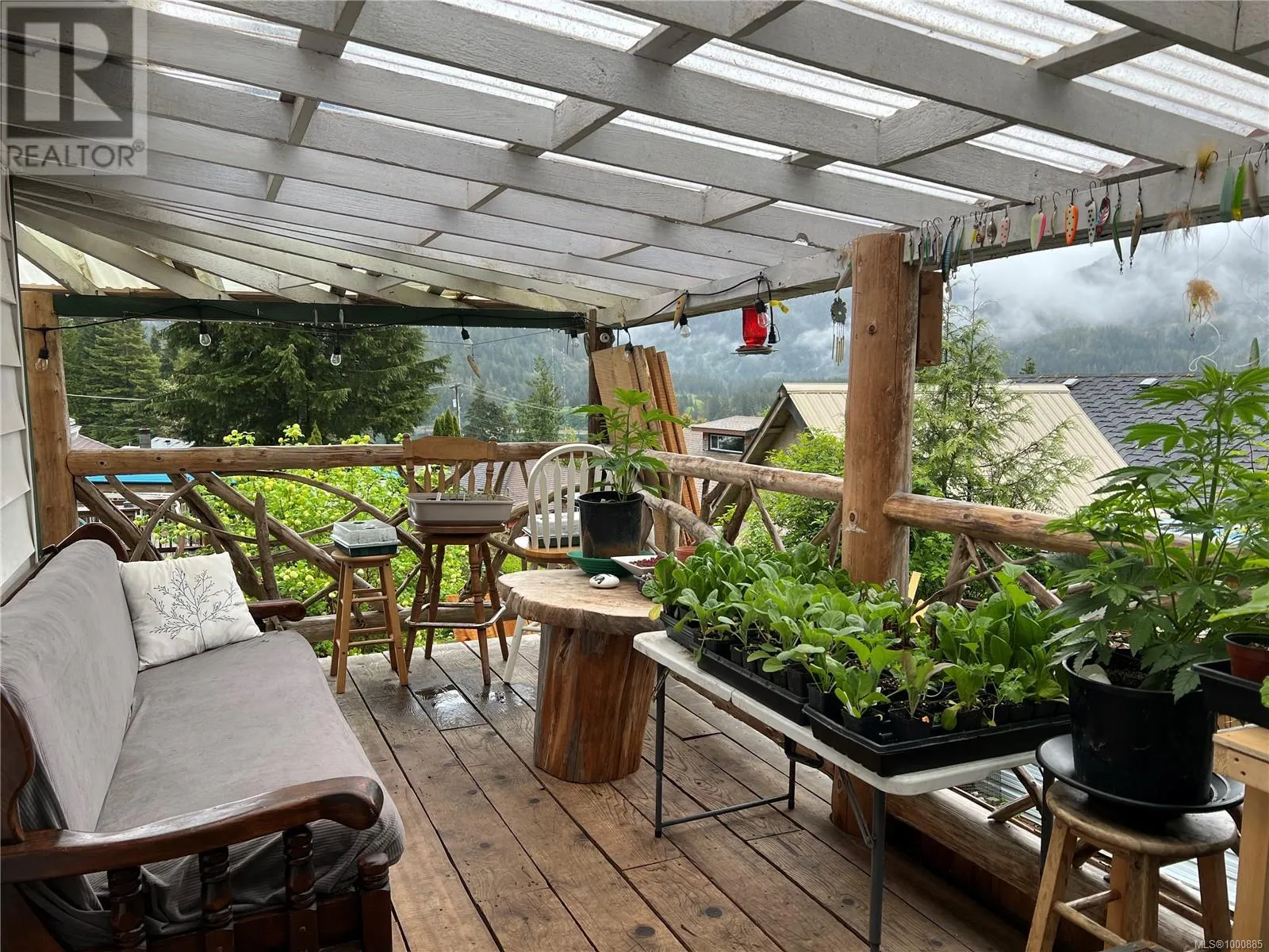 This charming character-filled 3-bedroom, 2-bathroom home sits on a quiet corner lot across from the iconic Ubedam Creek Trail. Enjoy a peekaboo ocean view and tranquil mountain backdrop from your covered wraparound deckâperfect for morning coffee or evening relaxation. Step inside to an open-concept main floor featuring a living, dining, and kitchen. The primary bedroom is conveniently located on this level, complete with a 5' x 7' walk-in closet and the main bathroom is spa-like featuring a deep freestanding tub. A versatile bonus room on this floor can be used as an office, hobby space, or extra storage. Downstairs, youâll find two additional bedrooms, a full bathroom with a walk-in shower, laundry area, and two more storage rooms for all your gear. Located on one of the highest points in Tahsis surrounded by lush forests, rivers, and the ocean, Tahsis is an ideal spot for outdoor enthusiasts looking for a remote, peaceful lifestyle. Buyer to verify all measurements if important (id:27476)