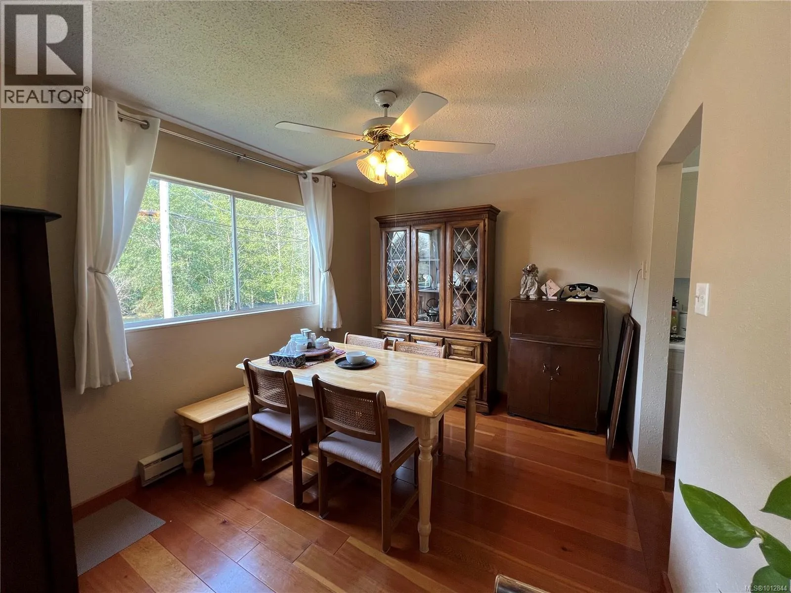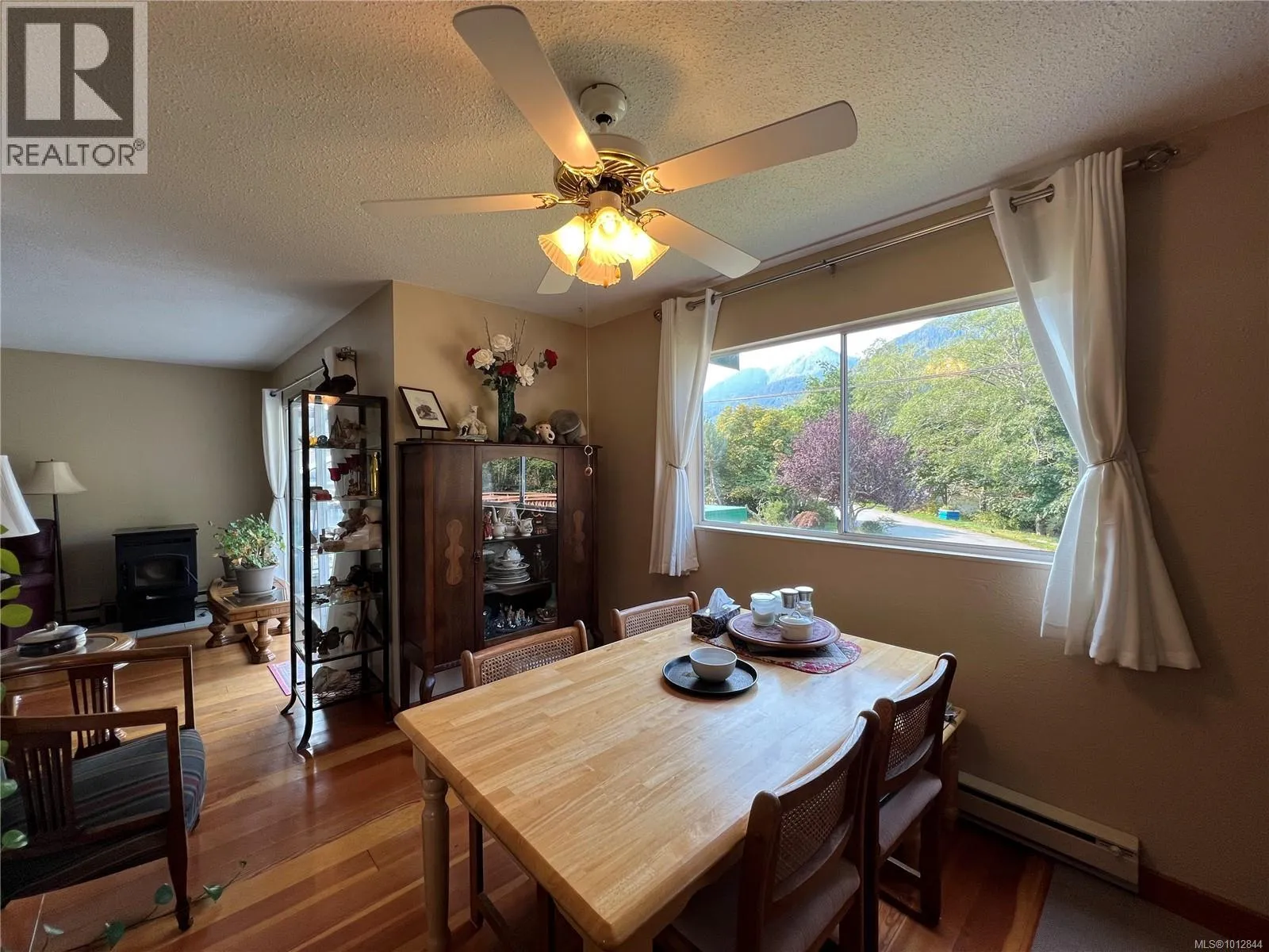 Riverside living. This inviting 4-bedroom, 2-bathroom home spans two levels and is built on solid ground. Warm wood floors and trim add timeless charm, while abundant windows fill the home with natural light. A set of sliding doors opens onto the front deck, the perfect place to relax and enjoy the soothing sounds and views of the river. Just steps away, you can launch your canoe or kayak for a peaceful paddle. The home has newly installed heat pumps, and the roof shingles were replaced in 2019 for added peace of mind and the windows are contracted to be replaced by years end. The garage has been converted into a functional workshop with built-in storage, ideal for hobbies or projects. Outside, youâll find multiple garden spaces and a partially fenced backyard to enjoy. Located on the west coast of Vancouver Island, Tahsis is a premier ecotourism destination, offering world-class outdoor recreationâfrom sport fishing, hiking, and caving to diving and endless breathtaking scenery. (id:27476)