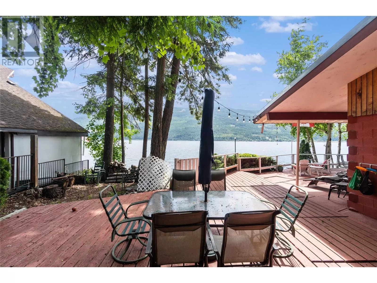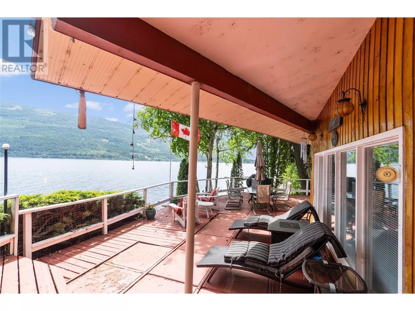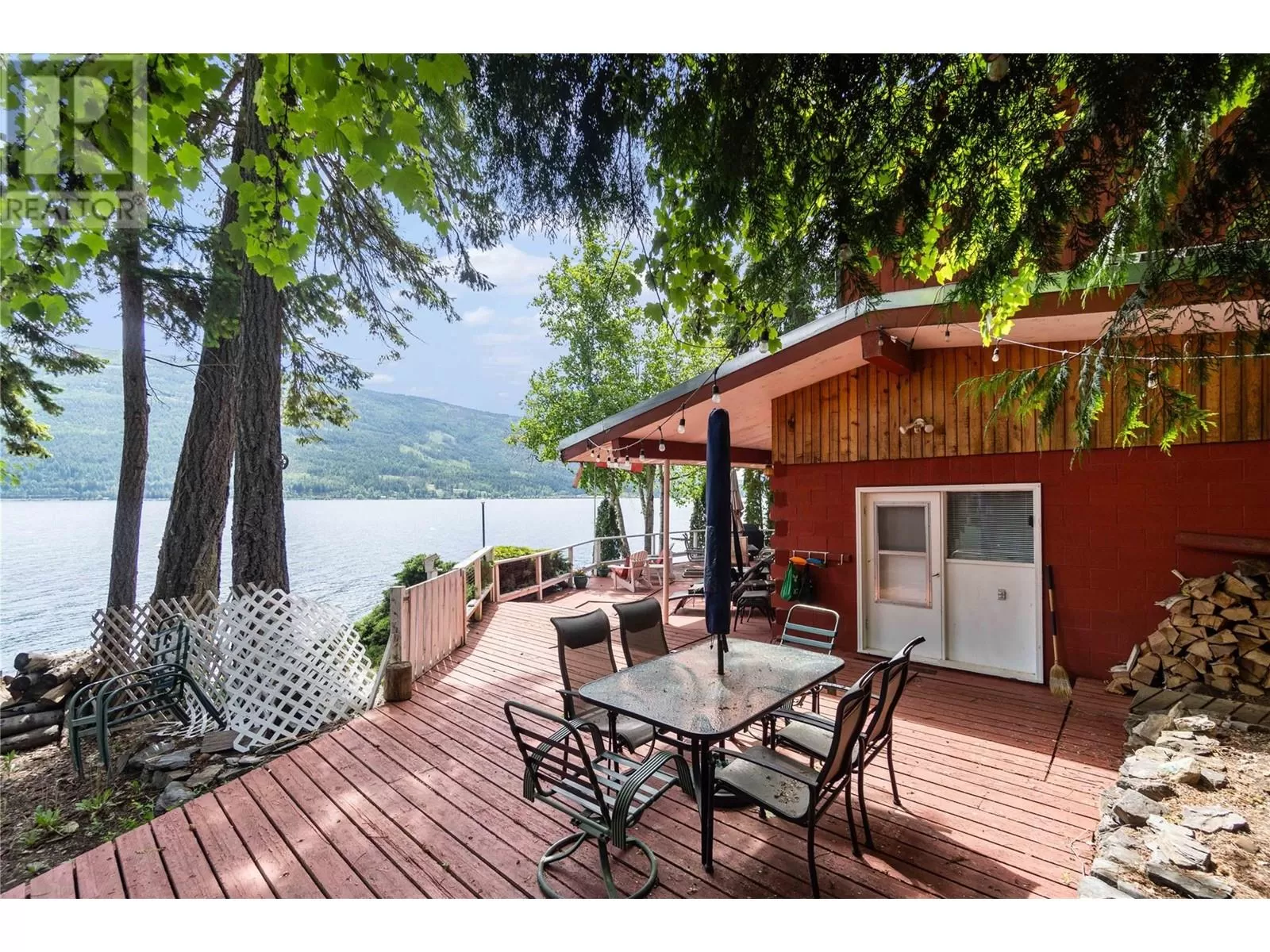 Escape to your own slice of paradise with this charming lakeshore cabin on the sparkling shores of Shuswap Lake. With 75 feet of private beachfront, deep, clear water, and a gorgeous, gently sloping beach, this is the perfect summer retreat for families, friends, and memory-making. Tucked away in a peaceful, private setting just minutes from the Trans-Canada Highway, this cozy getaway offers everything you need for classic lakeside living. The cabin features 3 bedrooms plus a den, 2 bathrooms, and a huge great room that can double as a rec room, craft area, or extra sleeping space. The comfortable living room, with its wood-burning stove, and the kitchen are full of charm and ready for your summer traditions. Step out onto the spacious deck to enjoy morning coffee with lake views or gather around the firepit in the evenings for stories under the stars. The 3-year-old dock is perfect for mooring your boat, swimming, or just lounging by the water. With a BBQ, most furniture included, and a true turnkey setup, this cabin is ready for you to enjoy from day one. Whether you're boating, beachcombing, or simply unwinding, this is a place where summer memories are made. Donât miss your chance to own a piece of the Shuswap and create your own lakeside legacy. (id:27476)
