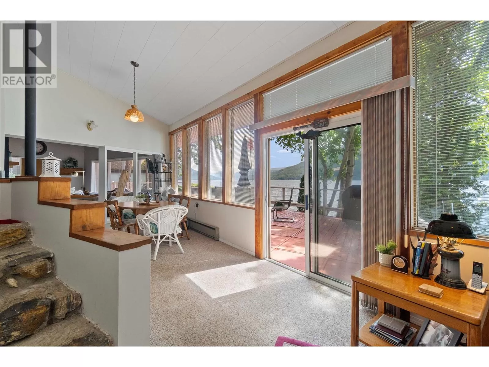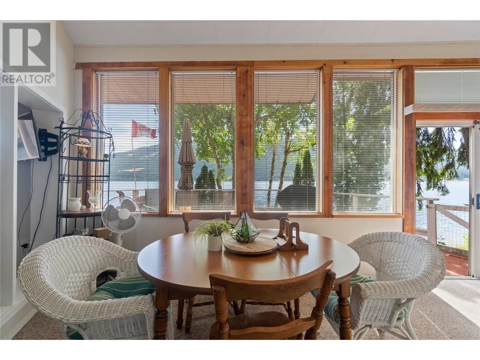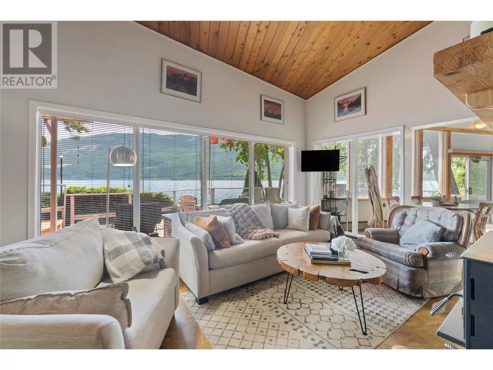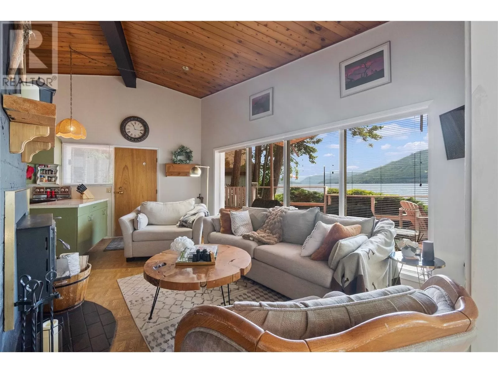 Escape to your own slice of paradise with this charming lakeshore cabin on the sparkling shores of Shuswap Lake. With 75 feet of private beachfront, deep, clear water, and a gorgeous, gently sloping beach, this is the perfect summer retreat for families, friends, and memory-making. Tucked away in a peaceful, private setting just minutes from the Trans-Canada Highway, this cozy getaway offers everything you need for classic lakeside living. The cabin features 3 bedrooms plus a den, 2 bathrooms, and a huge great room that can double as a rec room, craft area, or extra sleeping space. The comfortable living room, with its wood-burning stove, and the kitchen are full of charm and ready for your summer traditions. Step out onto the spacious deck to enjoy morning coffee with lake views or gather around the firepit in the evenings for stories under the stars. The 3-year-old dock is perfect for mooring your boat, swimming, or just lounging by the water. With a BBQ, most furniture included, and a true turnkey setup, this cabin is ready for you to enjoy from day one. Whether you're boating, beachcombing, or simply unwinding, this is a place where summer memories are made. Donât miss your chance to own a piece of the Shuswap and create your own lakeside legacy. (id:27476)