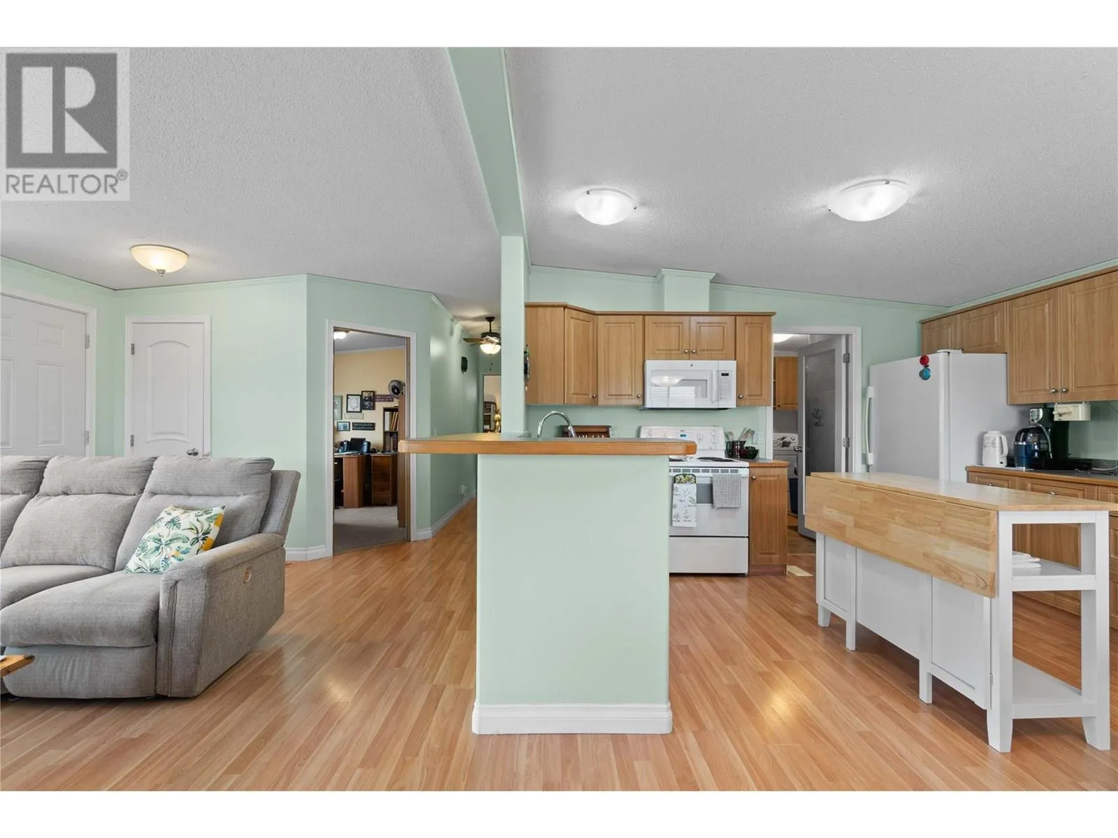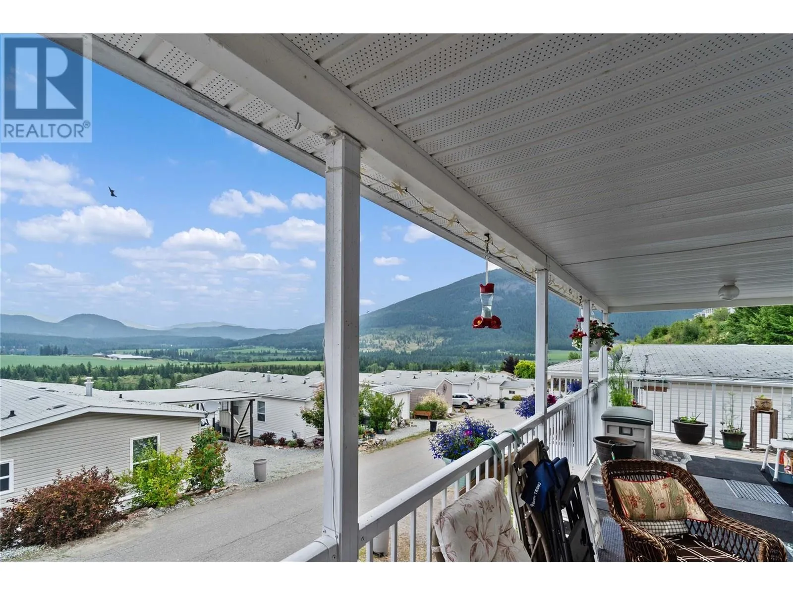 SCENICALLY SUPREME VALLEY VIEWS! Sip your morning coffee or an evening glass of wine on your covered deck while enjoying the exquisite valley and mountain views. This is your perfect opportunity to have a carefree & easy lifestyle in the popular community of Shuswap Country Estates that offers low maintenance landscaping. This is a 55+ MHP located approximately 20 minutes west of Salmon Arm & 10 minutes from Blind Bay. The well-cared-for 2006 modular home boasts walls that are drywalled, 1251 sq. ft, 2 bedrooms PLUS den, 2 baths, open concept main living area that features kitchen with lots of cabinets, raised bar for extra dining space plus adjoining dining area, separate laundry room conveniently located off the kitchen with extra cupboards & storage space, bright living room with gas stove to take the chill off in the cooler weather & access onto the covered deck, spacious primary bedroom with large closet with mirrored doors & ensuite with soaker tub, double sinks, medicine cabinet & large closet. Outside there is lots of parking space, garden box & a shed. Upgrades over the last few years include a furnace, the main area freshly painted & some appliances replaced. Monthly pad rent includes garbage pickup, water, sewer & main road snow removal. Park is pet friendly & has RV parking. Perfect for retirement or snowbirds in the winter. This home is affordable & a MUST VIEW!. Let your next chapter start here!! (id:27476)