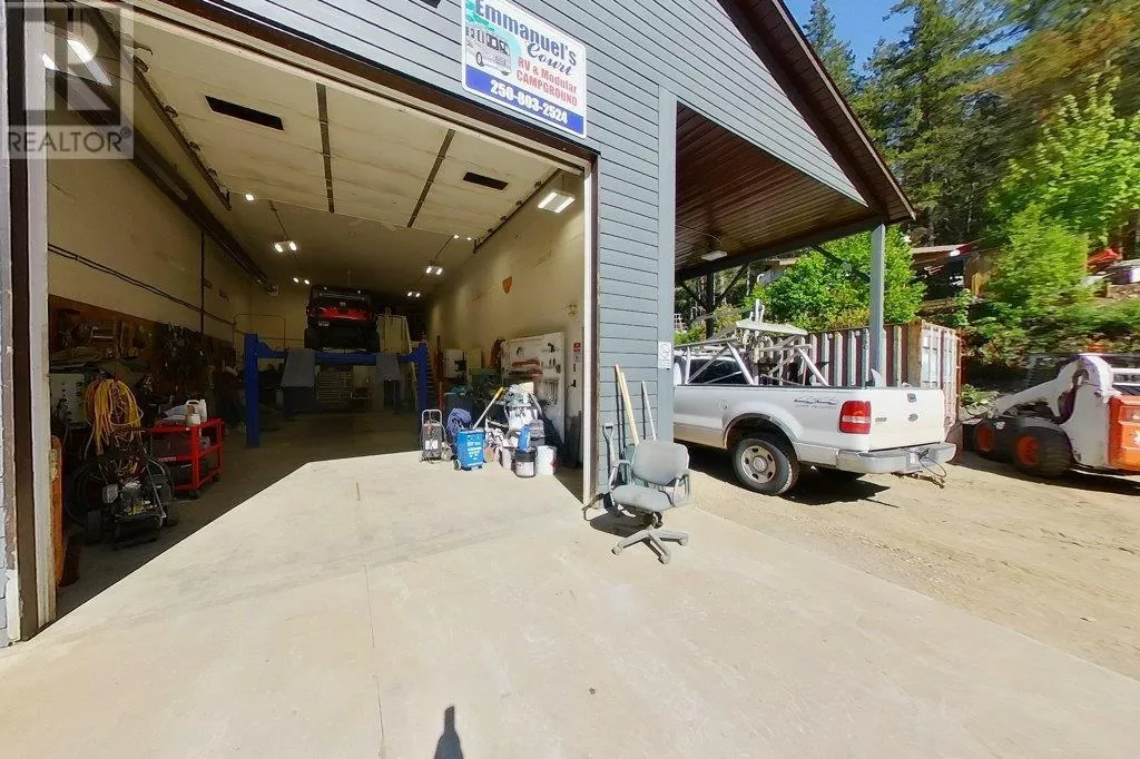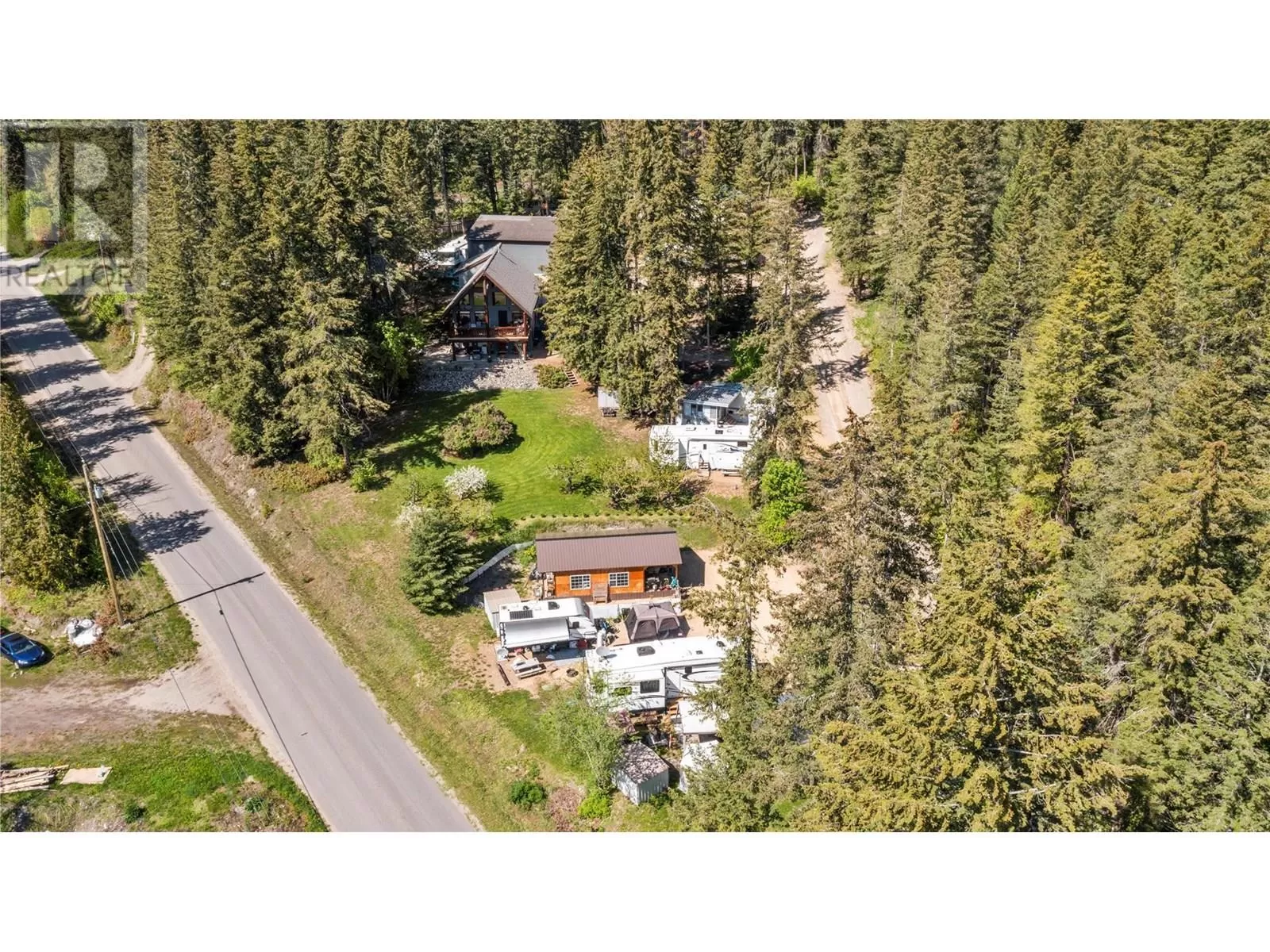Tucked away on 1.62 acres of peaceful privacy, this post and beam home offers a rare combination of lifestyle, flexibility, and revenue potential. Just minutes from Shuswap Lake, Sunnybrae Winery, and the beach, this property is a true gem. The main residence is a 3-bedroom, 2-bathroom home with soaring vaulted ceilings, expansive picture windows, and a spacious covered deck with glimpses of the lake. A generous games room adds to the home's versatility, while the self-contained 1-bedroom in-law suite with separate entrance and its own laundry provides ideal space for income potential guests or extended family. Additional living or rental income comes from a detached 2-bedroom mobile home with its own driveway access and for even more income potential, there are 9 fully serviced RV pads, each with water, sewer, and individual hydro meters. A 52â x 20â detached shop with mezzanine storage and bathroom is perfect for hobbyists, home-based businesses, or storage. There's also a 19â x 51â RV shelter for added convenience. With rustic charm, thoughtful design, and income-generating features, this one-of-a-kind property offers the ultimate in rural livingâjust a short drive from the best of Shuswap. (id:27476)