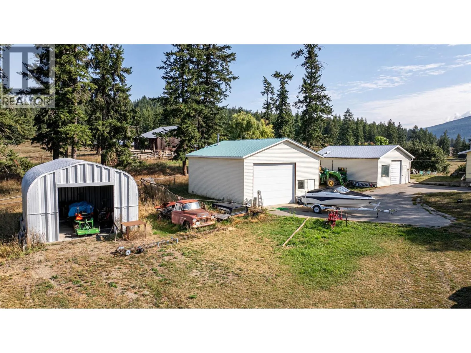 If your looking for a good farm property for livestock this is it! 80 acres with a good home and numerous sturdy outbuildings. The home is a comfortable 3 bed/2 bath featuring beautiful real stone, wood burning fireplace with fan. Enjoy the sunrise with your morning coffee in the sunroom located at the east end of the home. Laundry and full bath are also located on this floor. Downstairs you will find the 3rd bedroom and 3 pce. bath. The home is heated and cooled with efficient geothermal. The outbuildings consist of a Shop 30'x28' with 12' role up door and 100 amp service and car hoist. Detached garage 24'x28 with 9' role up door, metal Quonset, 20'x29', Arch Rafter 33'x60'and Quonset 27'x60' with 2 x 12'x10' open ends, with concrete floor and roughed in bathroom. The land has approximately 60 acres of cropland and 20 acres of treed pasture divided into paddocks. There are several varieties of fruit trees, such as Plum, Apple and Cherry. Water is supplied by drilled wells to the home and for livestock watering. Located close to several recreational areas such as Shuswap Lake, White Lake and Blind Bay Golf Course. Shopping is minutes away in Salmon Arm or Sorrento. Great property ready for your ideas. (id:27476)
