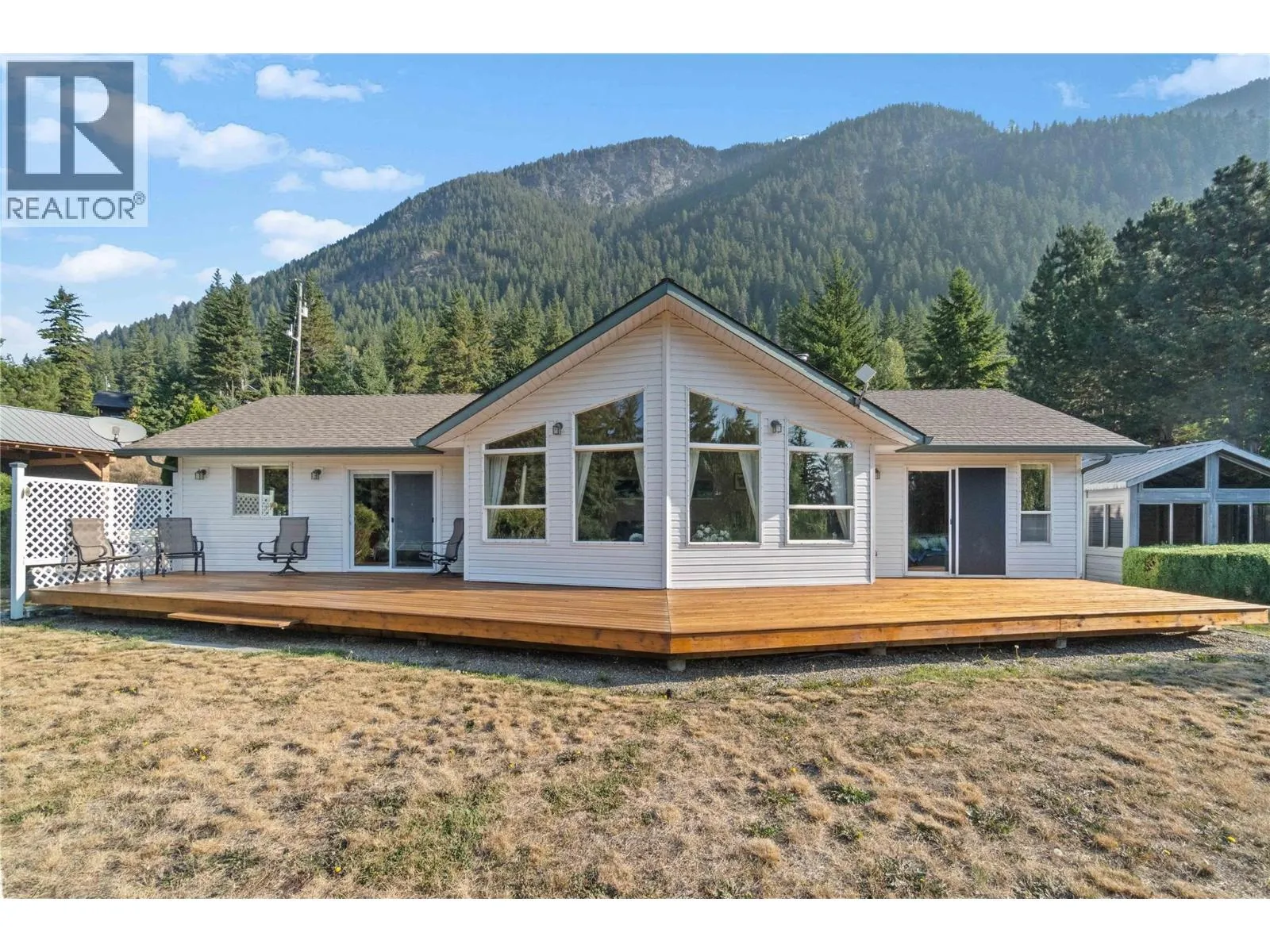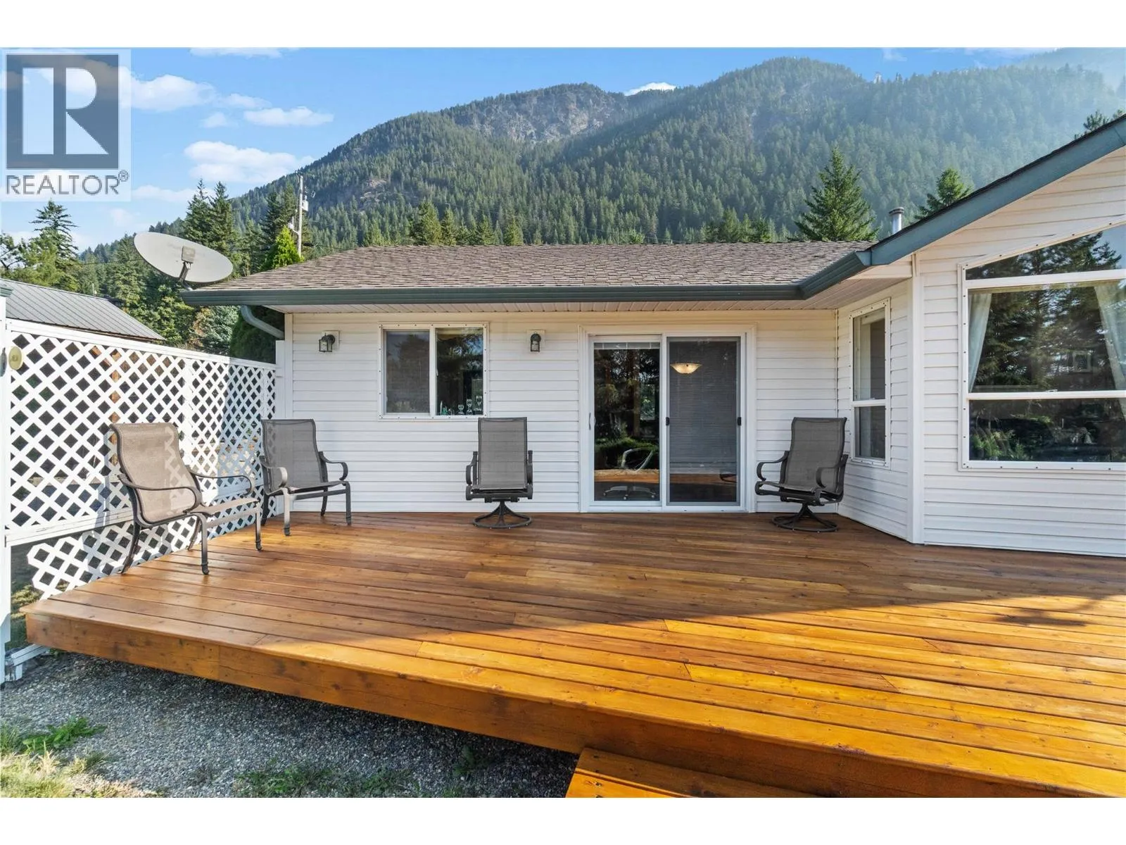 Welcome to 760 Mobley Rd â Just 1 km to Shuswap Lake! This well-kept 1,398 sq ft rancher (built in 1996) sits on a private 0.84 acre lot with stunning views of Mt. Ida and Bastion Mountain. Inside, youâll find 3 bedrooms and 2 bathrooms, easy-care laminate and hardwood flooring, and new 2024 patio doors with built-in blinds. A Lennox free-standing fireplace with updated surround (2010) provides cozy comfort. Outdoors is an entertainerâs dream: an expansive 59 ft cedar deck (2025), large concrete patio and retaining wall (2015), and in-ground sprinklers keep everything lush. The two-car detached heated 30'11"" x 24""7"" garage/shop offers counters, shelving, and a built-in hoist, plus a lean-to for your skid steer and a Sea Can for added storage. A post-and-beam boat house easily fits a boat or motorhome. Upgrades include a 2021 hot water tank and complete Poly-B plumbing replacement (June 2025). The property boasts a plum tree, abundant rhubarb, raised garden boxes, and a HOT TUB CABANA with hot tub and saunaâperfect for relaxing or adding a pool. Conveniently, the school bus stops right across the plowed road. Peaceful, scenic, and just minutes from the lakeâthis Shuswap gem is ready for you to enjoy! (id:27476)