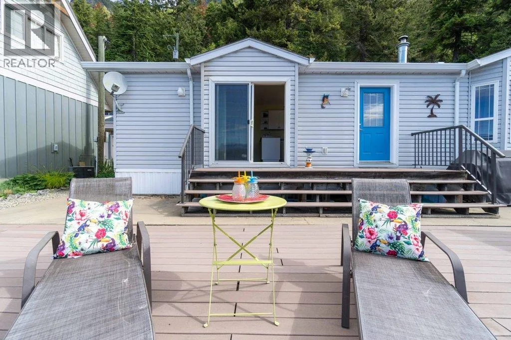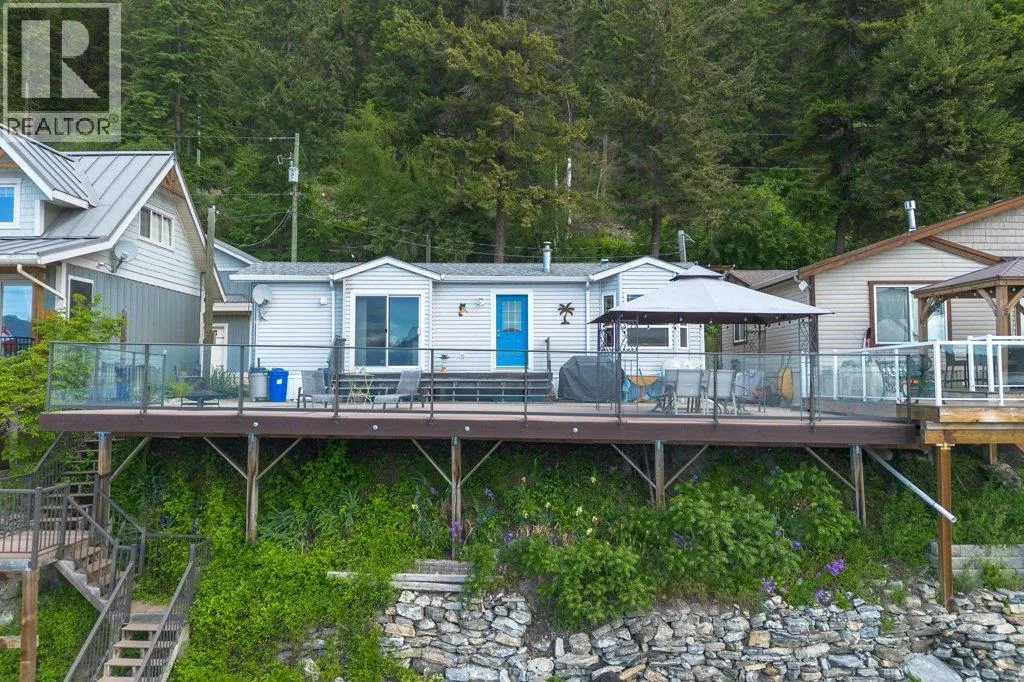 Shuswap LAKEFRONT Home Own Your Share of This Amazing Property! Welcome to your serene retreat located right on the beautiful Shuswap Lake! Charming park model home, 1 bed, 1 bath, comfortable living room with vaulted ceilings, and spacious kitchen. Offering stunning natural views of the lake, mountains, and valleys, providing a perfect escape from the hustle and bustle of everyday life. Features: Expansive Deck with Gazebo: Ideal for outdoor entertaining and enjoying the picturesque surroundings. Lake Activities: Enjoy swimming, paddleboarding, boating, and floating right from your doorstep. Cozy Interior: The home features a comfortable bedroom and a well-appointed bathroom, perfect for relaxing after a day of lake activities. Ideal for Multi-Family Use: Whether it's a family retreat or a getaway with friends, this property offers the flexibility you need. Bonus Accommodation: An additional RV provides extra space for guests or extended family members. Don't Miss Out! This peaceful haven nestled in nature's beauty is a rare opportunity. Embrace the tranquillity and enjoy all the lake has to offer! (id:27476)