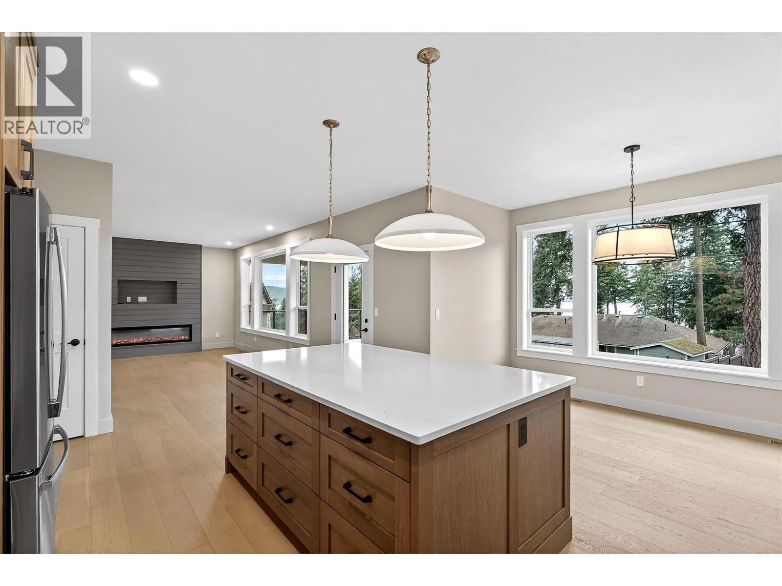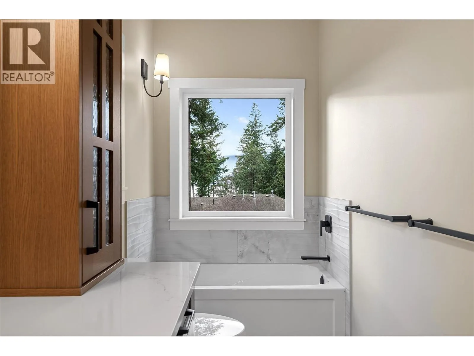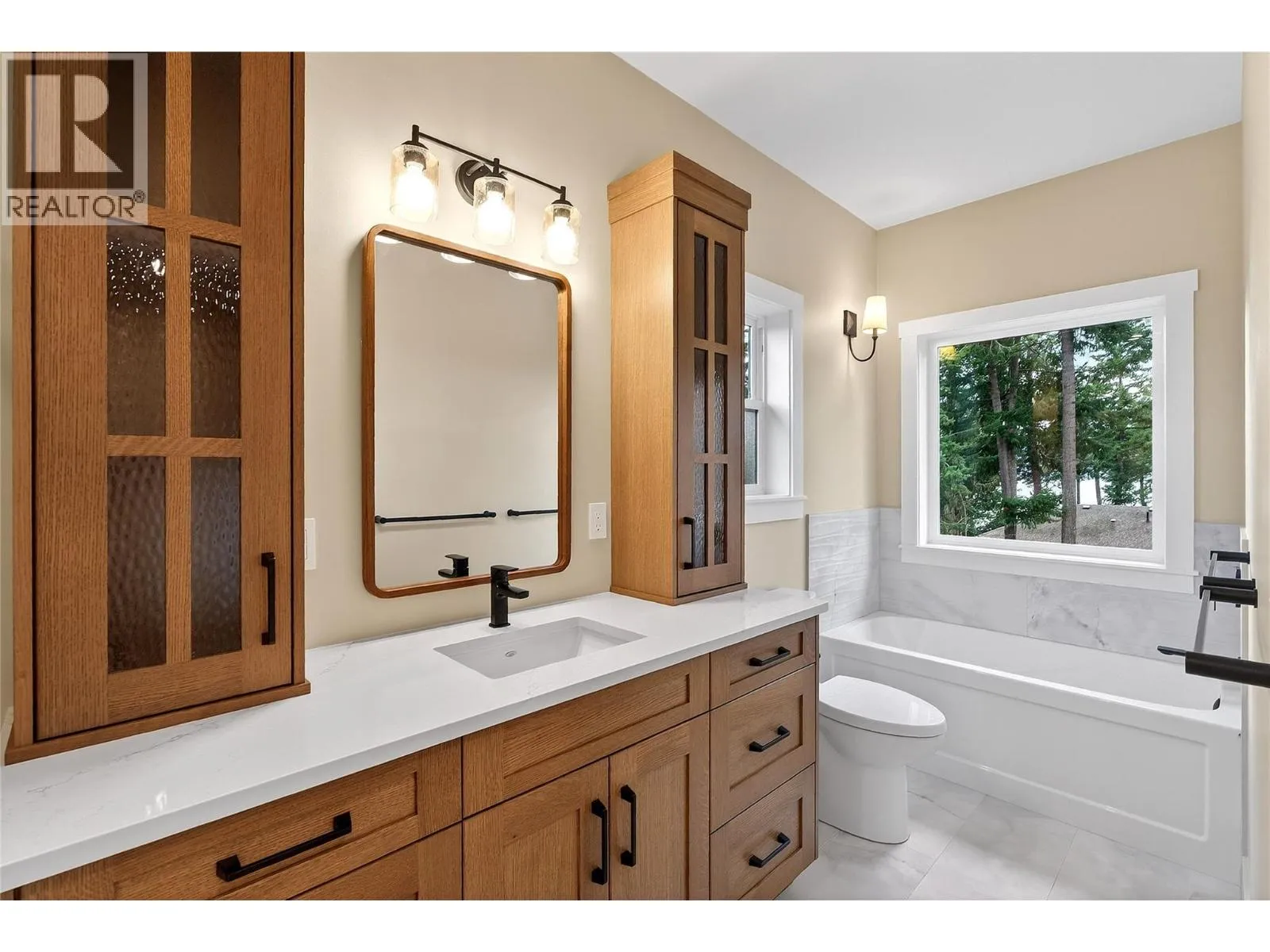 Quality new construction with lake and mountain views! This level entry home features a practical and functional layout with 4 beds, 3 baths, den and gym space. The main level includes a custom kitchen with white oak cabinets, quartz countertops, white oak hardwood flooring, a covered deck with natural gas outlet as well as the primary bedroom with walk in closet and on-suite. Downstairs is a fully finished daylight basement with a rec room, bathroom, 2 bedrooms and a flex space. It is plumbed for an extra kitchen or an extra washer/dyer for a suite or to use for your company/teens. Outside has gemstone lighting, fencing and is wired for irrigation. Plenty of parking for your boat or RV. All appliances and washer and dryer are included. New construction exemption of property transfer tax and first time home buyers may now qualify for GST rebate! Launch your boat in the beautiful community of Sunnybrea and enjoy the public beach, winery, hiking trails, waterfall and only 10 minutes from Salmon Arm with the new and improved highway. (id:27476)