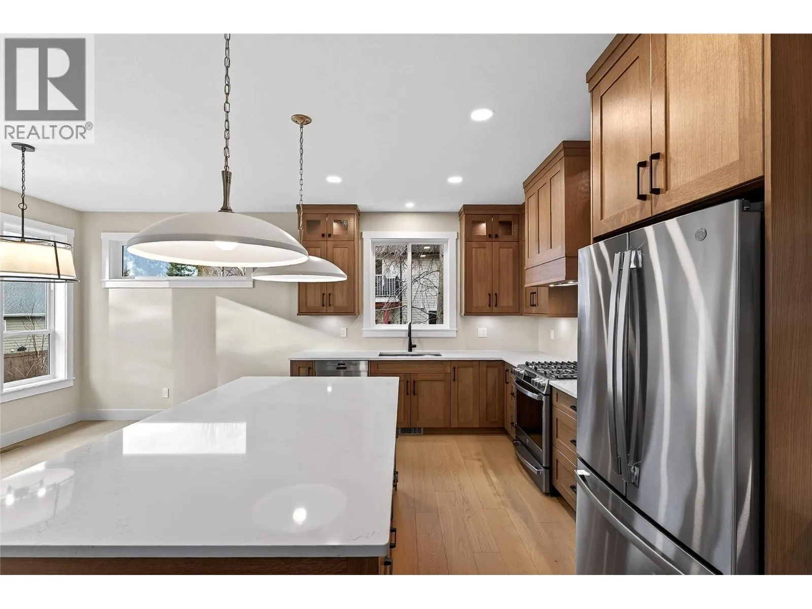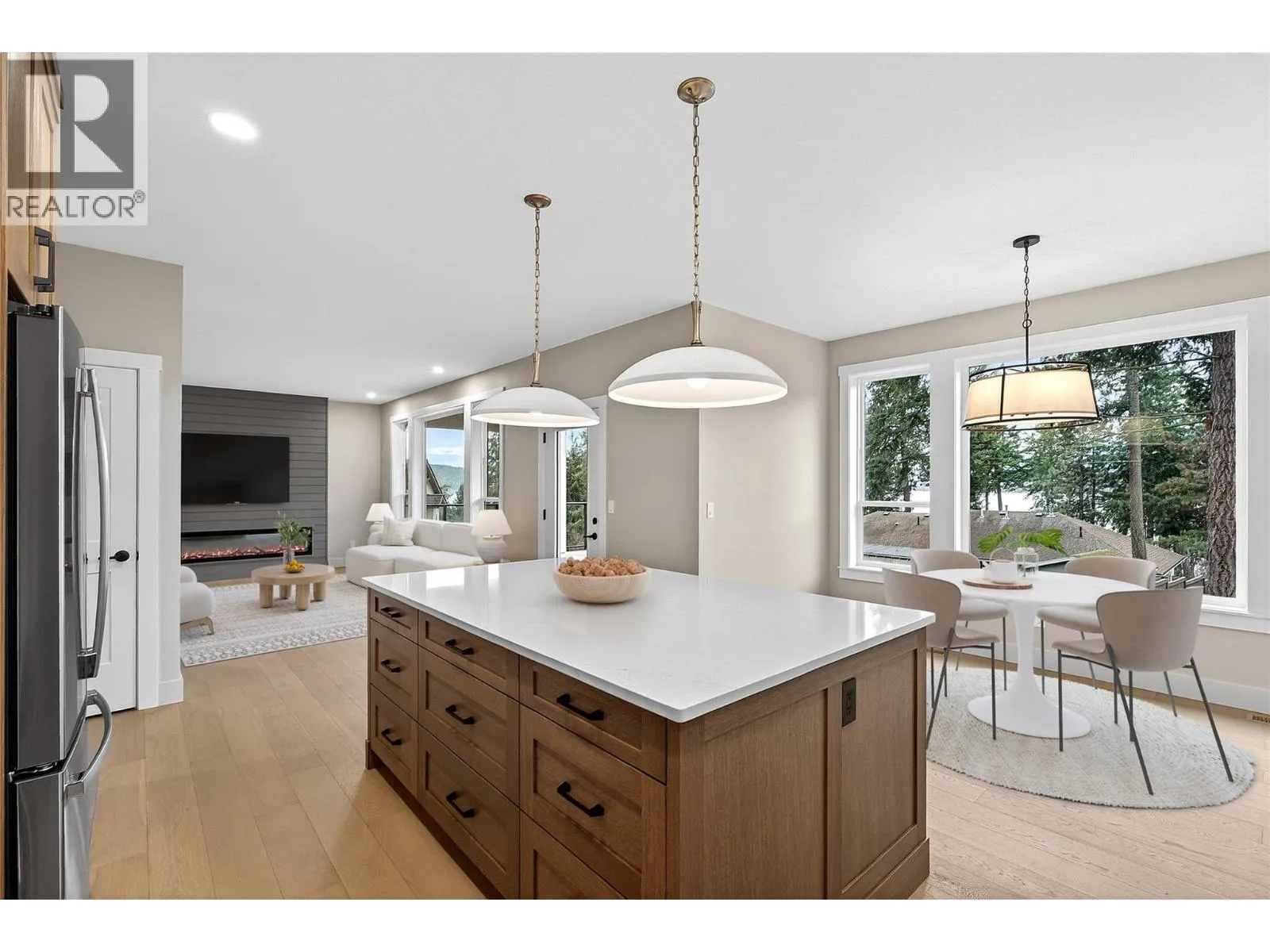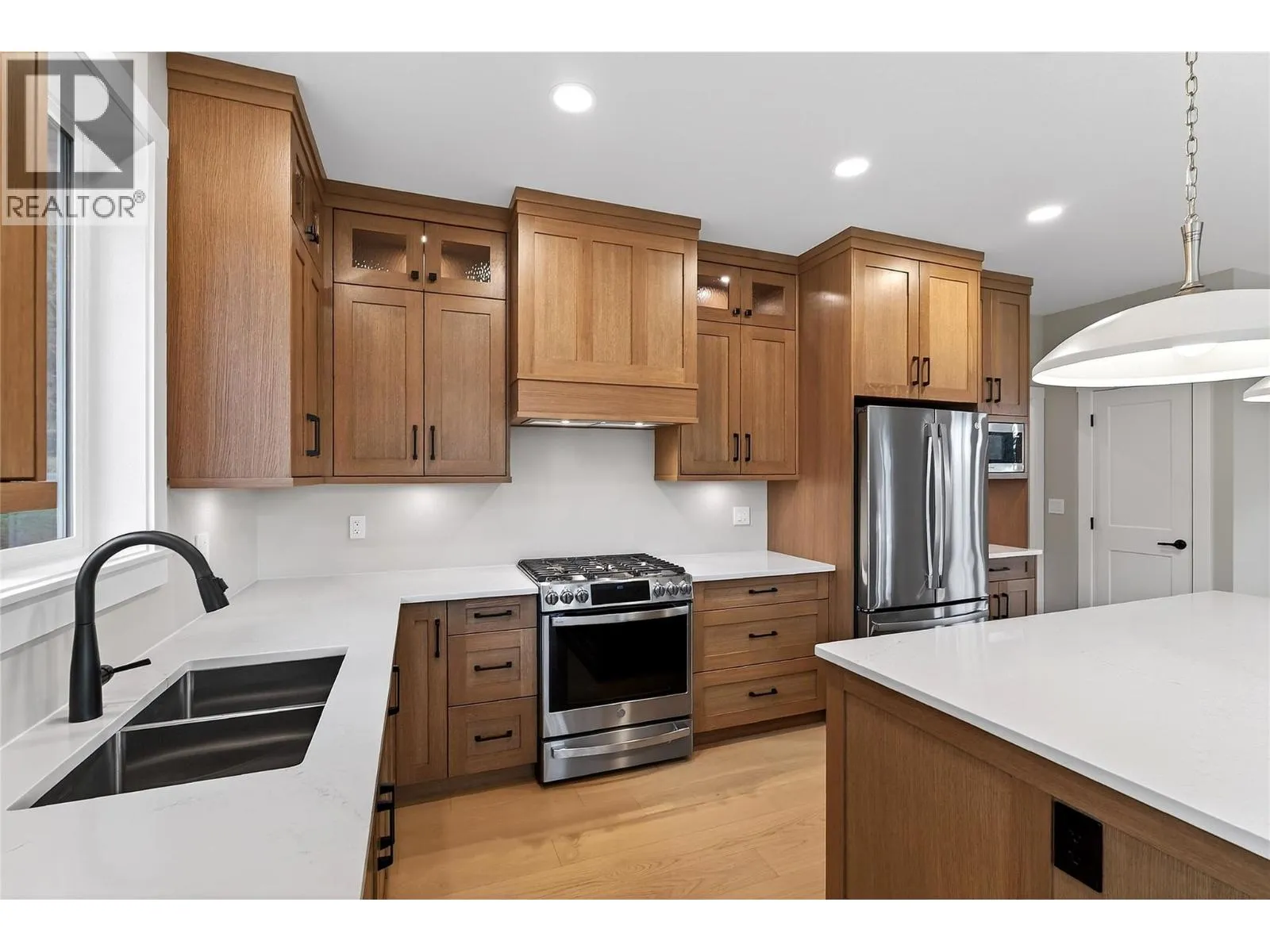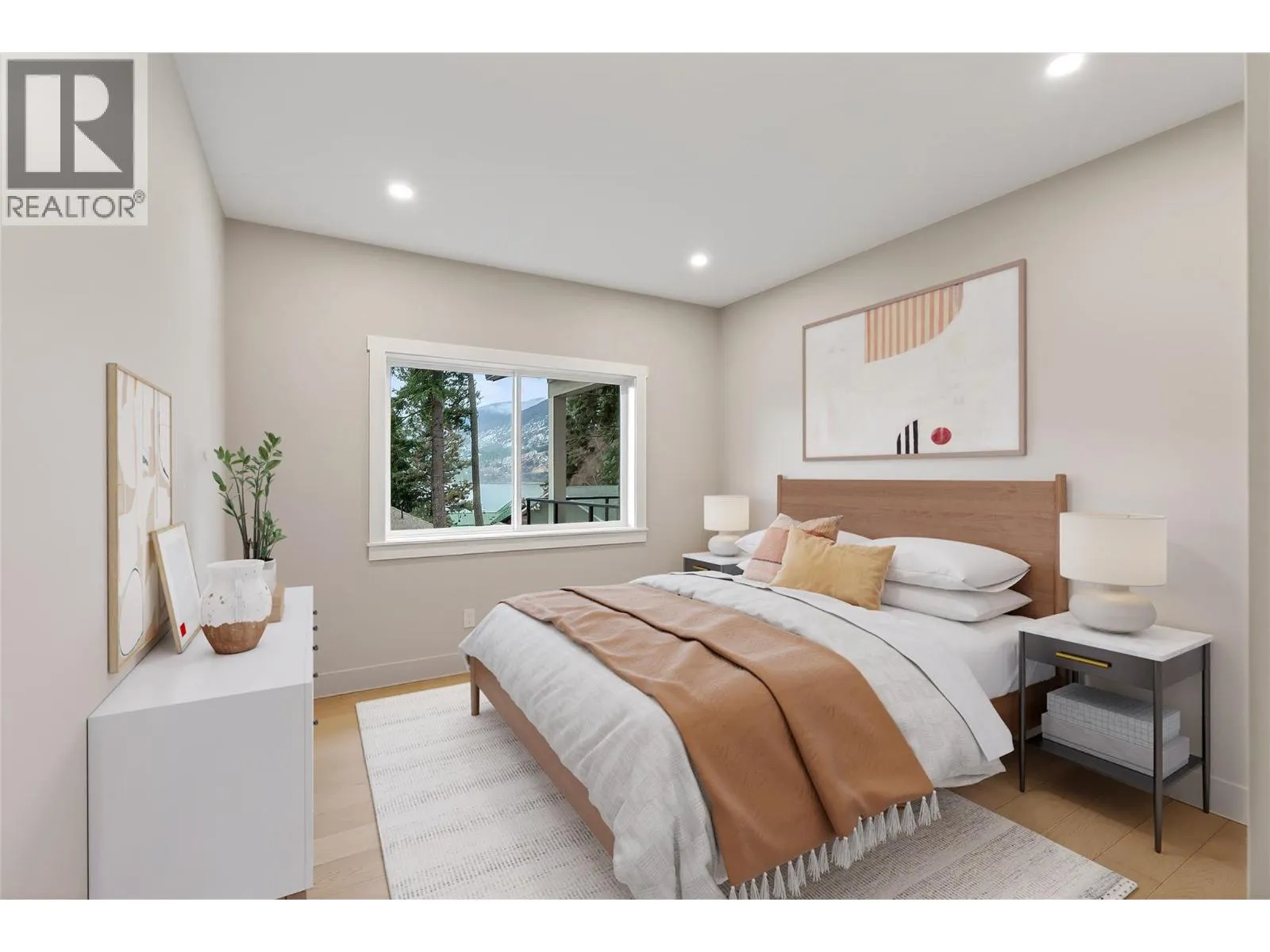 Quality new construction with lake and mountain views! This level entry home features a practical and functional layout with 4 beds, 3 baths, den and gym space. The main level includes a custom kitchen with white oak cabinets, quartz countertops, white oak hardwood flooring, a covered deck with natural gas outlet as well as the primary bedroom with walk in closet and on-suite. Downstairs is a fully finished daylight basement with a rec room, bathroom, 2 bedrooms and a flex space. It is plumbed for an extra kitchen or an extra washer/dyer for a suite or to use for your company/teens. Outside has gemstone lighting, fencing and is wired for irrigation. Plenty of parking for your boat or RV. All appliances and washer and dryer are included. New construction exemption of property transfer tax and first time home buyers may now qualify for GST rebate! Launch your boat in the beautiful community of Sunnybrea and enjoy the public beach, winery, hiking trails, waterfall and only 10 minutes from Salmon Arm with the new and improved highway. (id:27476)
