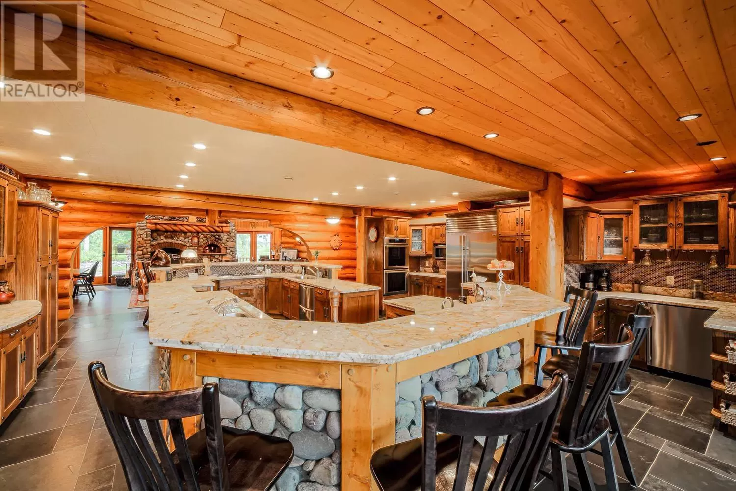 Nestled between the small towns of Smithers & Telkwa, Telkwa to Houston, this gated 282 acre estate property w/ main house, attached studio & 3 guest cabins is a unique property w/ plenty of opportunities for future development. Luxurious materials & amenities abound in this custom-built compound. Overlooking the river, mature forests, & Telkwa mtns, you can revel in the solitude & fresh air all year long. For adventurer, enjoy world-class steelhead fishing on the famous Bulkley River, miles of hiking & snowmobiling trails, & a lake perfect for stocking trout. Or, watch local wildlife meander through, w/ bear, moose, elk, & deer making regular appearances. Delight guests indoors & out, from the chef's kitchen at heart of the home to expansive decks & 282 acres to enjoy the great outdoors. (id:27476)