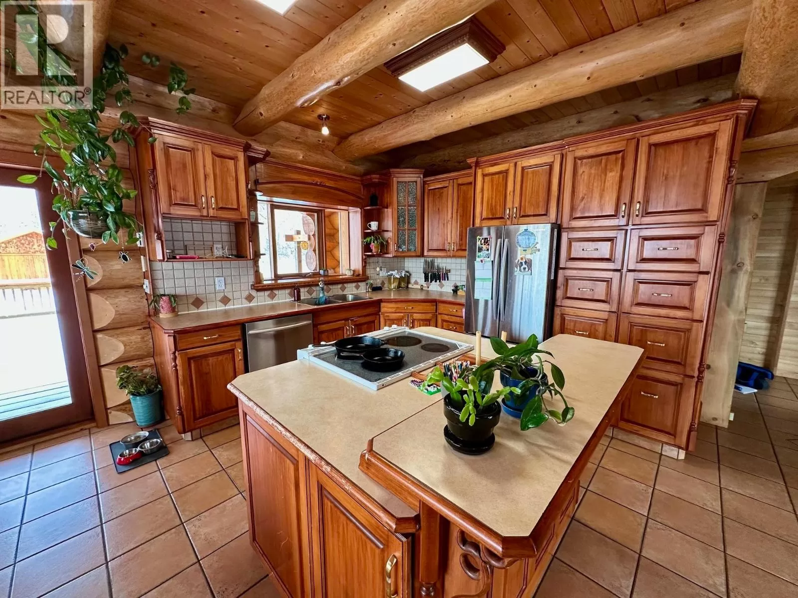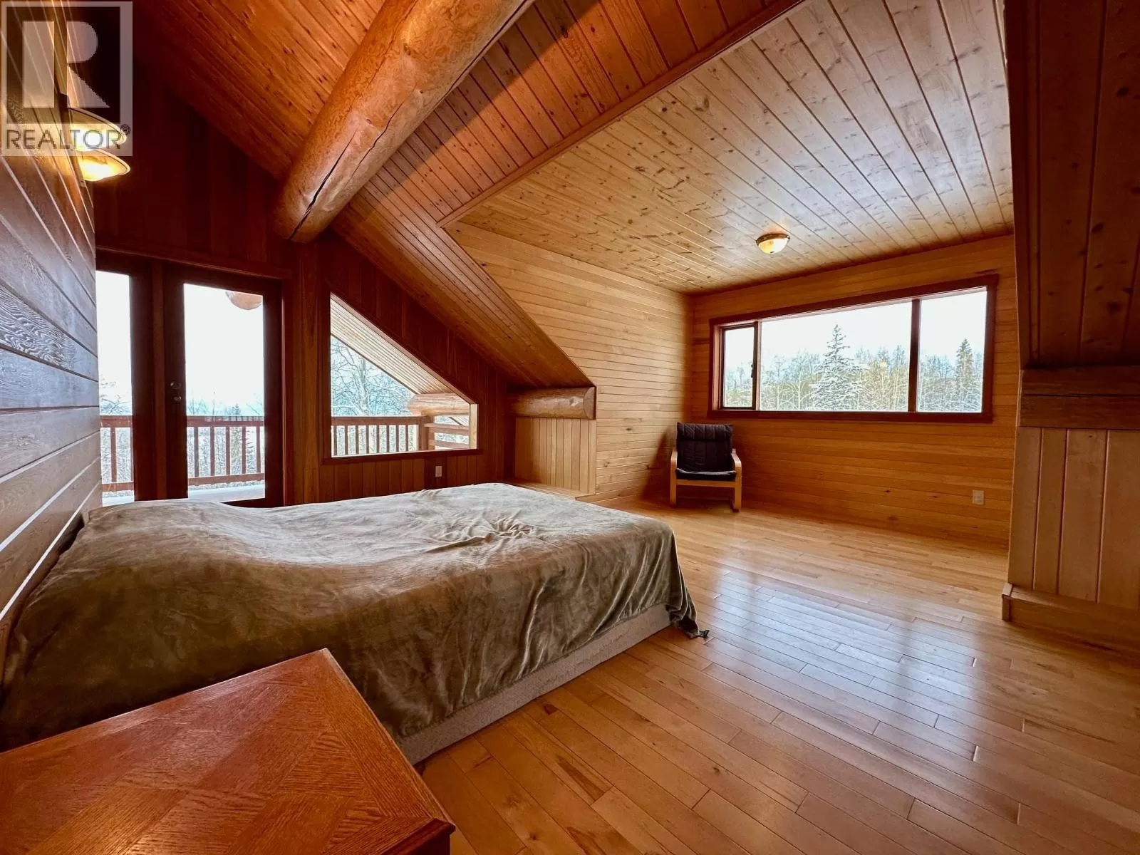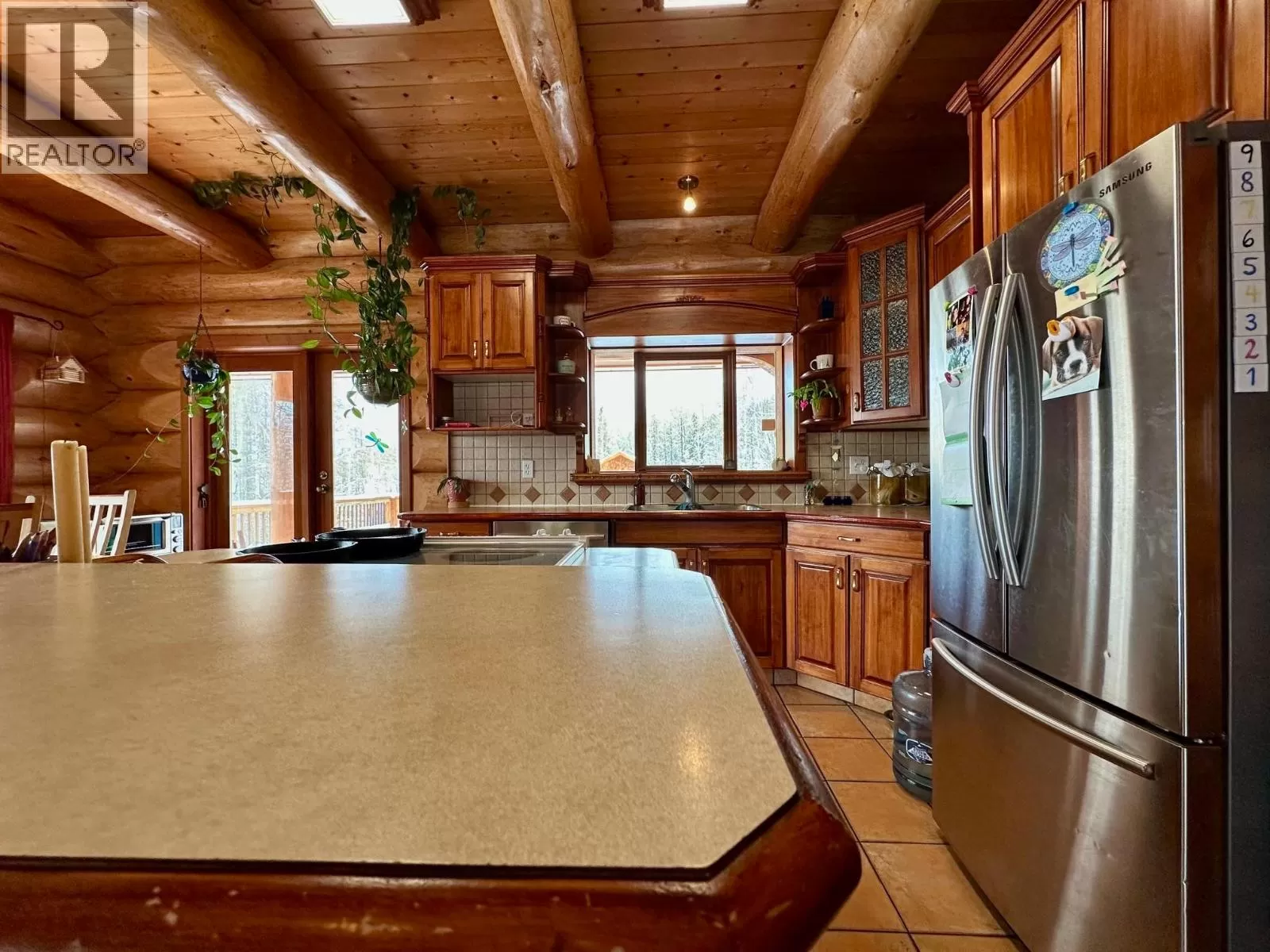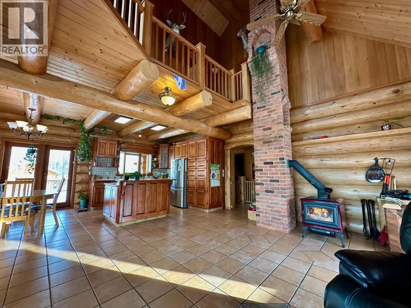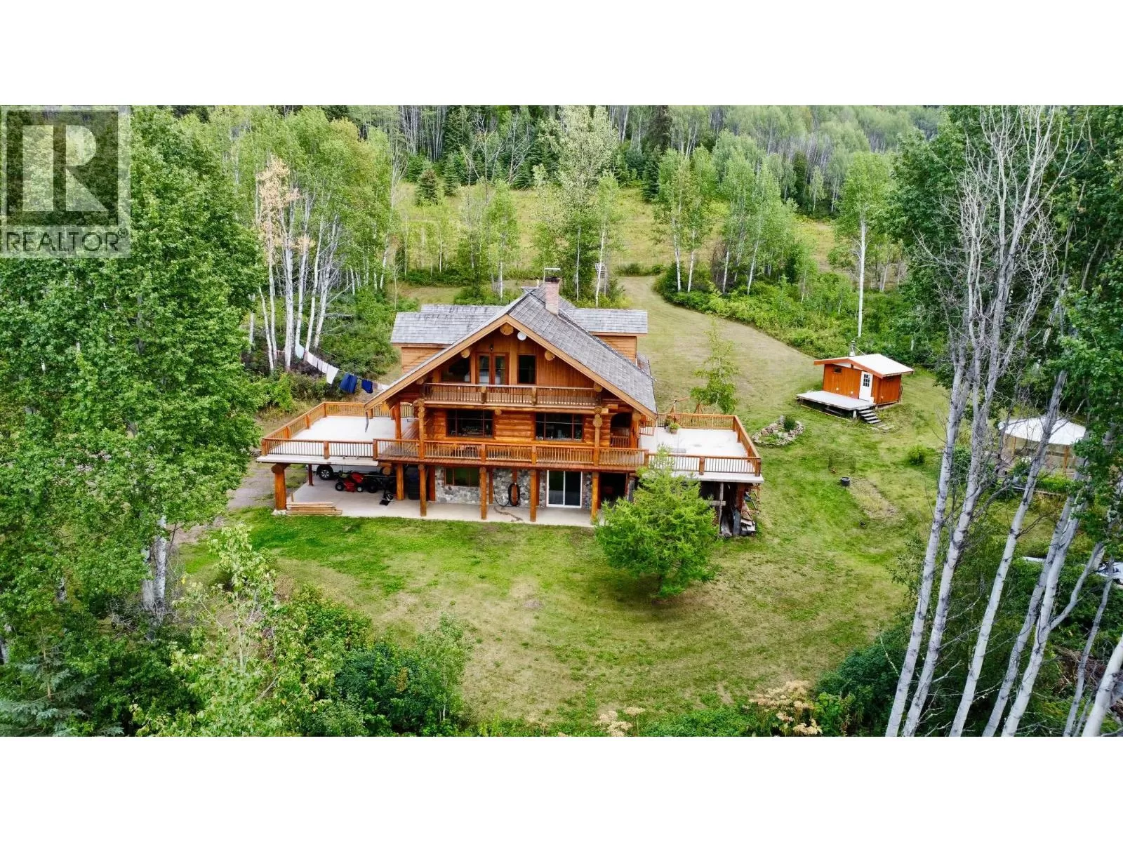 * PREC - Personal Real Estate Corporation. Custom Log Home on 5 Acres with Stunning Views in Telkwa, BC. Discover the charm of this custom-built log home perched above Tyhee Lake, offering breathtaking views of Hudson Bay Mountain. Set on 5 private acres, this unique property blends rustic elegance with modern comfort. The handcrafted log home design features warm wood tones, vaulted ceilings, and a cozy wood-burning stove. The house delivers 3 large bedrooms and a 4 piece bathroom on the top floor, a primary bedroom with ensuite on the main, along with custom birch cabinets in the kitchen, open living space with vaulted ceilings. The expansive decks are perfect for entertaining or relaxing while enjoying panoramic views. The property comes equipped with a large well-built detached shop with lean-to storage. This one is a must see (id:27476)