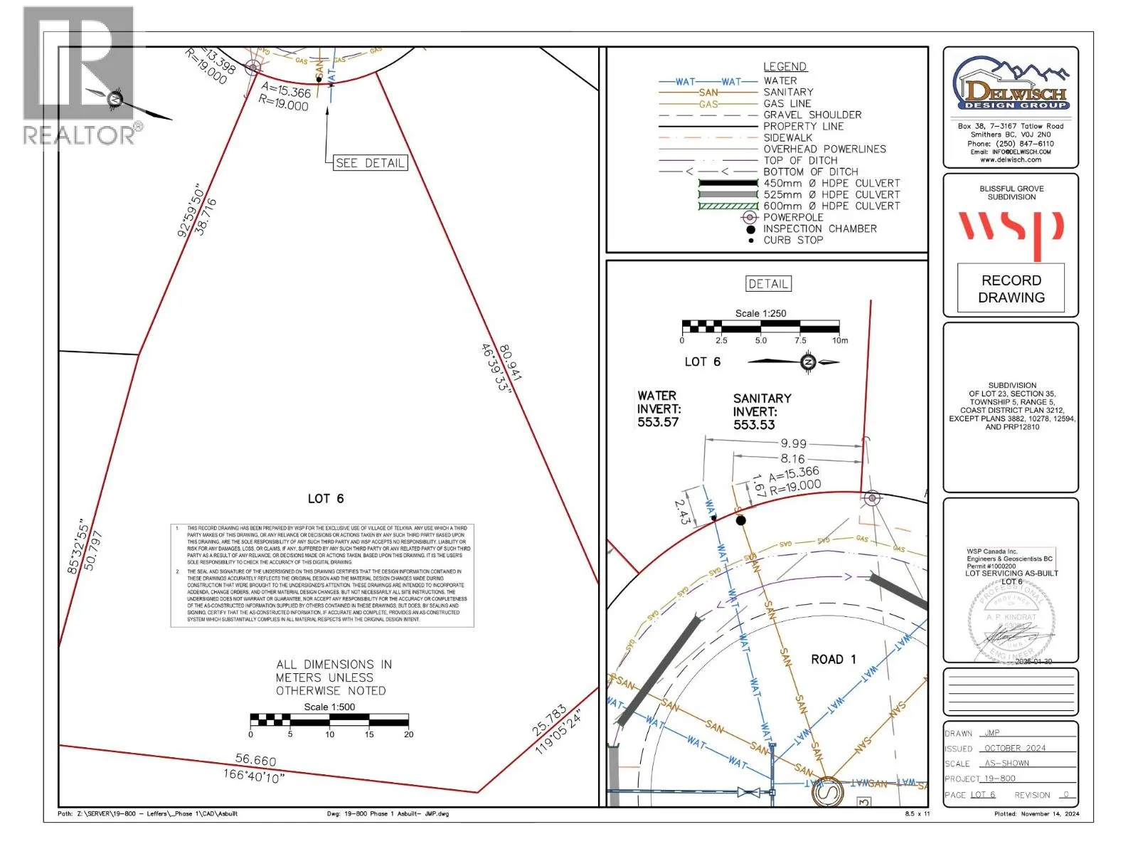 Welcome to Blissful Grove Lot 6, the Village of Telkwaâs newest development. Phase 1 offers a rare opportunity to build in a scenic, park-like setting with expansive mountain and valley views and excellent sun exposure. This large lot is over an acre (1.05 acres) with plenty of space for gardens, landscaping, and outdoor living. No strata and no building schemeâdesign freedom within R1 Village of Telkwa bylaws. Located minutes from Tyhee Lake, walking trails, and village amenities. Services connected and ready for development. Secure your place in this beautiful new community. (id:27476)