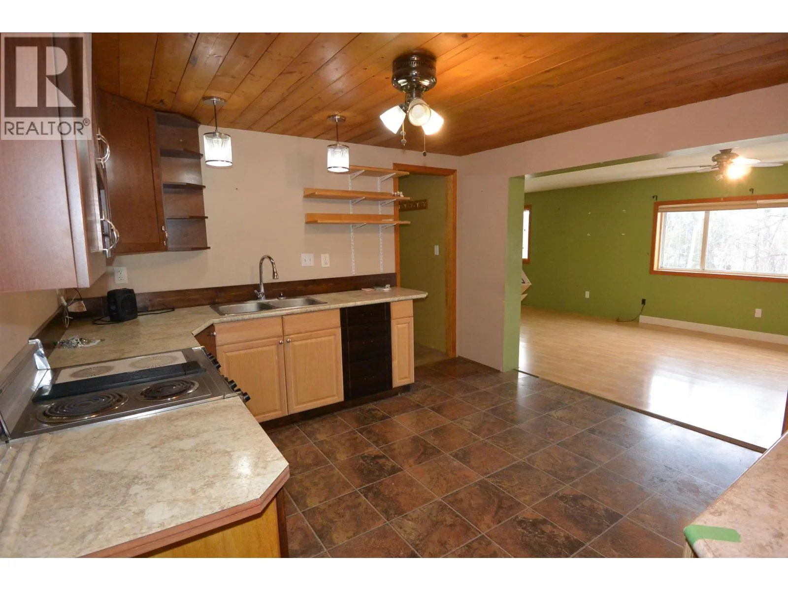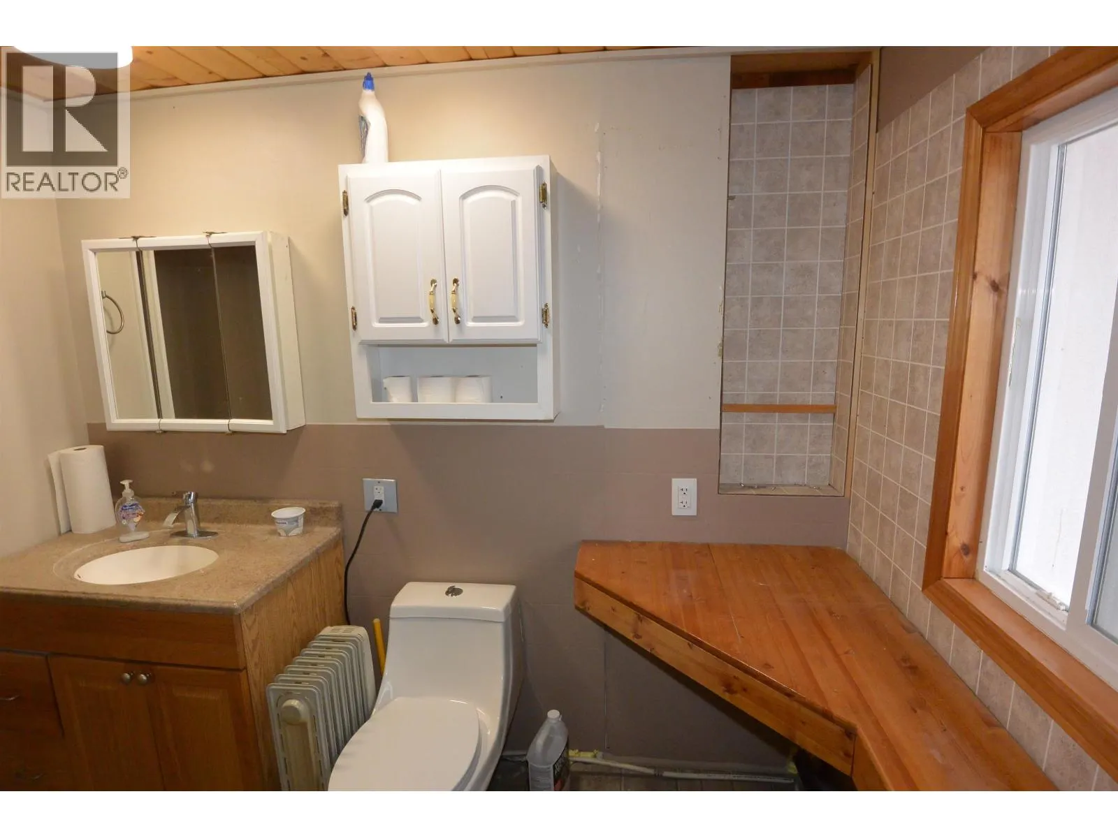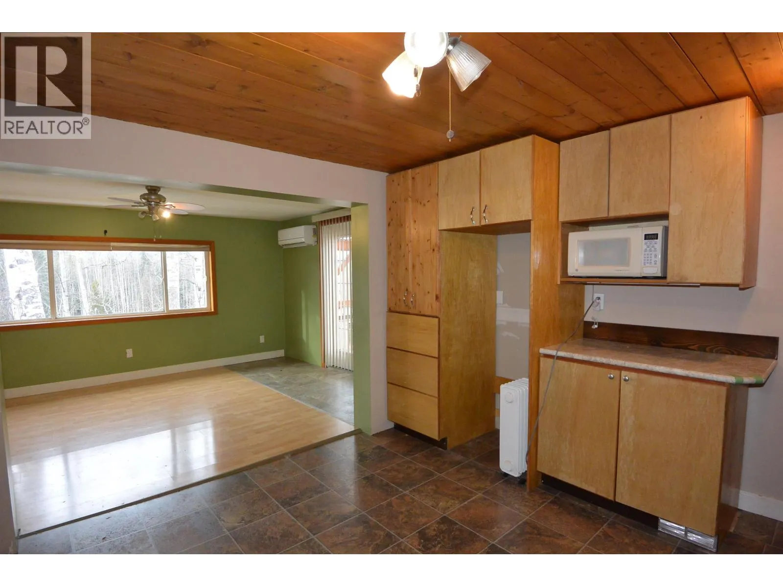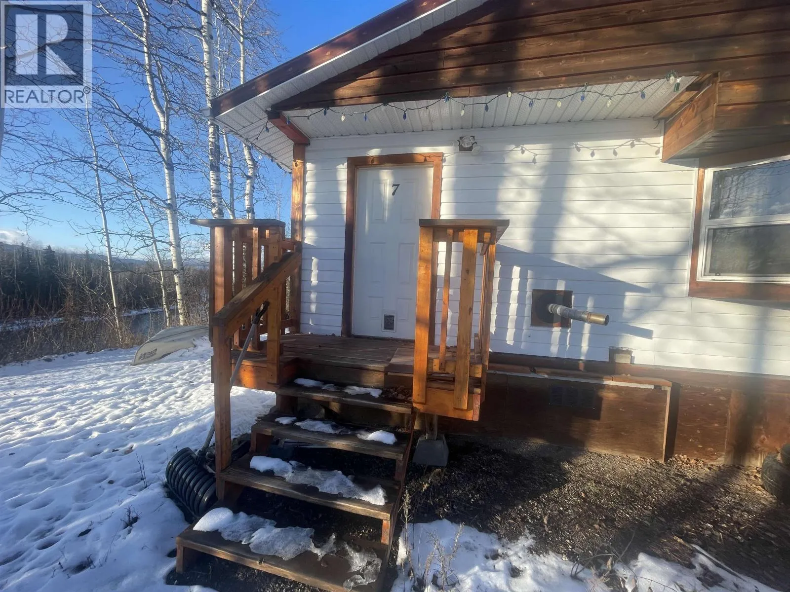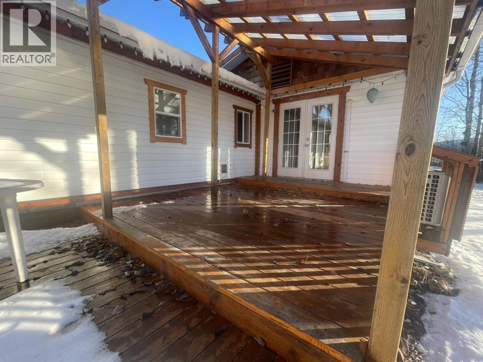 Affordable 2 bedroom and den mobile in quiet 55+ park. Located along the Bulkley River with mountain/river views and a large yard. The exterior has been more recently renovated and features a huge sundeck (half covered, half open) and a 12 x 16 shed with attached lean-to storage. Inside you'll find good sized rooms that are nice and bright. The interior is in need of some updates. Features mini-split heat pump (air conditioning in summer), a pellet stove plus a forced air furnace. Not outside pets permitted. (id:27476)
