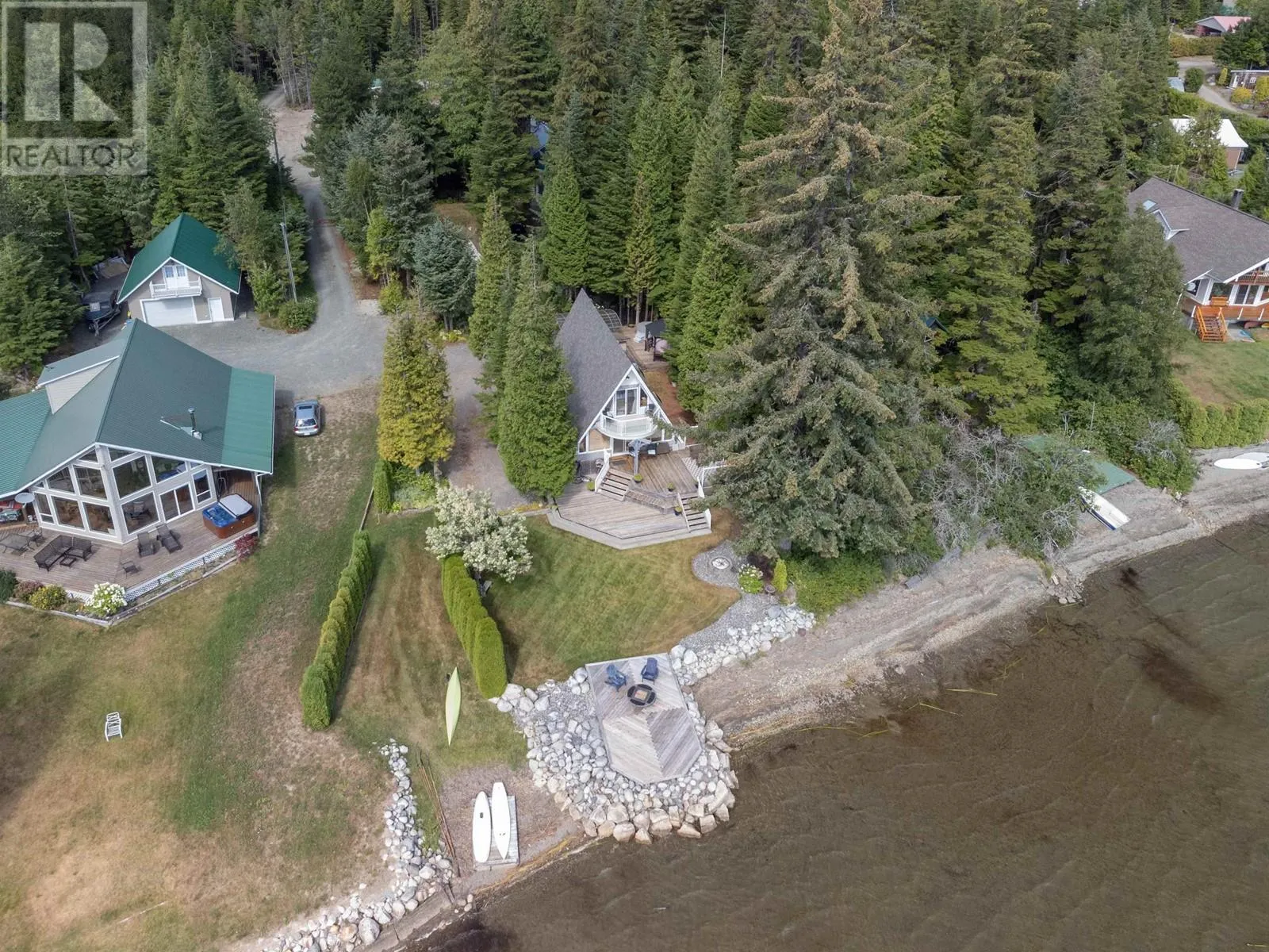 Rare lakefront investment or getaway! This 2+ 1 bed, 1 bath cottage plus 2 bed, 1 bath carriage home and shop sits on 1 + acre on Lakelse Lake. Enjoy income potential or host guests with multiple living spaces. The cottage offers cozy charm, while the outdoor area is built for relaxation - sundecks, hot tub, patio, and firepit. Shop and sea can storage add function for hobbies or business. Property landscaped beautifully with garden beds, grass, and cedar shrubs. Extra land across the road is great for extra RV's or more development. Prime location on Lakeside Drive with approximately 86 ft of lake frontage and direct beach access - an ideal year-round retreat! (id:27476)