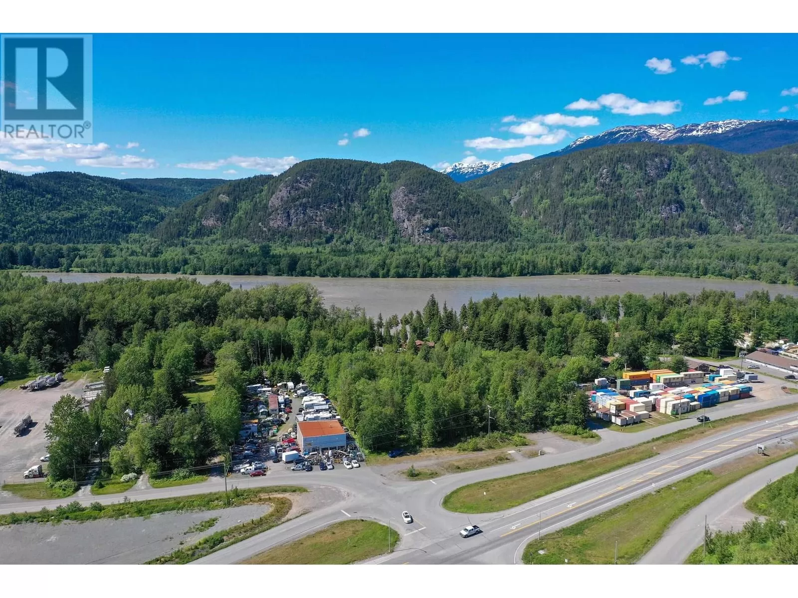 Prime Riverfront Commercial & Residential Acreage! Seize this rare 2.14-acre opportunity on Highway 16 in Terrace-Thornhill, only 58 km from Kitimat. This property offers significant development potential. The commercial section (C3 zoning) is perfect for a drive-thru restaurant or other ventures. With direct highway access, it's ideal for large trucks and passing traffic. Formerly a VW dealership, its value is in the land, strategically located near industrial businesses and hotels. Enjoy the residential portion's (approx. 1 acre) stunning Skeena River access. Imagine a live/work space or future residential development. Highway 16 is a vital economic link to Prince Rupert's port, enhancing this property's long-term investment value. Don't miss this versatile parcel. See MLS# C8070004 (id:27476)