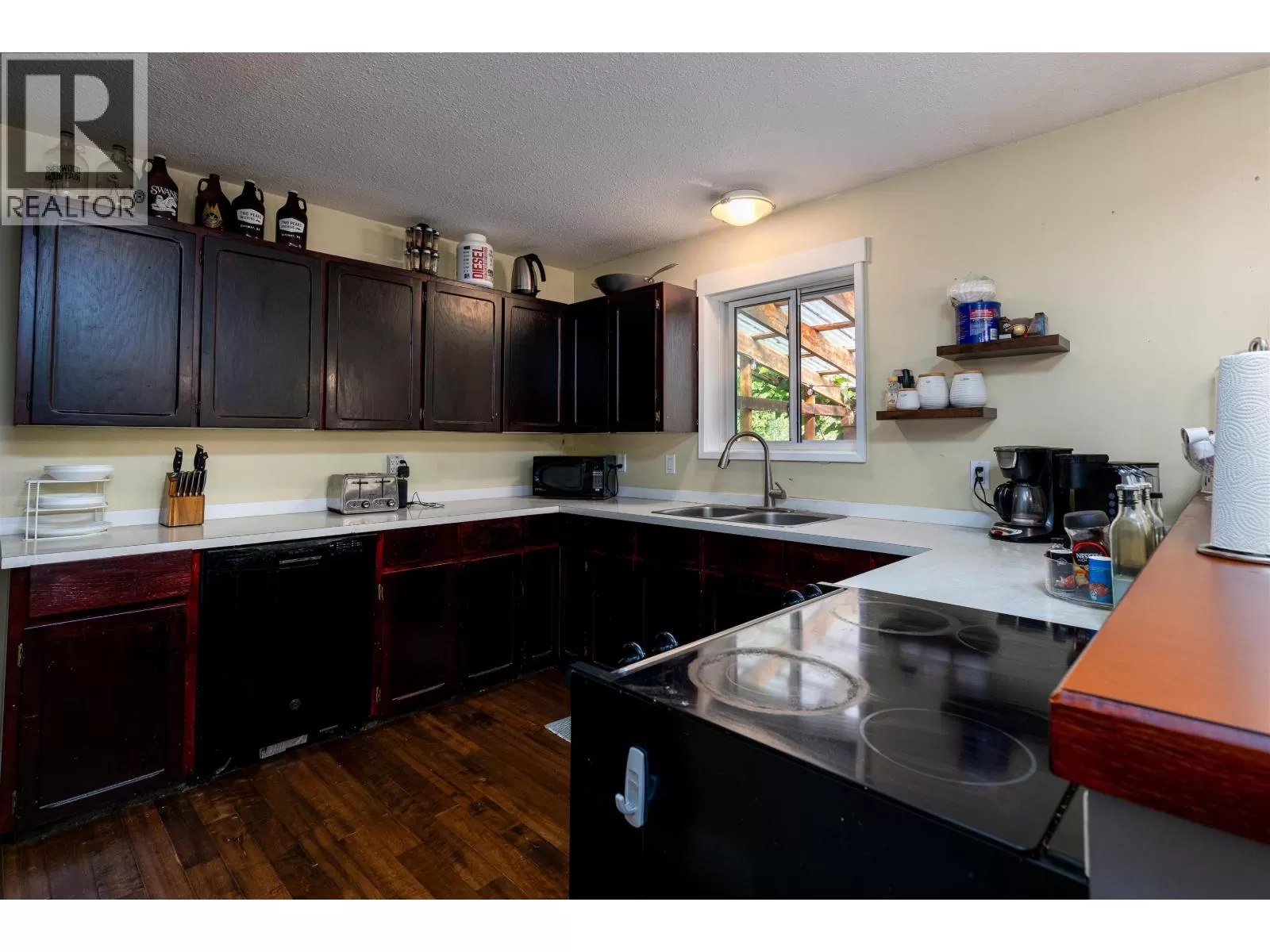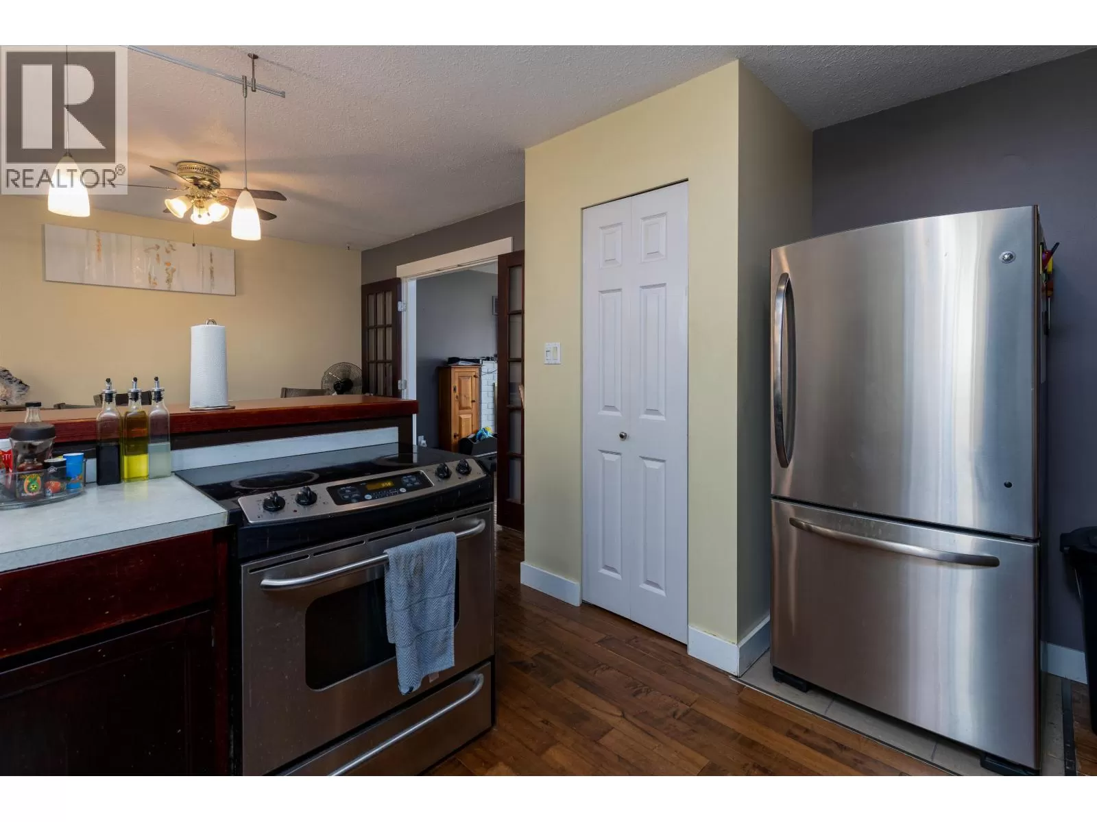 * PREC - Personal Real Estate Corporation. This 4-bdrm 2 bath home is located in the Horseshoe backing onto Christy Park soccer fields. The split-level entrance allows you to either go upstairs to the main living area featuring the living rm, kitchen with plenty of cabinets and an eating area with patio doors leading out to the lg covered deck. Down the hall you will find a full bath, primary bdrm & another bdrm. Downstairs features a separate entrance through the garage. The basement currently has an in-law suite or used as a summer kitchen. The laundry area can be found here as well. 2 more bdrms & another bath finish off the basement. Plenty of updates to this home over the years including hardwood flooring upstairs, newer roof & furnace. Outside you will find a lg greenhouse, fruit trees and shed. (id:27476)