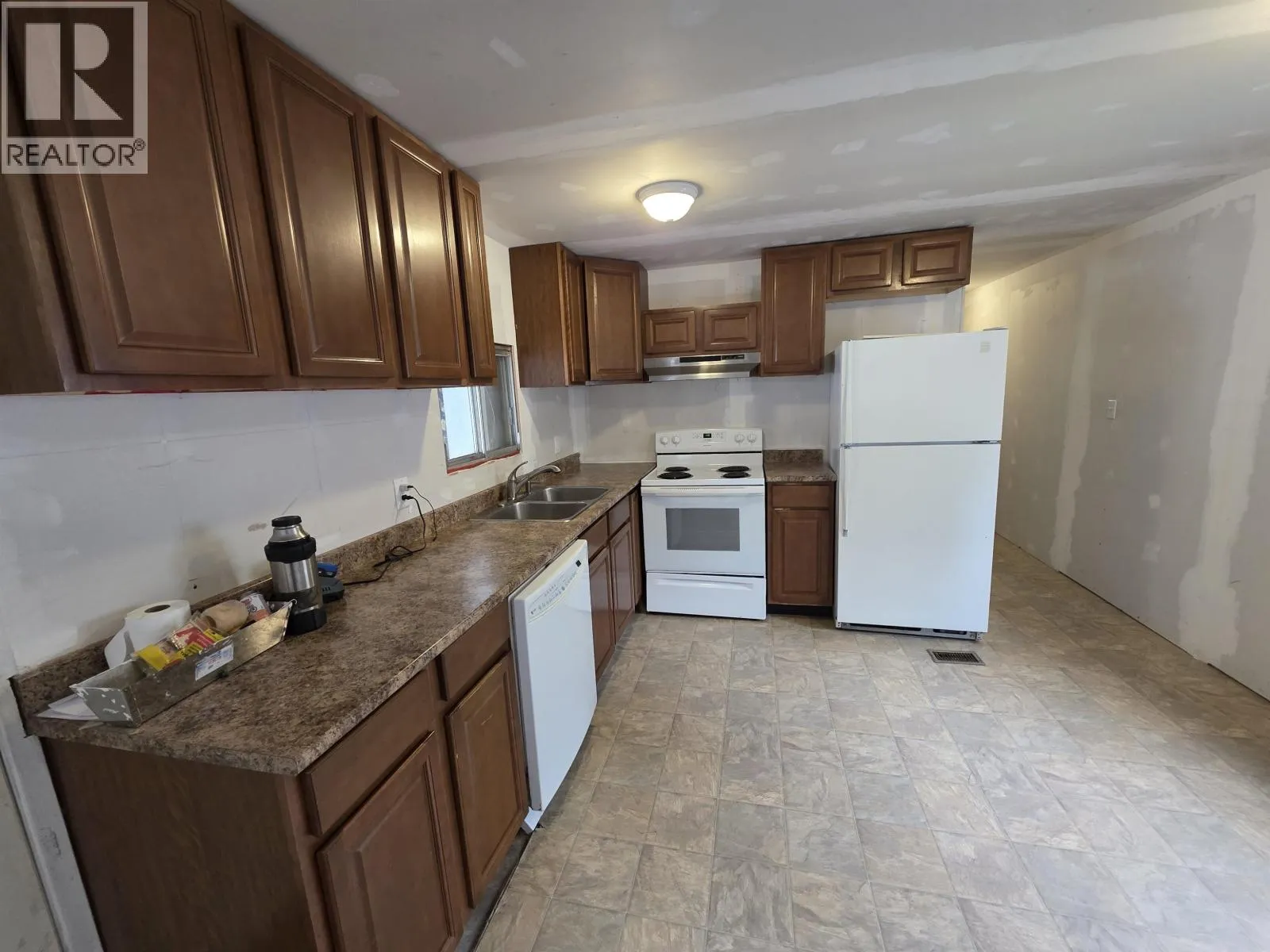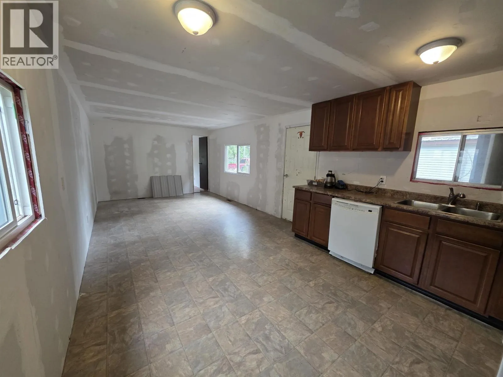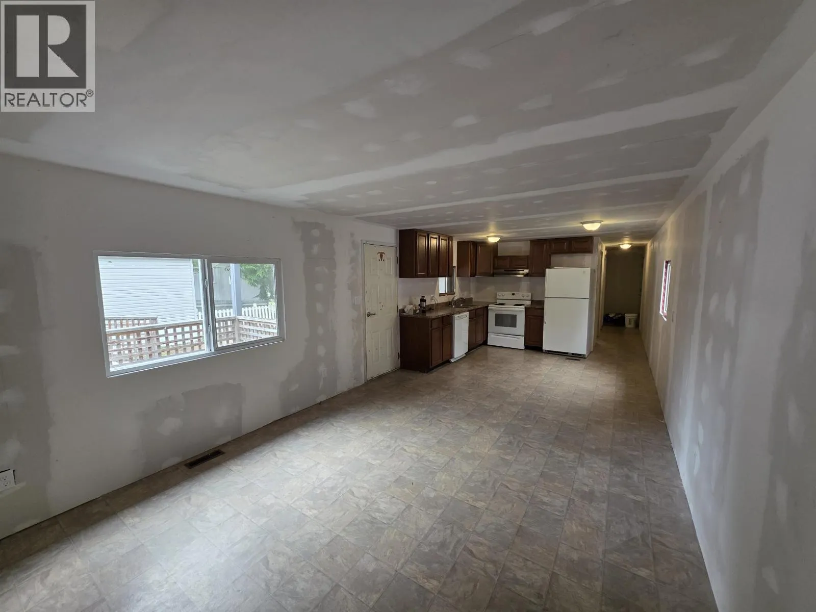 Very affordable 2 bedroom home located in Timberland Trailer Park. This home features an updated exterior package with new metal skirting, vinyl siding, windows, and metal roofing. Inside the home has been drywalled, mudded, and taped ready for primer and paint. There's a newer kitchen with a nice open floorplan to the livingroom. Finish off the primary bedroom renovations and update the bathroom to your liking and you'll have a solid home for years to come! Home recently had a full electrical inspection for added piece of mind. Outside there's a huge sundeck with a storage room and a fenced yard. This home is priced to sell! This is a great option if you are looking to get into the market or downsize! (id:27476)