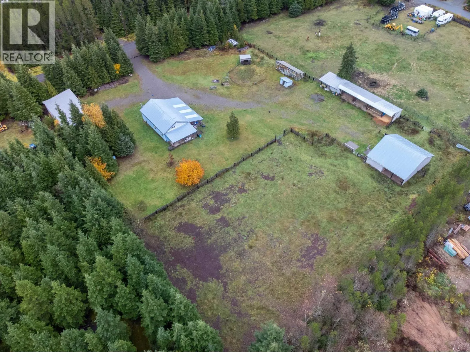 This is a fantastic opportunity to own nearly 3 acres in the centre of JackPine Flats, a 10 minute drive from Terrace. This stunning property has a well-built horse barn with loft, a very large enclosed shop with mechanics pit, outdoor RV storage in the pole barn, a large enclosed greenhouse and perimeter fencing for animals and pets. The views of the mountains from this well-situated and mostly cleared property are absolutely stunning. There's the opportunity to build your own dream residence on the property while being able to operate a small farm or maintain your private acreage. (id:27476)