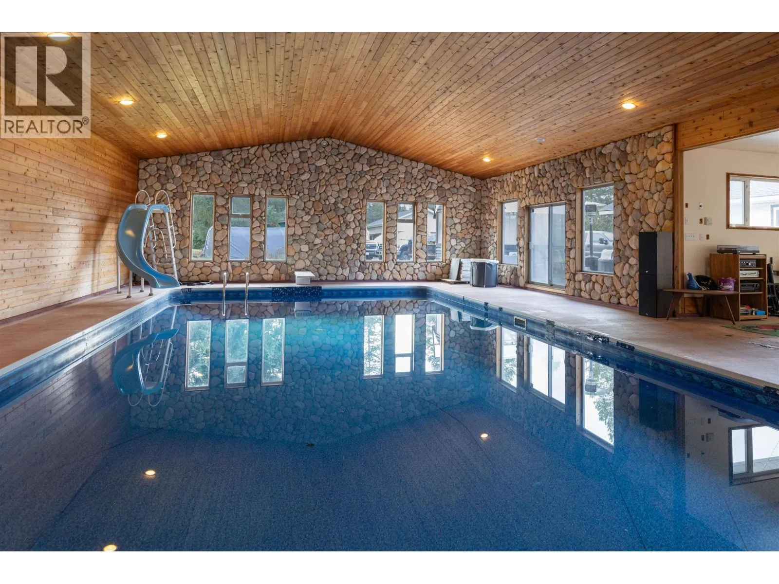 First time on the market! Custom 3-bed, 2.5-bath rancher on 5 private acres on the bench. Enjoy an open-concept kitchen and dining area with cozy wood stove, plus a spacious living room with bay windows and vaulted ceilings. Down the hall are 3 bedrooms, including a primary with updated 3-pc ensuite and double walk-in closets. Attached is a rare pool house with massive 40x20 indoor pool. Outside features a 30x22 shop, storage shed, greenhouse, sundeck with firepit, concrete patio, and multiple paddocks with riding arena. A must-see property! Important to note that property is not currently zoned for horses. (id:27476)