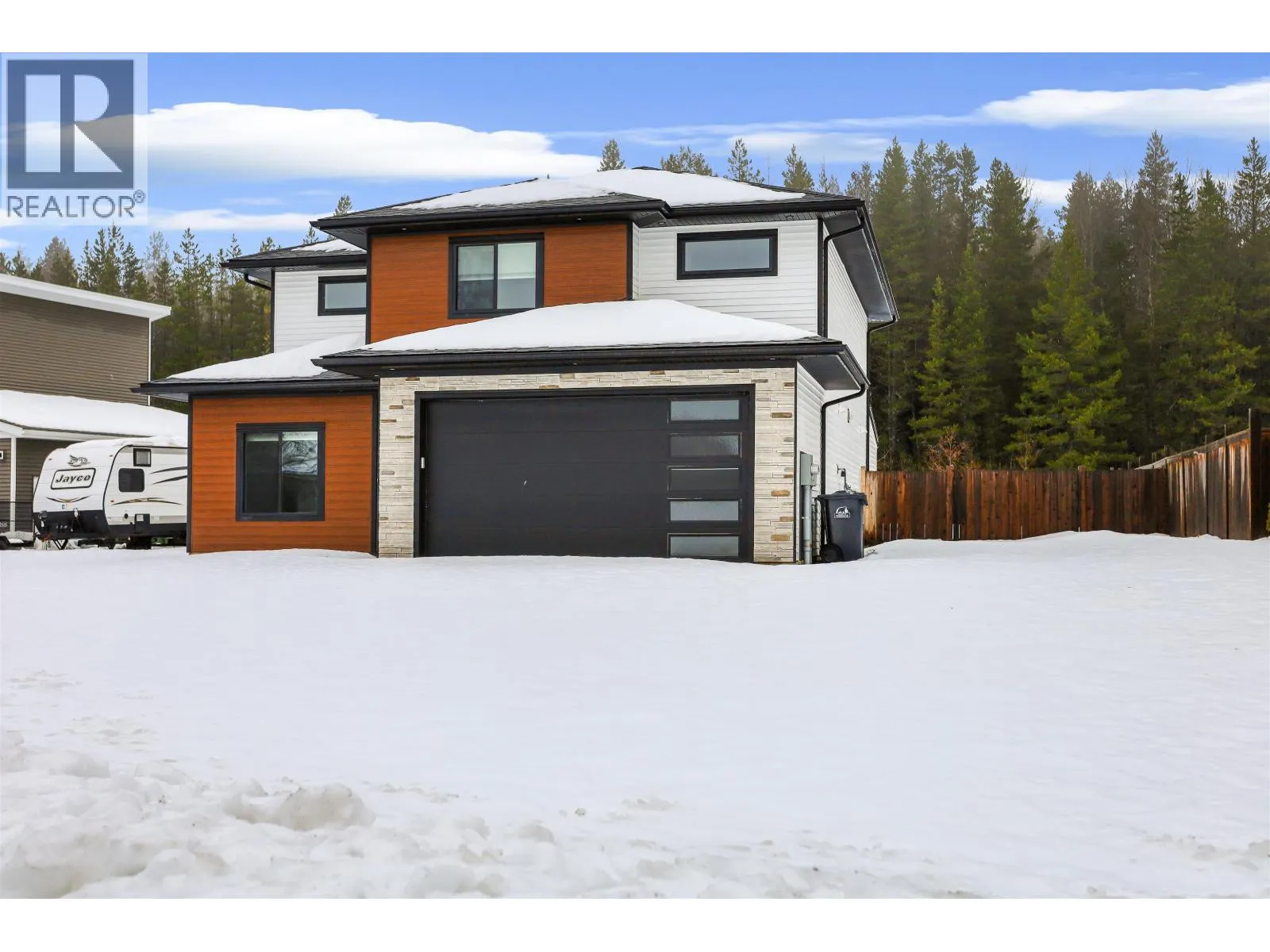 Newly built modern two-storey home in a sought-after upper bench location near Coast Mountain College and Ecole Mountainview. The main floor features an open-concept kitchen with stainless steel appliances, quartz countertops, and a built-in dining room bar, flowing into a bright great room. A main-level bedroom or office, full bathroom, and mudroom with ample storage and double garage access add flexibility. Upstairs offers a spacious primary suite with walk-in closet and spa like ensuite complete with soaker tub and double vanity. Two additional bedrooms, a full bathroom, and a versatile bonus room top it all off. Fully fenced yard with a large covered deck perfect for entertaining make this home a low maintenance and must-see property! (id:27476)