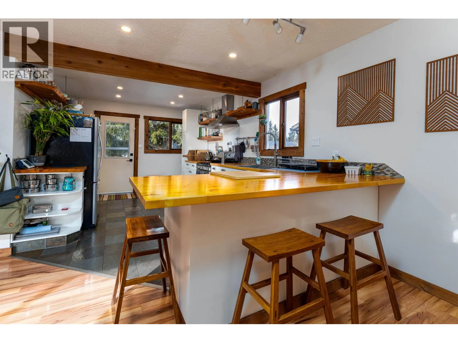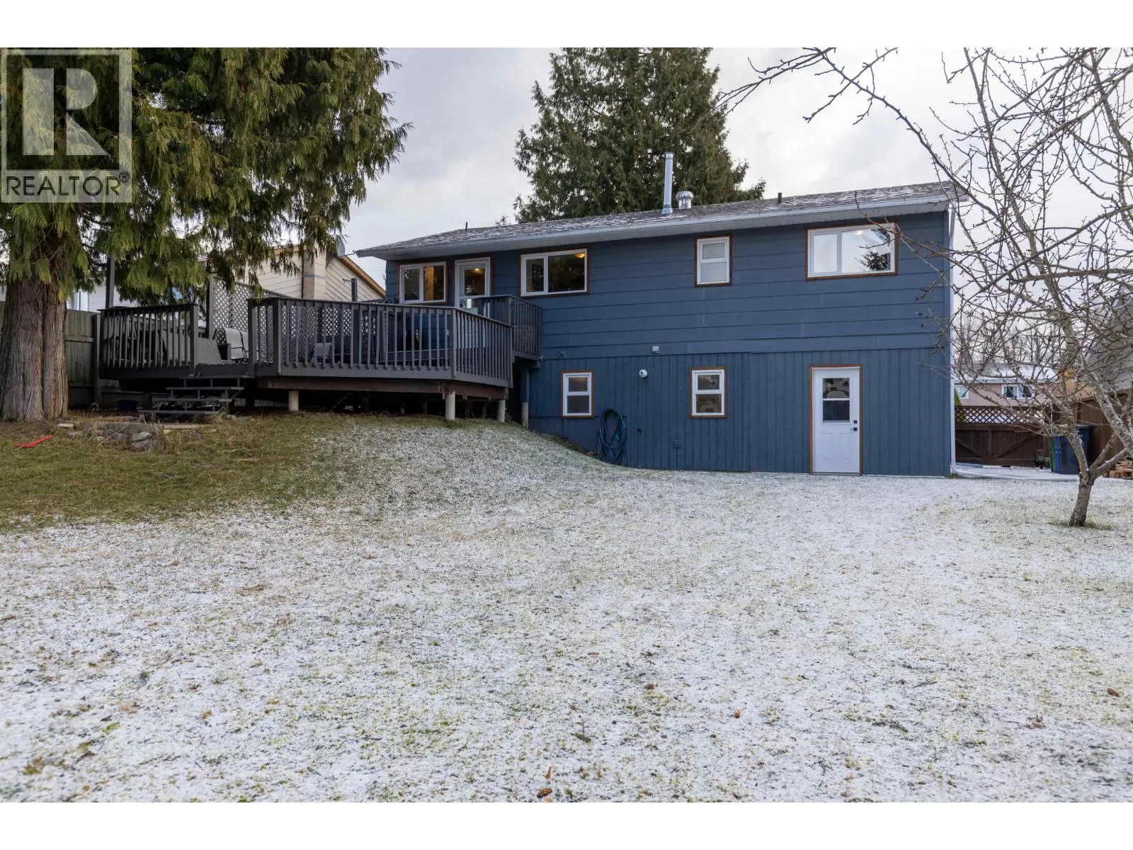 Well-maintained, 4-bedroom, 2-bathroom home on a quiet, no-through street on Terrace's southside. Warm wood accents throughout add charm and character. The main floor features a spacious mudroom, rec room with pellet stove, bedroom, 3-piece bathroom, laundry, and large storage area perfect for seasonal gear or a home gym. Upstairs offers a beautifully designed kitchen with breakfast bar/prep space and access to a two-tier sundeck-ideal for BBQs. The kitchen flows into the dining and living room with cozy wood fireplace, great for entertaining. Three additional bedrooms and a full bath complete the upper level. Fully fenced backyard with raised garden beds, fruit trees, and a storage shed-perfect for kids and pets. (id:27476)