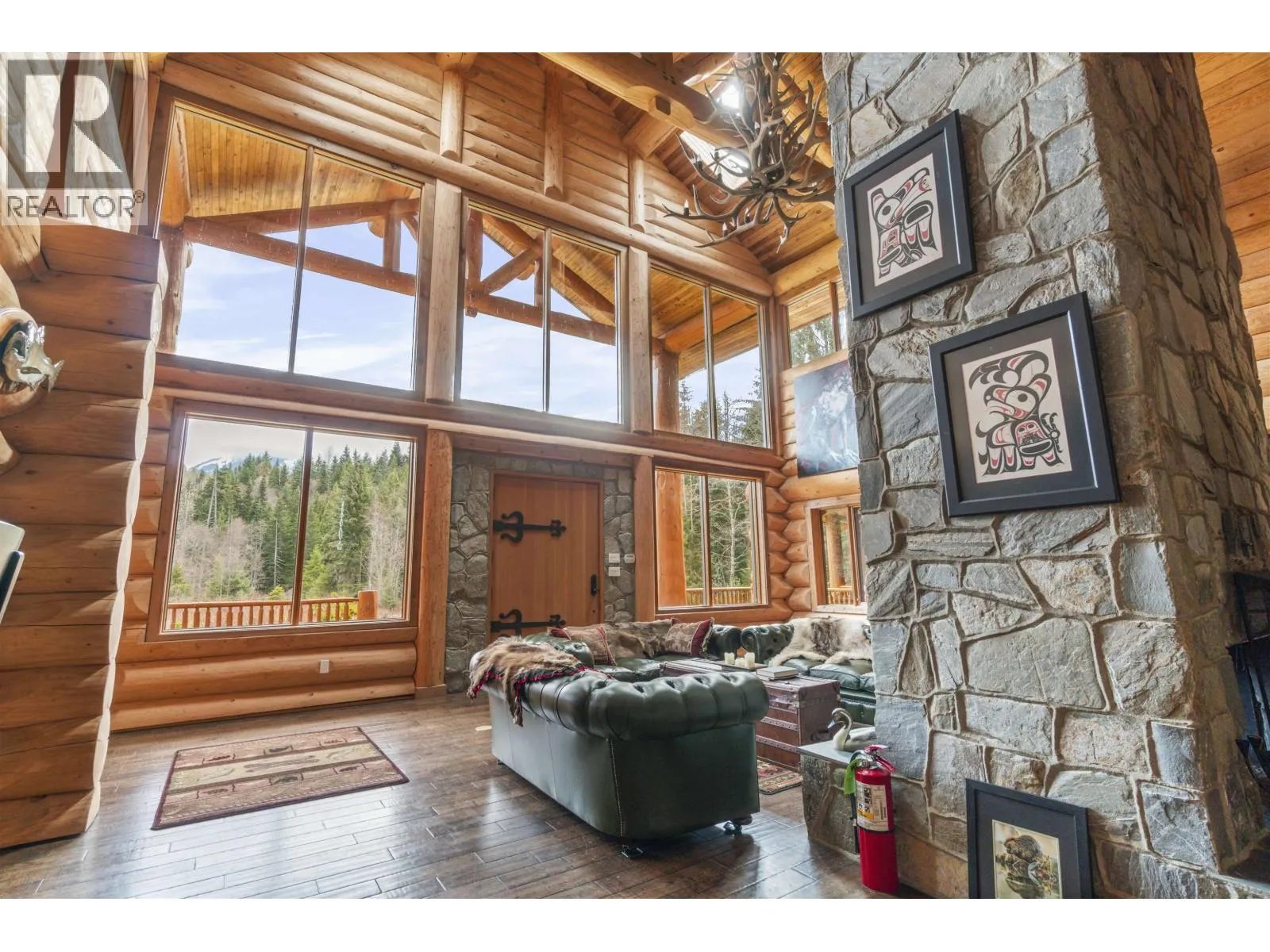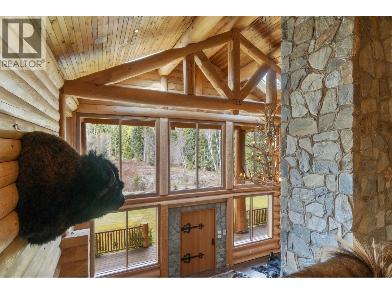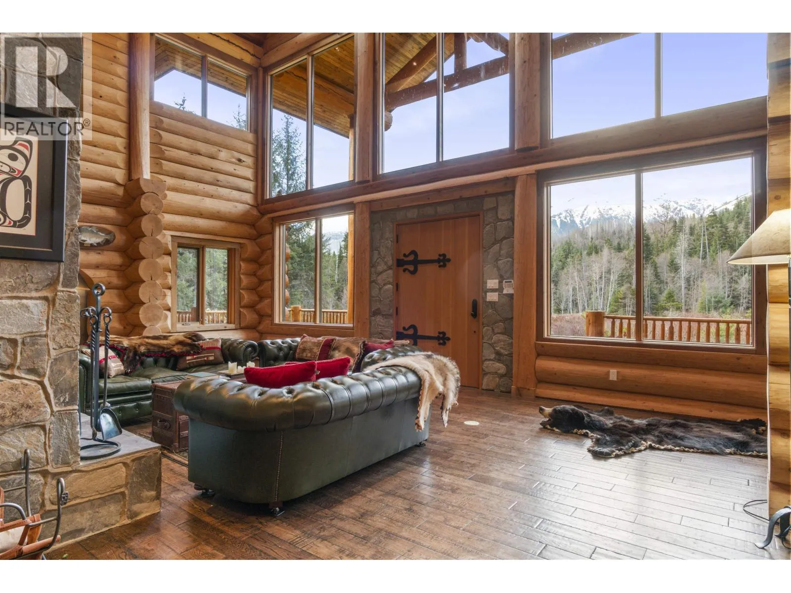 Kalum River Estates presents an internationally eligible 101-acre riverfront sanctuary on the famed Kitsumkalum River, within British Columbia's legendary Skeena watershed, globally regarded for salmon and steelhead fishing. The 6,350+ sq ft lodge offers 7 bedrooms and 7 baths, including a private guest cabin, purposefully designed for refined wilderness living and executive hosting. Vaulted ceilings, a statement stone fireplace, and a chef's kitchen define the interior. A private boat launch provides immediate access to world-class angling, while heli-skiing and big-game hunting surround the estate. Fully turnkey with curated furnishings, equipment, and infrastructure, including well, septic, generator, and Starlink. (id:27476)