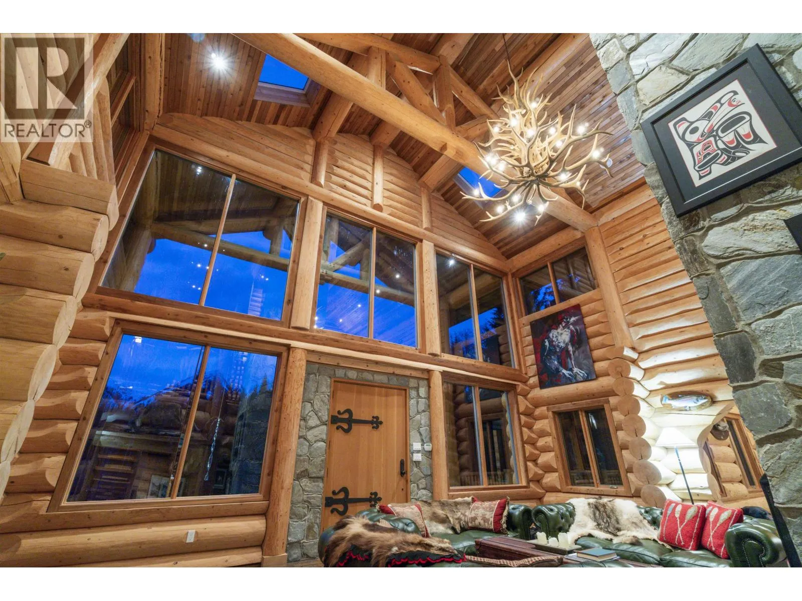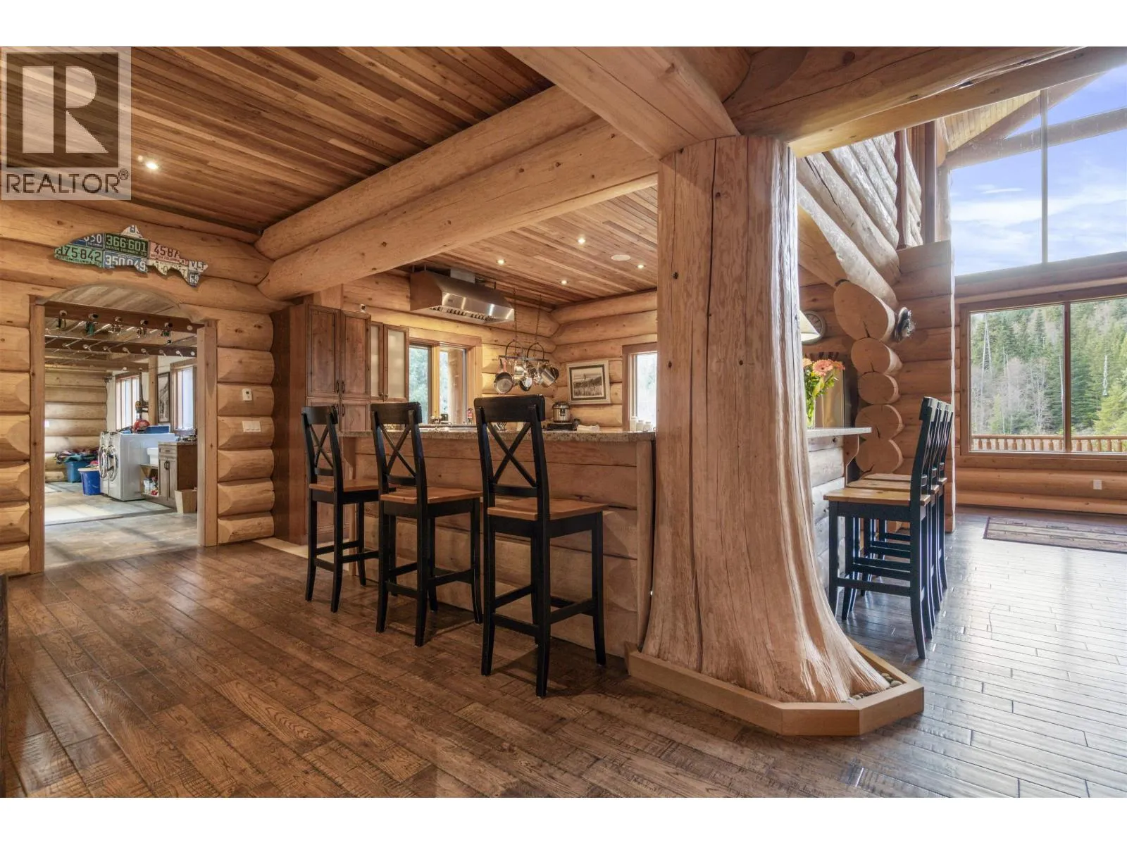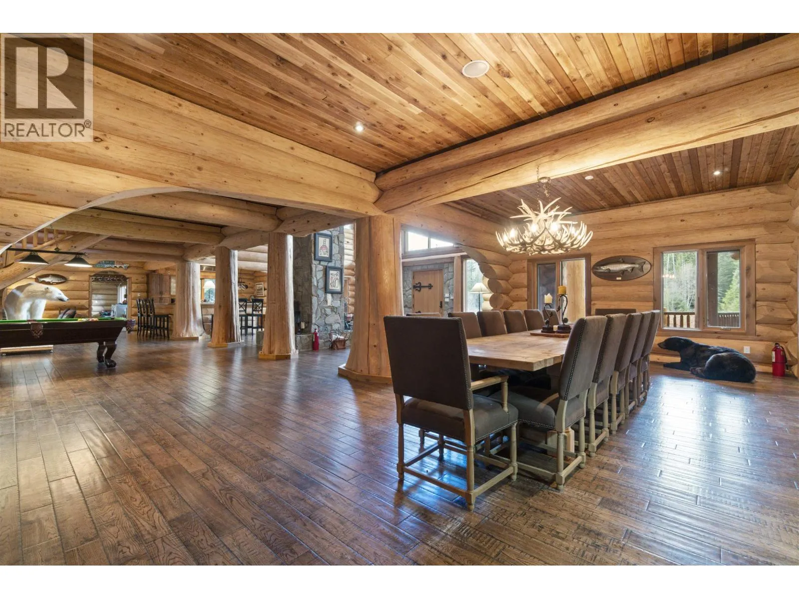 Kalum River Estates presents an internationally eligible 101-acre riverfront sanctuary on the famed Kitsumkalum River, within British Columbia's legendary Skeena watershed, globally regarded for salmon and steelhead fishing. The 6,350+ sq ft lodge offers 7 bedrooms and 7 baths, including a private guest cabin, purposefully designed for refined wilderness living and executive hosting. Vaulted ceilings, a statement stone fireplace, and a chef's kitchen define the interior. A private boat launch provides immediate access to world-class angling, while heli-skiing and big-game hunting surround the estate. Fully turnkey with curated furnishings, equipment, and infrastructure, including well, septic, generator, and Starlink. (id:27476)