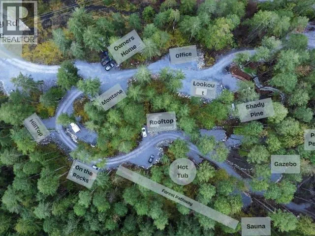 Nestled on a stunning 10.279 acre property adorned with majestic second growth trees & moss covered cliffs, Rocky Valley Resort offers a one of a kind get a way destination on beautiful Texada Island. 10 fully appointed resort cottages including 3 spacious 2-bedroom homes each with private decks & BBQ facilities. Additional 2 A-frame cottages, 2 tiny homes, & a charming Treehouse home. Enjoy a cliffside movie theatre in the forest with seating for 20, 12 person sauna, cedar hot tub, and an event gazebo with a fully equipped outdoor kitchen. Our Glamping Valley features 2 cozy A-frame cabins & room for expansion. Two serviced lots are construction ready, with 5 more cleared for future development. All unit have 50 amps, septic, water from the Van Anda district. 2 blocks from Van Anda Boat Club & 8 km from the ferry, with a separate 1.5 acre lot ready for owner's residence or more rentals-Rocky Valley Resort blends nature, comfort and expansion opportunity. (id:27476)