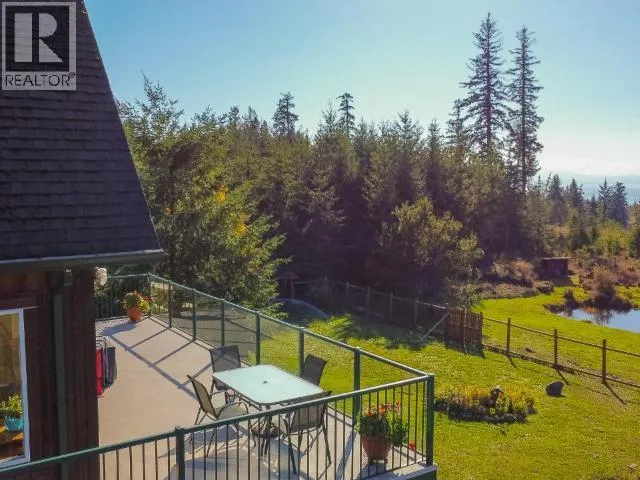 Stunning home with fantastic OCEAN views over Georgia Strait to Vancouver Island on Texada Island. Serenity and peace blanket this 22 acre gem that offers a 14 year old 3000+ square foot, 3 level home. Inside it offers a 640sf primary bedroom with a sitting area, walk in closet and a high vaulted ceiling. On the main enjoy two bedrooms, a well laid out kitchen and a huge living room with 18' ceilings and wood burning stove. The basement contains a bright large family room, second wood stove, walk out to covered patio and two partially finished storeroom/workshops. Once captivated by the inside, walk out to the 22 acre grounds with two outbuildings, one finished, the other 70% done. Neither are visible from the main home. There is a pond that retains water year round, and an extensive lavender harvest, beautifully fully fenced gardens with fruit trees and more. This estate must be seen to be fully appreciate it's uniqueness. (id:27476)