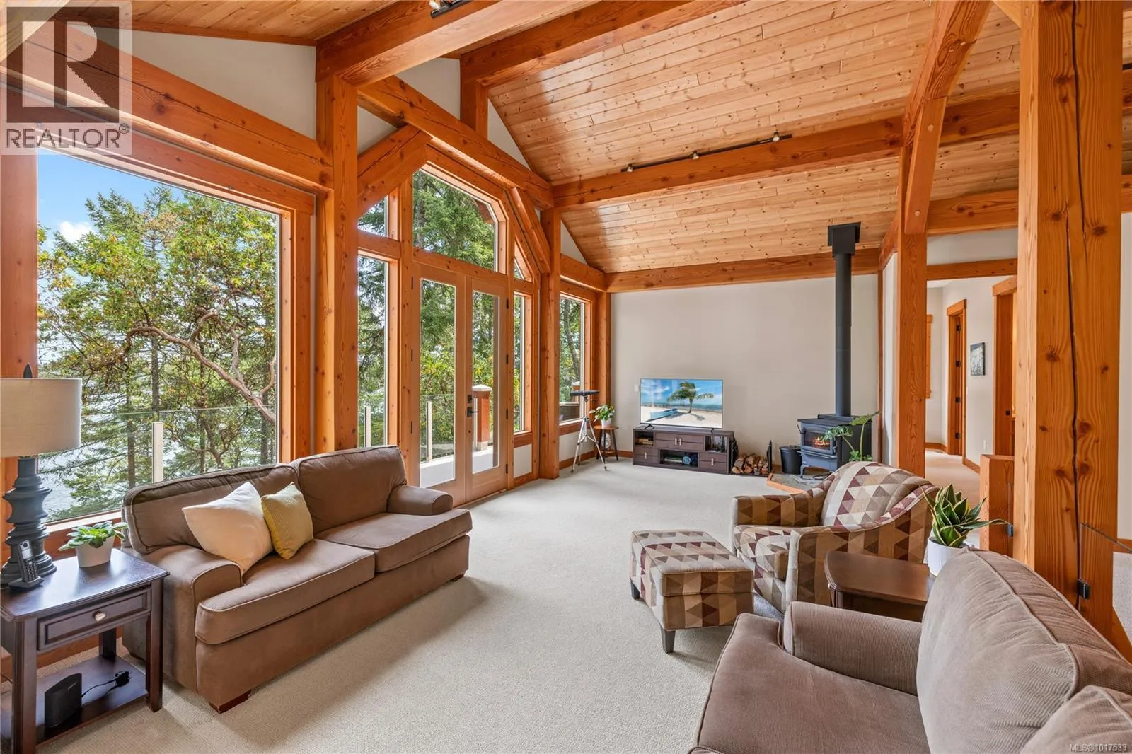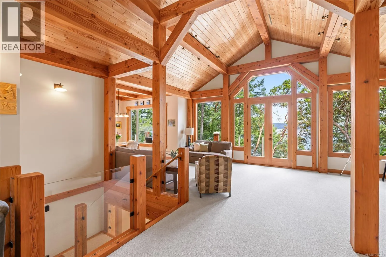Welcome to your dream waterfront retreat at 144 Sunrise Point Road on beautiful Thetis Island. Set on 2.38 private, park-like acres with stunning ocean views, this one of a kind custom timber-frame home offers the perfect blend of comfort and coastal charm. The spacious layout includes 4 bedrooms (primary on the main level), 3 bathrooms, and a large rec room-ideal for family, guests, or creative space. Enjoy indoor-outdoor living with expansive upper and lower decks, perfect for relaxing, entertaining, or wildlife watching. The detached workshop/garage provides excellent storage or space for a home business or studio. With direct waterfront access and your very own legal dock, you can launch a kayak, explore beaches, or simply enjoy the peaceful island lifestyle. Thetis Island offers regular ferry service, a strong community spirit, and incredible natural beauty. Don't miss this rare opportunity to own this stunning oceanfront property-book your private showing today! (id:27476)