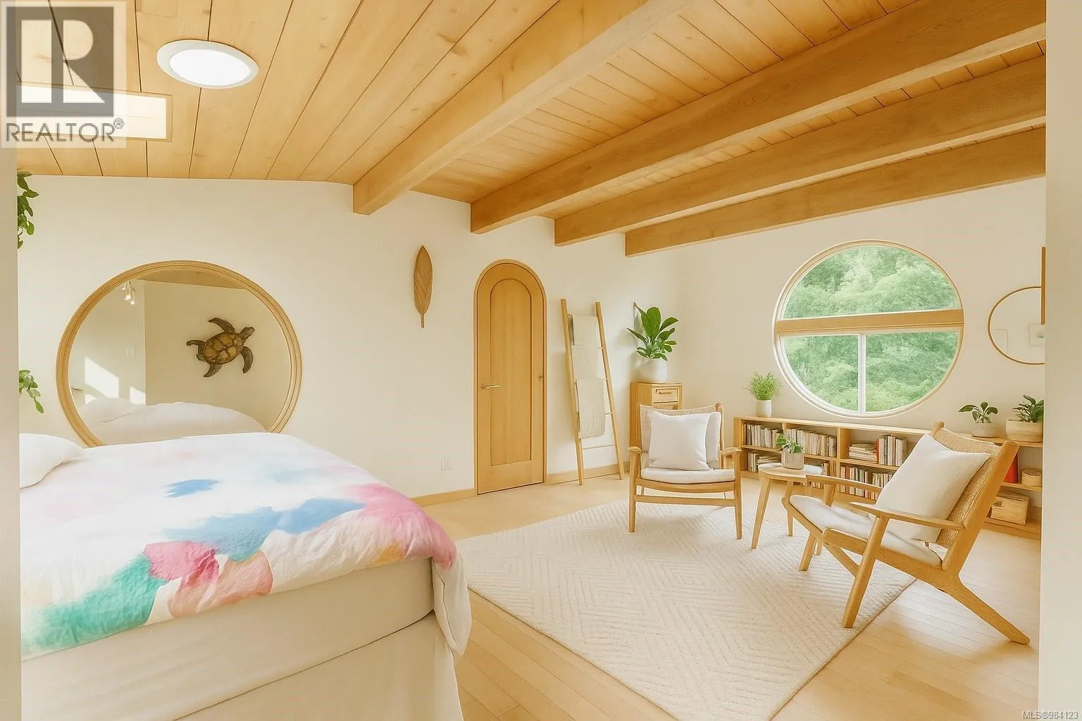 The Treehouse, where comfort and style merge. This 5-bed, 5-bath home features 2 suites+private studio, ideal for multigenerational living or an investment property. Thoughtfully designed; rooms flooded w/natural light highlighting unique design elements such as a 16'vaulted ceiling, custom woodwork, and contemporary finishes that include arched, hand-crafted, solid cedar interior doors, impressive old-growth cedar beams and a superb dovetail joinery staircase to a catwalk w/access to the oversized primary bedrm offering skylights and a hidden rooftop deck. The main suite also offers dining/kitchen/livingrm, laundry, access to the south-facing deck + two more bedrms, both w/ensuites. A newly updated second suite offers a private entry, 2 additional bedrms, bathrm, kitchen, cozy livingrm and laundry. Other features include a low-maintenance yard, plenty of parking, and prime location. Family home or an investment, this property offers endless possibilities w/its flexible layout. (id:27476)