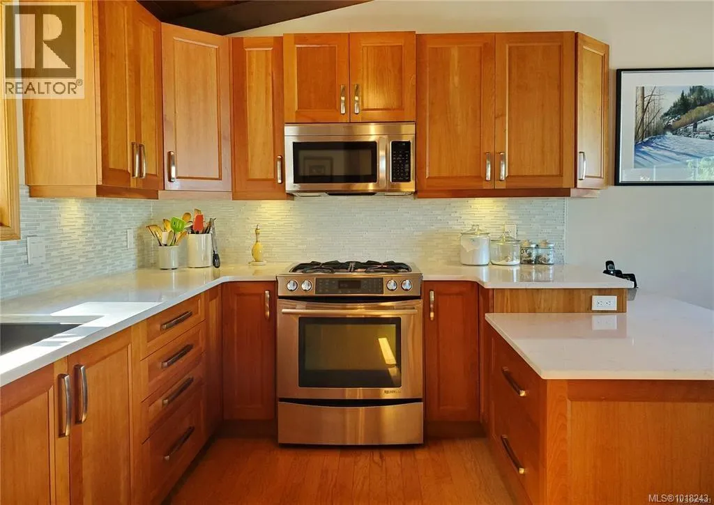 This meticulously maintained residence set on 1.02 acre of a no-through road offers rural peace & tranquility while still enjoying the convenience of local amenities. Untapped potential abound throughout the home and property. Build a secondary dwelling or convert the walkout basement into a private suite. Upstairs offers a bright main floor with 2 beds, 1 bath, kitchen, living, and dining rooms; downstairs 1 bed, bathrm, bonus room, laundry and a 450sqft rec room equipped with a fireplace. Double carport allows for RV/Boat Storage as well, a detached garage for dry storage. A greenhouse, garden beds, firepit, koi pond, and a vast array of plants & flowers to enjoy year-around. Brimming with comfort, in immaculate condition, and ready for your creative touches. Views of the Sound and Felice (Round) Island add splendor to this property. Recent renos include new flooring, paint, kitchen remodel and more. Privacy is paramount at this property on the edge of town. Available to view today (id:27476)