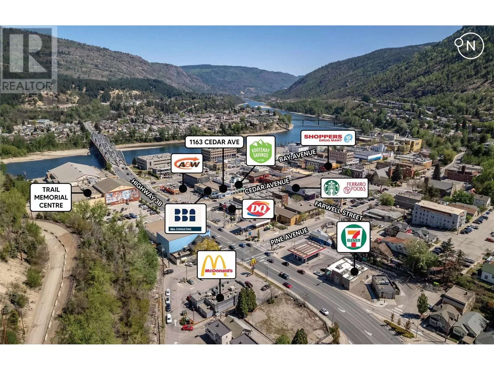 Available for sale is the Trail Daily Times Building, located at 1163 Cedar Avenue, in downtown Trail, BC. Occupied by the Trail Times (now Black Press Group Ltd.) for +50 years and Steps Dance Centre for +20 years, this iconic centrepiece sits between the Kootenay Savings Credit Union (KSCU) headquarters and the recently renovated Austin Engineering (BBA Consultants) building, and within a 1-minute walk from Ferraro Foods, Starbucks, Shoppers Drug Mart, A&W, Dairy Queen, McDonald's, and many other convenient retail, entertainment and service amenities offered in downtown Trail. The property is centrally located and prominently positioned along Cedar Avenue, with direct visibility from Highway 3B, occupying an irreplaceable location at the heart of Trailâs downtown core, supporting the property's long-term competitive positioning. Currently 100% leased, the Property comprises approximately 7,880 SF of rentable area across two floors, generating net income of +$53,083. Trail represents a growing regional trade area supported by one of the worldâs largest fully integrated zinc and lead smelting and refining complexes â owned and operated by Teck (TSX: TECK.B), with 2024 gross revenues of +$2B for Teckâs Trail Operations alone. Trail is located in the West Kootenay region of the BC Interior, which represents one of Canadaâs top four-season recreational tourism destinations, attracting visitors from all over North America. Download the brochure at the link below for more info. (id:27476)