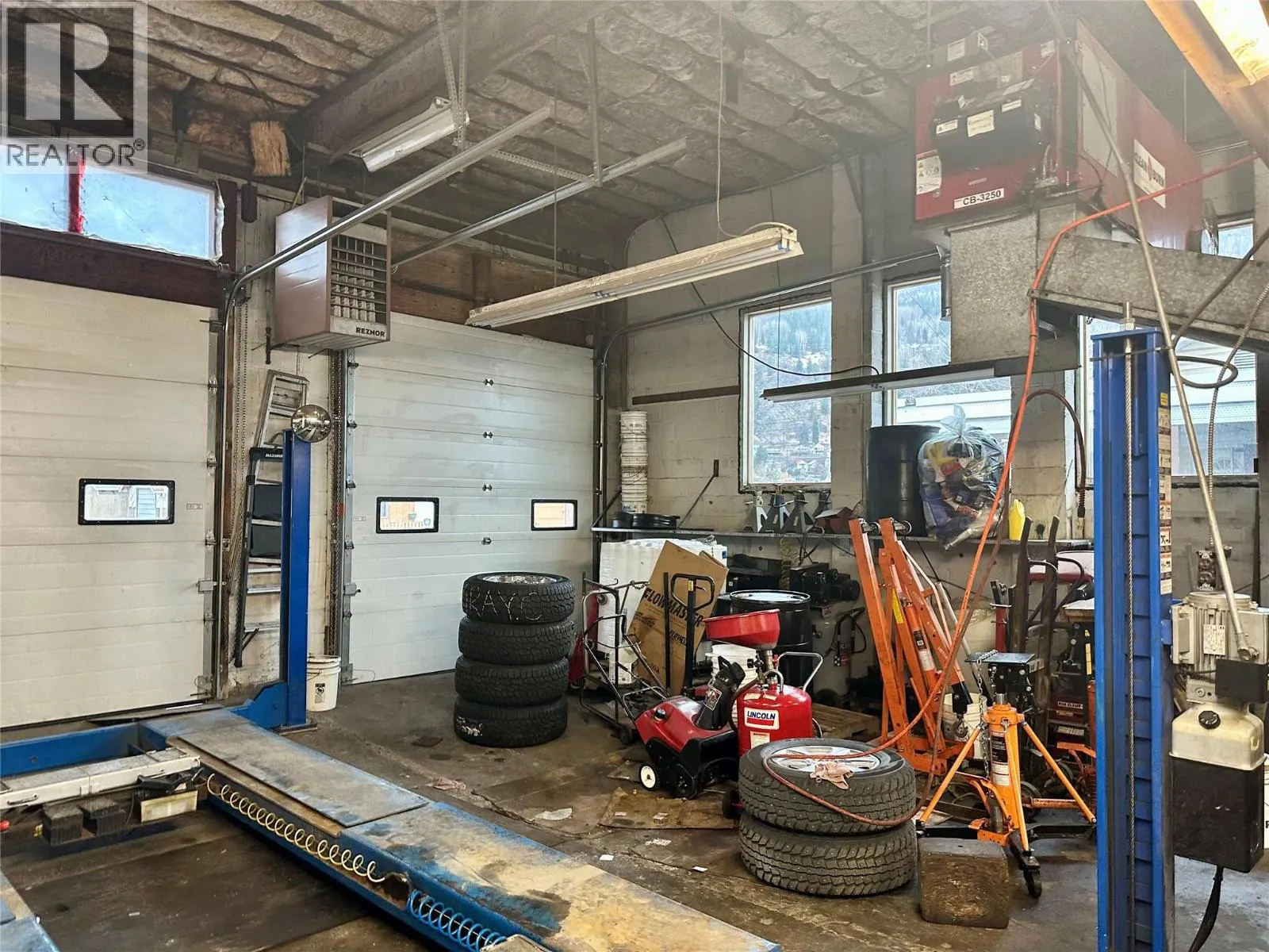 INVESTOR ALERT! Five year lease in place with good cap rate. 3300 square foot building with central Trail location. Large automotive shop area with high ceilings, 5 bay /overhead doors (12 feet tall), 200 AMP 3-phase electrical, 3 lifts, including an alignment lift. Main floor has a reception/waiting room area and one washroom. Staircases lead to 2 separate second story levels that provide additional storage. Ample parking on site. C2 Zoning. (id:27476)