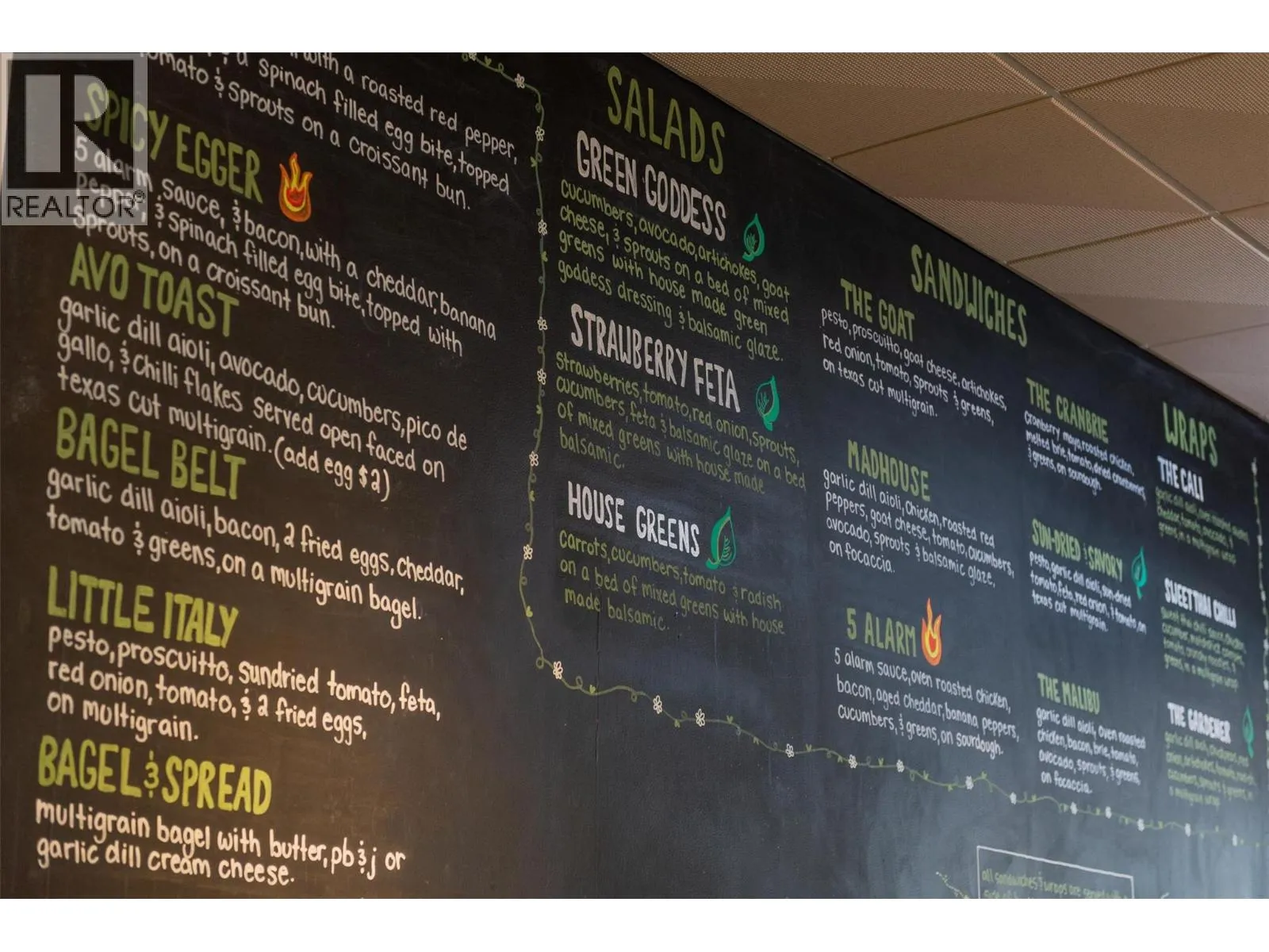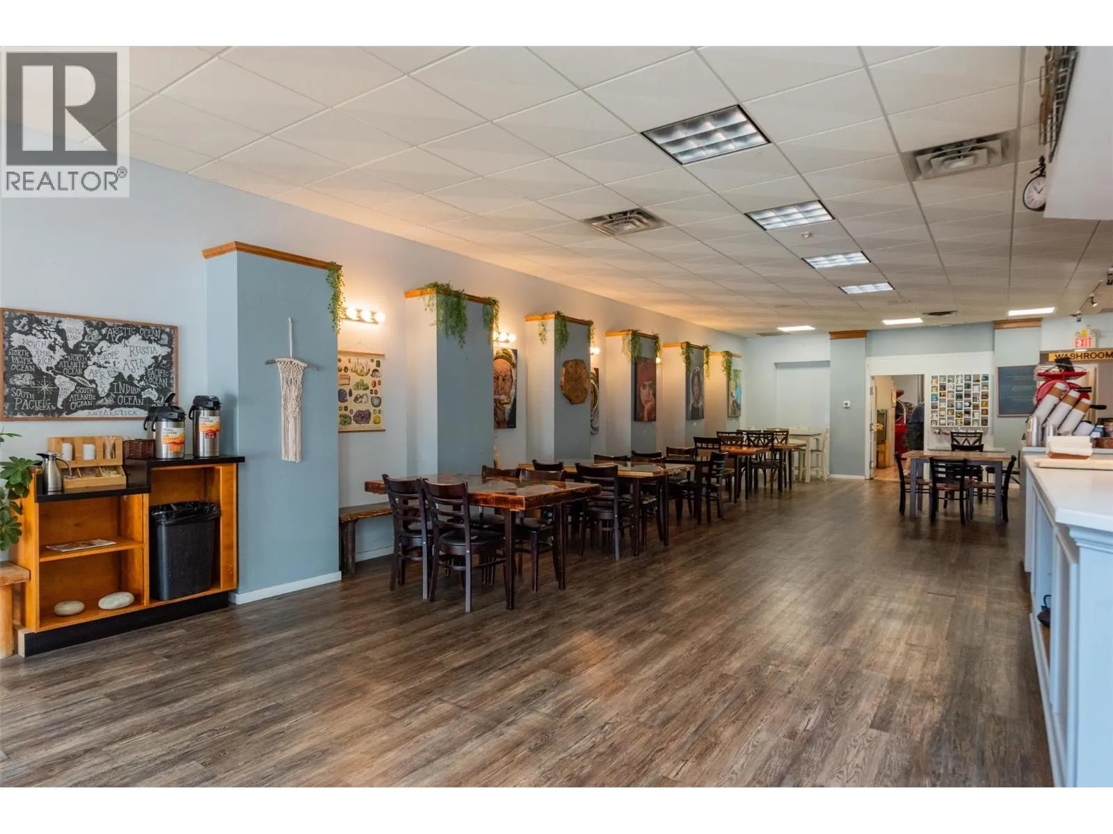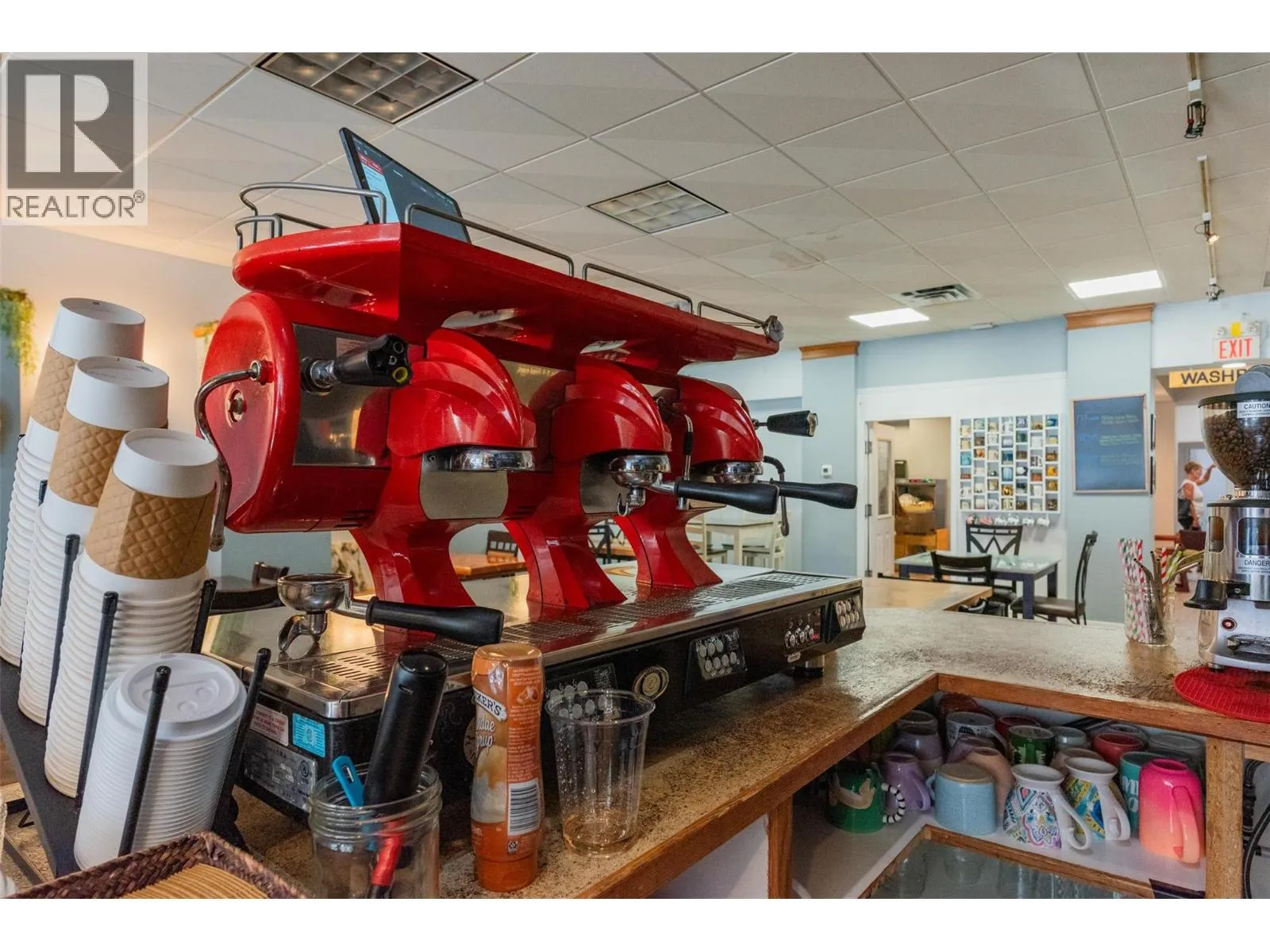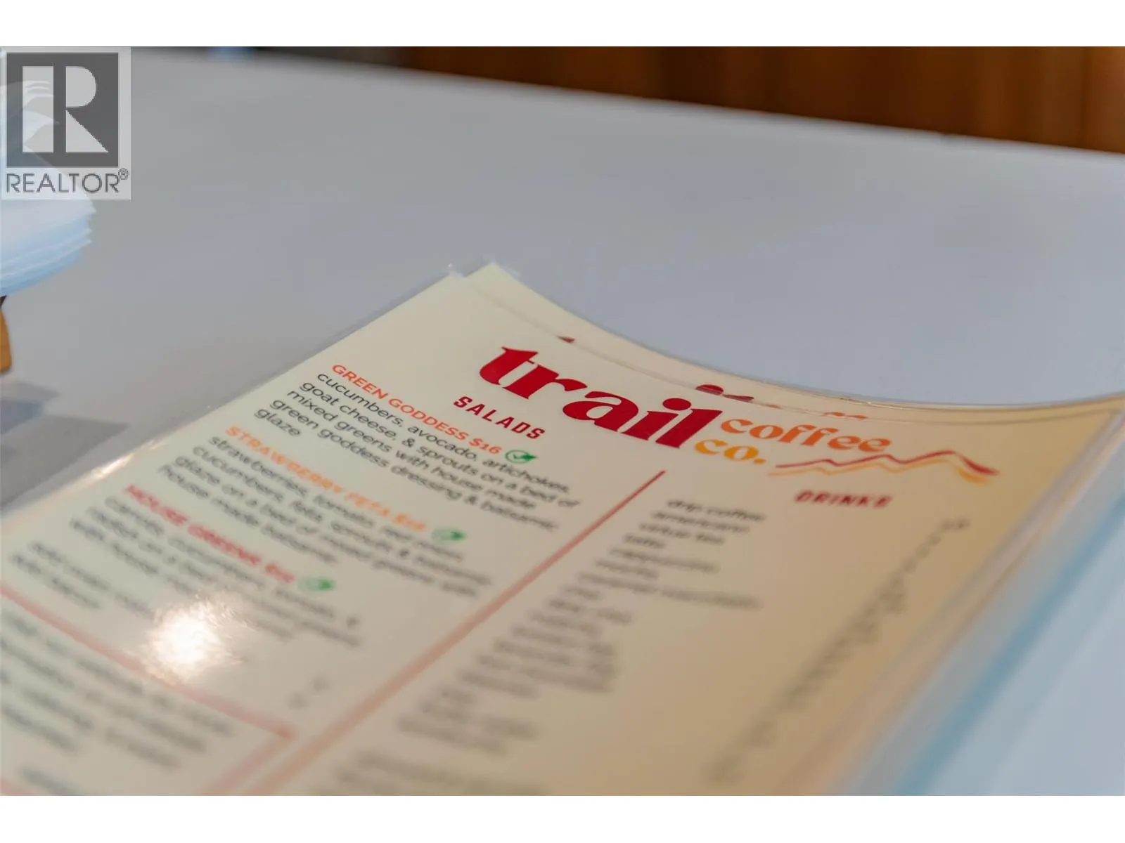 This is your chance to step into a well-established, turn-key business with multiple thriving revenue streams. Perfectly situated in the vibrant core of downtown Trail, this much-loved establishment has earned a reputation for great food & service & is a favorite lunch destination for locals & visitors alike. Beyond its loyal daytime clientele, the business also boasts a successful catering service & an in-house coffee roasting operation, creating diverse income opportunities under one roof. The space offers plenty of seating with a warm, inviting atmosphere with a cool, modern vibe. The kitchen is generously sized & fully equipped, featuring coolers, stainless steel work counters, & the coffee roasting machine area. When you enter the cafe, the serving area is beautifully designed with custom shelving and cabinetry that doubles as a stylish cash counter, coffee station, & display cases, making it both functional & visually appealing for customers. With two washrooms for convenience, rear alley access, the setup is both practical & efficient for day-to-day operations. The lower level is expansive & currently serves as an office area, storage, & stock room, but its size & layout open the door to even more possibilities for growth & development. Whether expanding the catering side, building out wholesale opportunities for the coffee roasting business, or enhancing the in-house dining experience, the foundation for success is already in place. Known for its quality, atmosphere, & versatility, this is more than just a cafe - itâs a complete business package with endless potential. (id:27476)