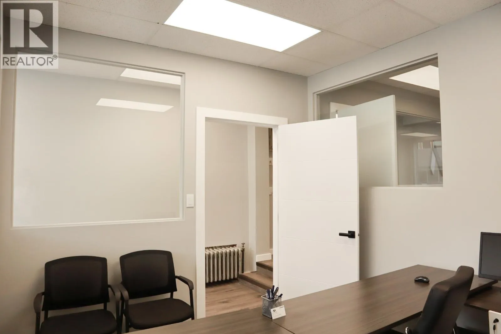Do you want to own a boutique office space in a prime location? The 850 sqft commercial space has just gone through over $115,000 in extensive and strategic renovations. The glass throughout allows natural light to flow all the way through both offices. There's a new kitchen and the full bathroom is perfect for being on the go so you can get your workout in and get ready for your work day! Run your business on the main level and enjoy easy living in the studio suite upstairs, plus there's a 16x22 walk out roof deck that overlooks the city. Downstairs has plenty of room for storage and mechanically has a brand new boiler system (2025), along with wiring, plumbing and main sewer line upgrades. And live upstairs in a cute studio suite with room for parking? Then this property is for you! This property gives big city feeling in a small town. Quick possession available! (id:27476)