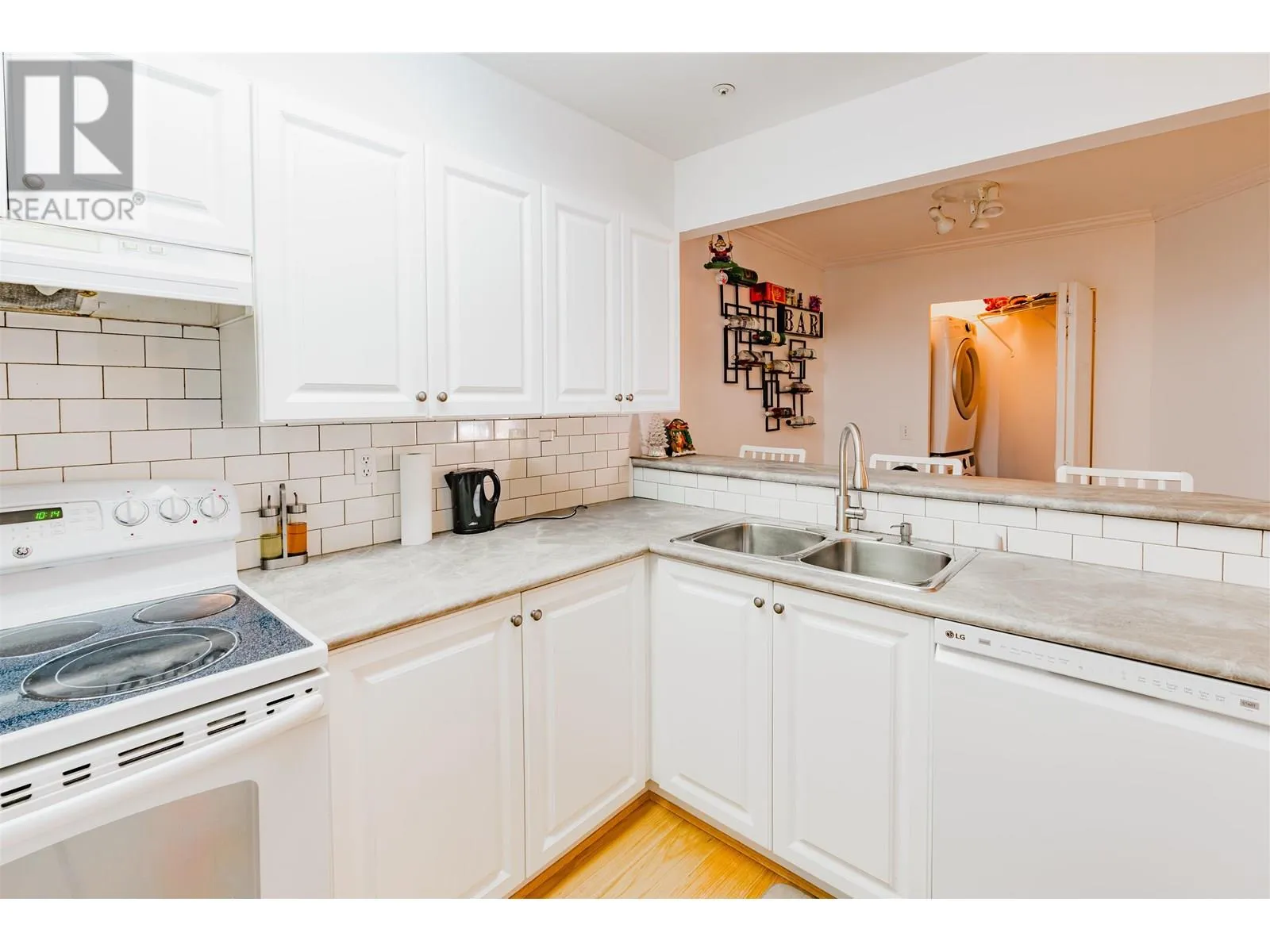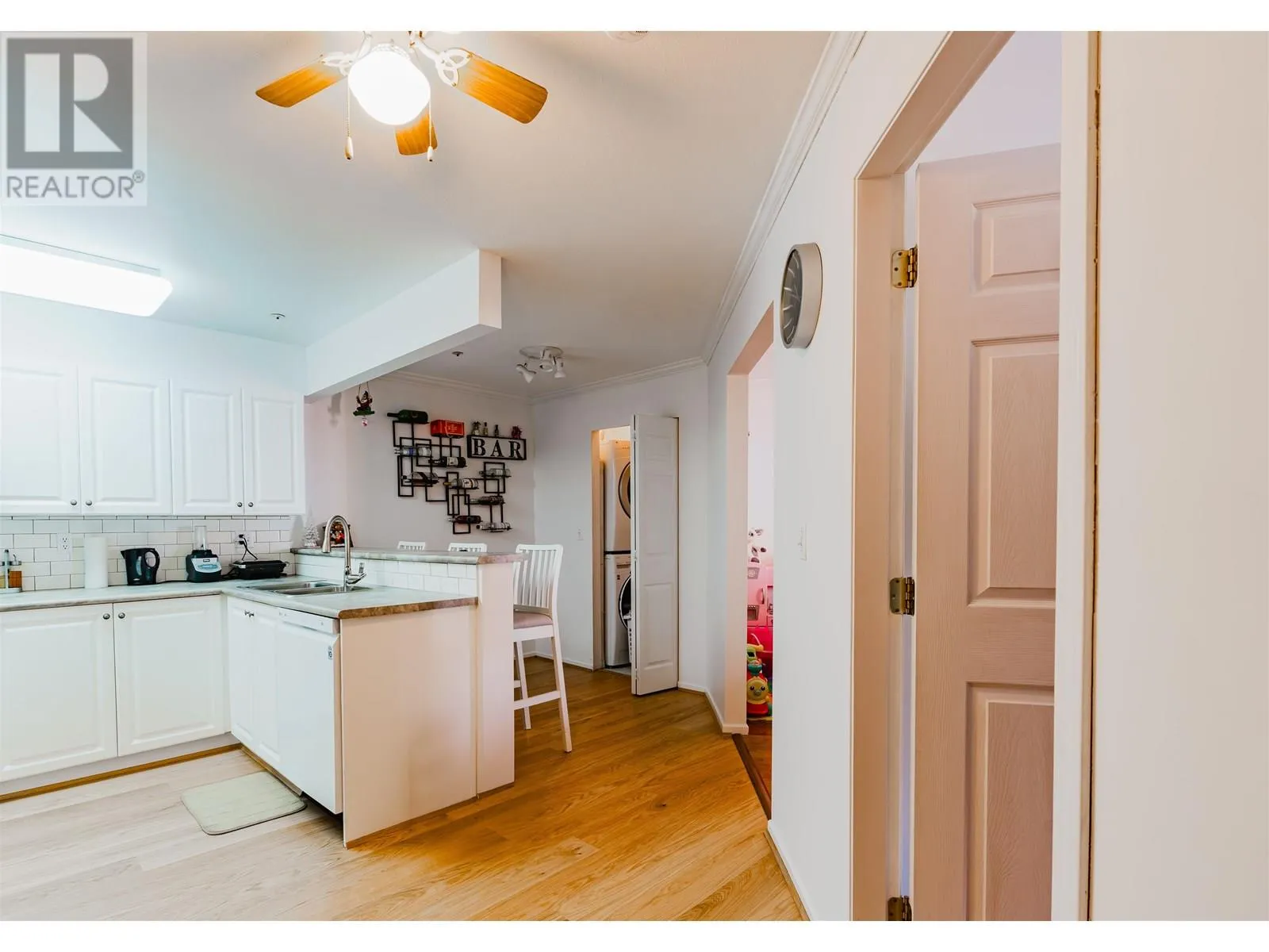 Welcome to The Oxford at the Windsor Woods! This penthouse unit offers 2 bedrooms, 2 bathrooms, and a spacious, light-filled layout in a quiet, sought-after neighbourhood. Just steps from recreation, restaurants, shops, and a short walk to the beach, this home is perfectly located. Enjoy hardwood flooring throughout, crown molding, and a cozy gas fireplace-with gas included in the maintenance fee! The updated kitchen and renovated 4-piece second bathroom add modern touches. Both bedrooms features a huge closet and space for a king-sized bed. Relax on the large sundeck, soaking in the ample natural light. This well-run complex includes underground parking plus EV parking stalls, a storage locker, top tier amenities and is close to transit, Tsawwassen Mills and top-rated schools. (id:27476)