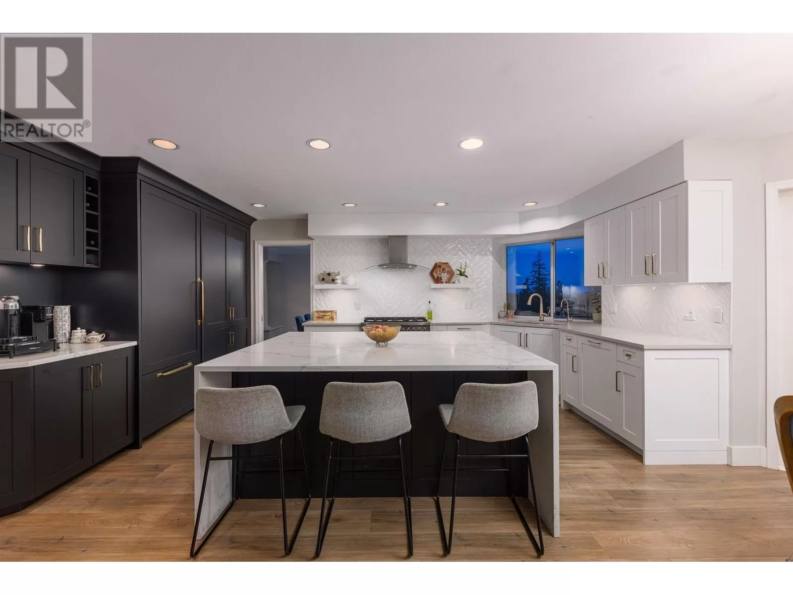 Spacious executive home in cul-de-sac on big lot with VIEWS! Lovingly maintained with many updates - this impressive home boasts new flooring, big new kitchen w large stone island, breakfast nook, rear elevated deck w strong easterly vistas, great family room plus formal living /dining, beautiful laundry room, den off foyer, updated stylish bath, 2 car garage. Upstairs features a huge primary bedroom complete water views, nook area + gas fireplace, big spa inspired bath w corner tub, plus 3 more great size bedrooms. Expansive lower level, walk-out to rear back yard w hot tub, rec room plus games rooms, wet bar, large bedroom (could be extra primary bedroom) and ample storage in utility room w new furnace + new dual h/w tanks. A rare offering! OPEN HOUSE SAT 2-4PM (Sept 27) (id:27476)