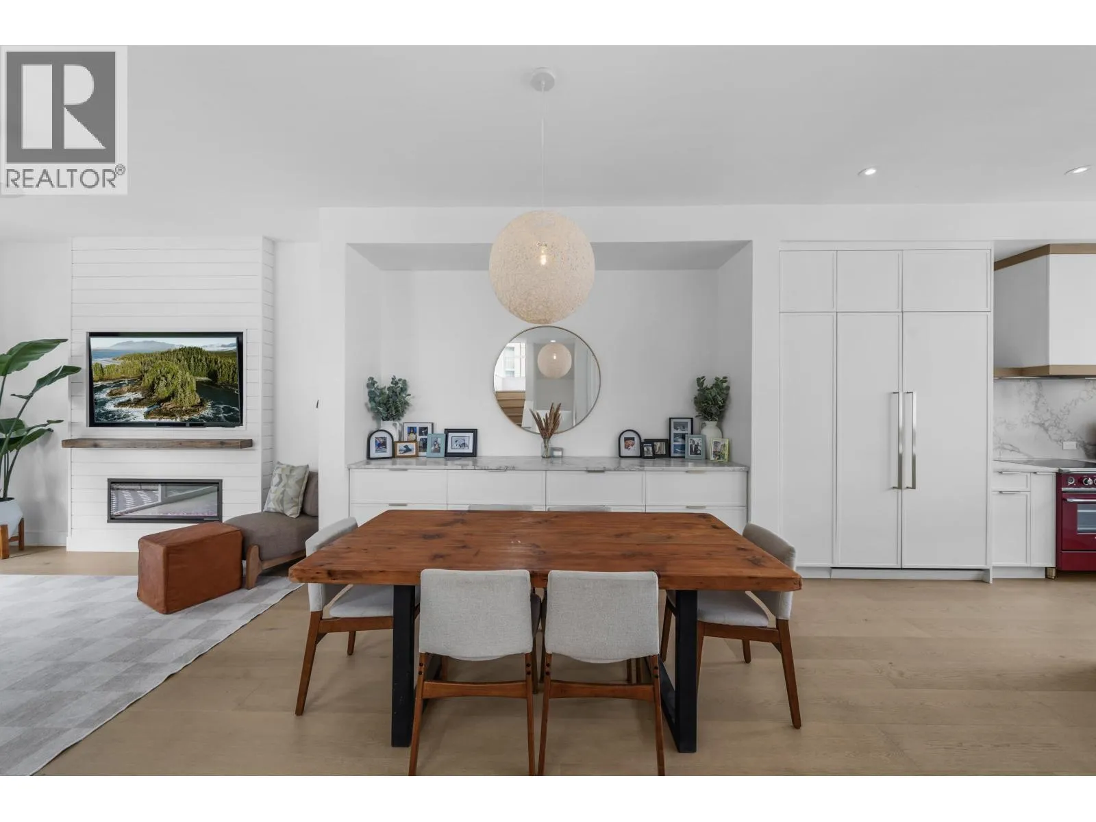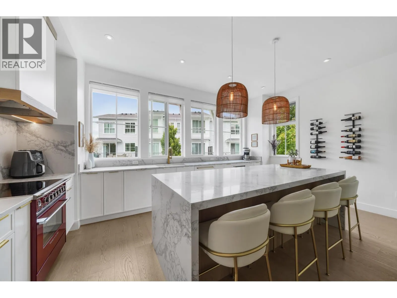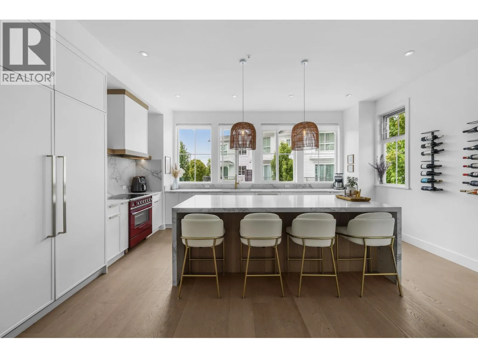 The most stunning unit in the complex. A rare E2 plan in Seaside with 4 beds, 4 baths, a double garage with EV charger, plus 2 driveway spots. Bright corner end-unit with high ceilings and $100,000 plus of INCREDIBLE upgrades: 10" white oak floors throughout, custom fireplace, quartz countertops, upgraded lighting, and an entertainer´s kitchen with an oversized 9' island, panel-ready JennAir + Fisher & Paykel appliances, and a bold high-end red induction range. The large, fenced, south-facing yard backs onto the bluff, finished with synthetic turf and oversized paving - ideal for morning coffee or evening unwinding. Smart lighting and heating controls, remote hallway blinds, and built-in garage storage add extra function. Set in a vibrant, well-managed community with a clubhouse, pool, gym, and party room. Walk to the beach, bike to the golf course, and enjoy dining at Pat Quinn´s just minutes away. Warm, welcoming, and truly one of a kind, this home stands apart. Start the car - this is the one! (id:27476)