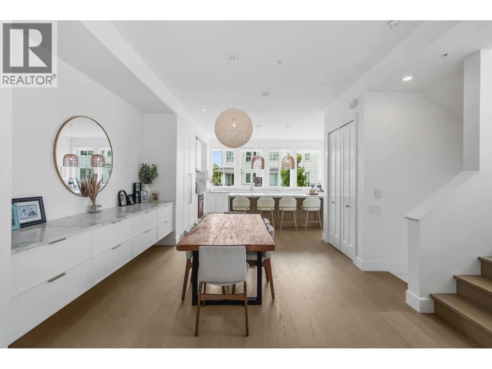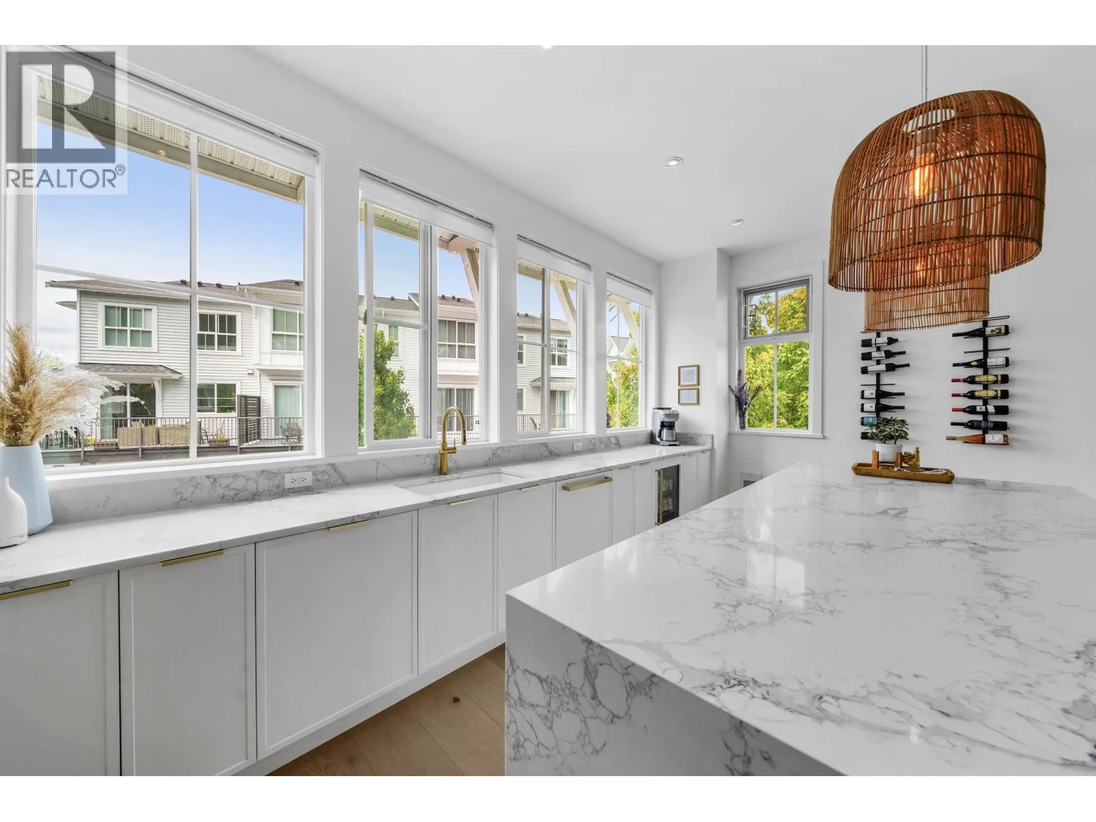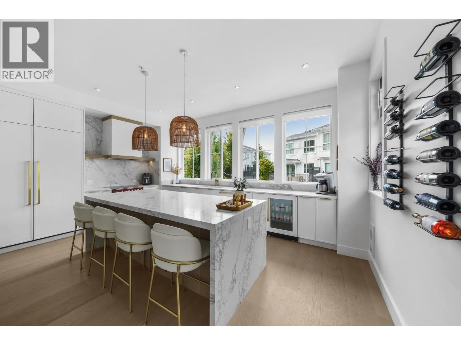 The most stunning unit in the complex. A rare E2 plan in Seaside with 4 beds, 4 baths, a double garage with EV charger, plus 2 driveway spots. Bright corner end-unit with high ceilings and $100,000 plus of INCREDIBLE upgrades: 10" white oak floors throughout, custom fireplace, quartz countertops, upgraded lighting, and an entertainer´s kitchen with an oversized 9' island, panel-ready JennAir + Fisher & Paykel appliances, and a bold high-end red induction range. The large, fenced, south-facing yard backs onto the bluff, finished with synthetic turf and oversized paving - ideal for morning coffee or evening unwinding. Smart lighting and heating controls, remote hallway blinds, and built-in garage storage add extra function. Set in a vibrant, well-managed community with a clubhouse, pool, gym, and party room. Walk to the beach, bike to the golf course, and enjoy dining at Pat Quinn´s just minutes away. Warm, welcoming, and truly one of a kind, this home stands apart. Start the car - this is the one! (id:27476)